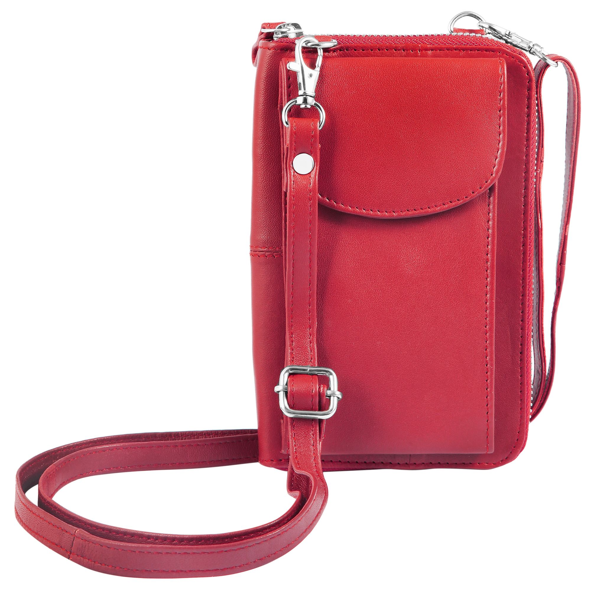 Produktinformationen "Akzent Handyumhängetasche mit Geldbörse aus Echtleder, geeignet für iPhone 15, rot"