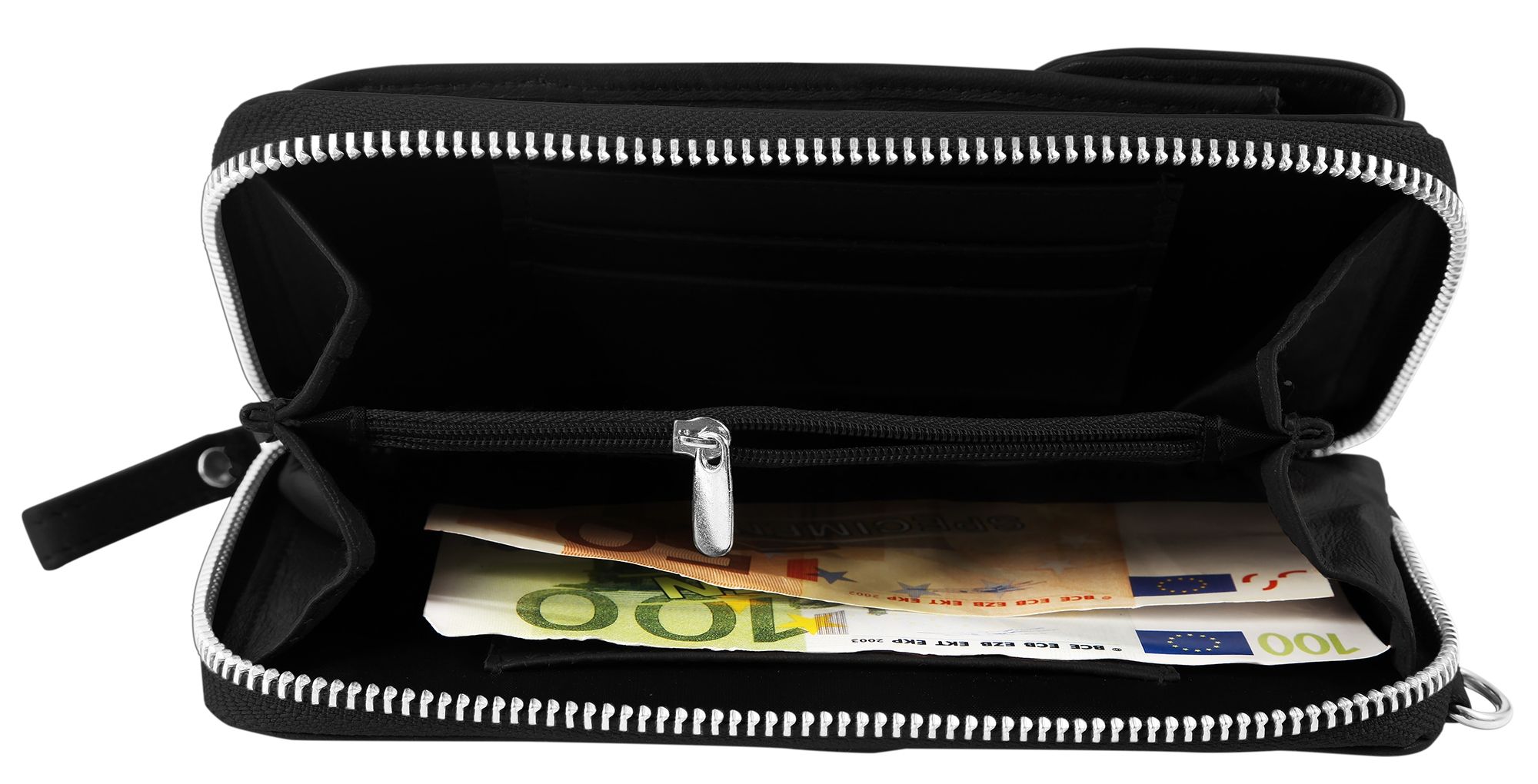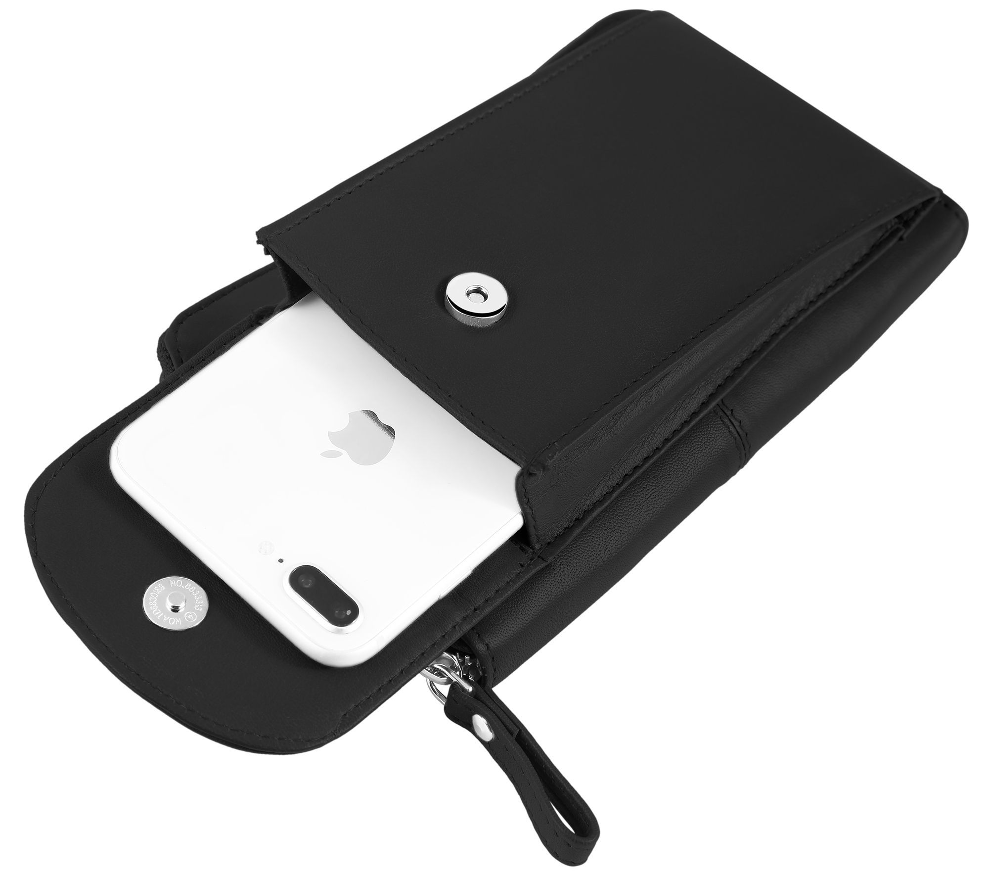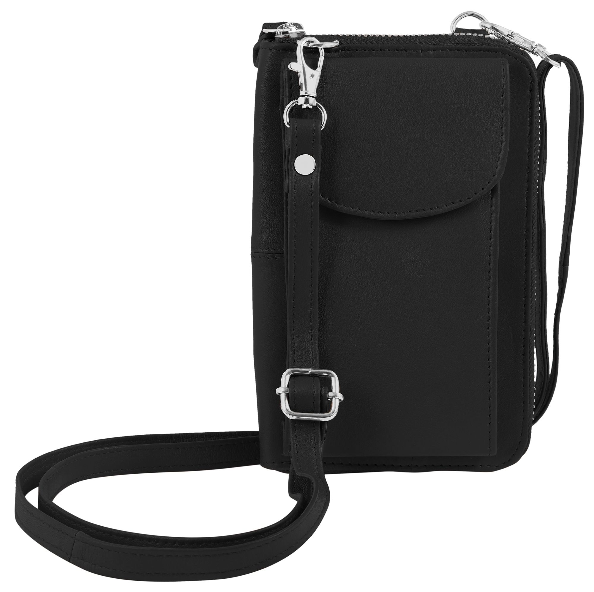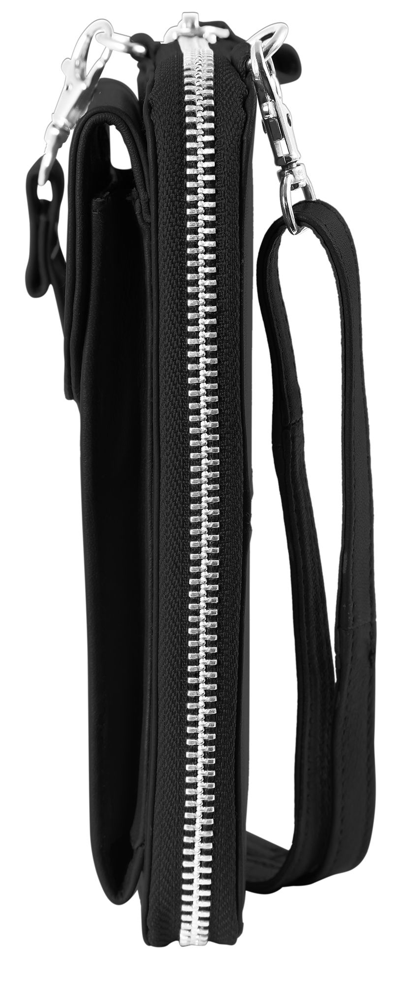 Produktinformationen "Akzent Handyumhängetasche mit Geldbörse aus Echtleder, geeignet für iPhone 15, schwarz"