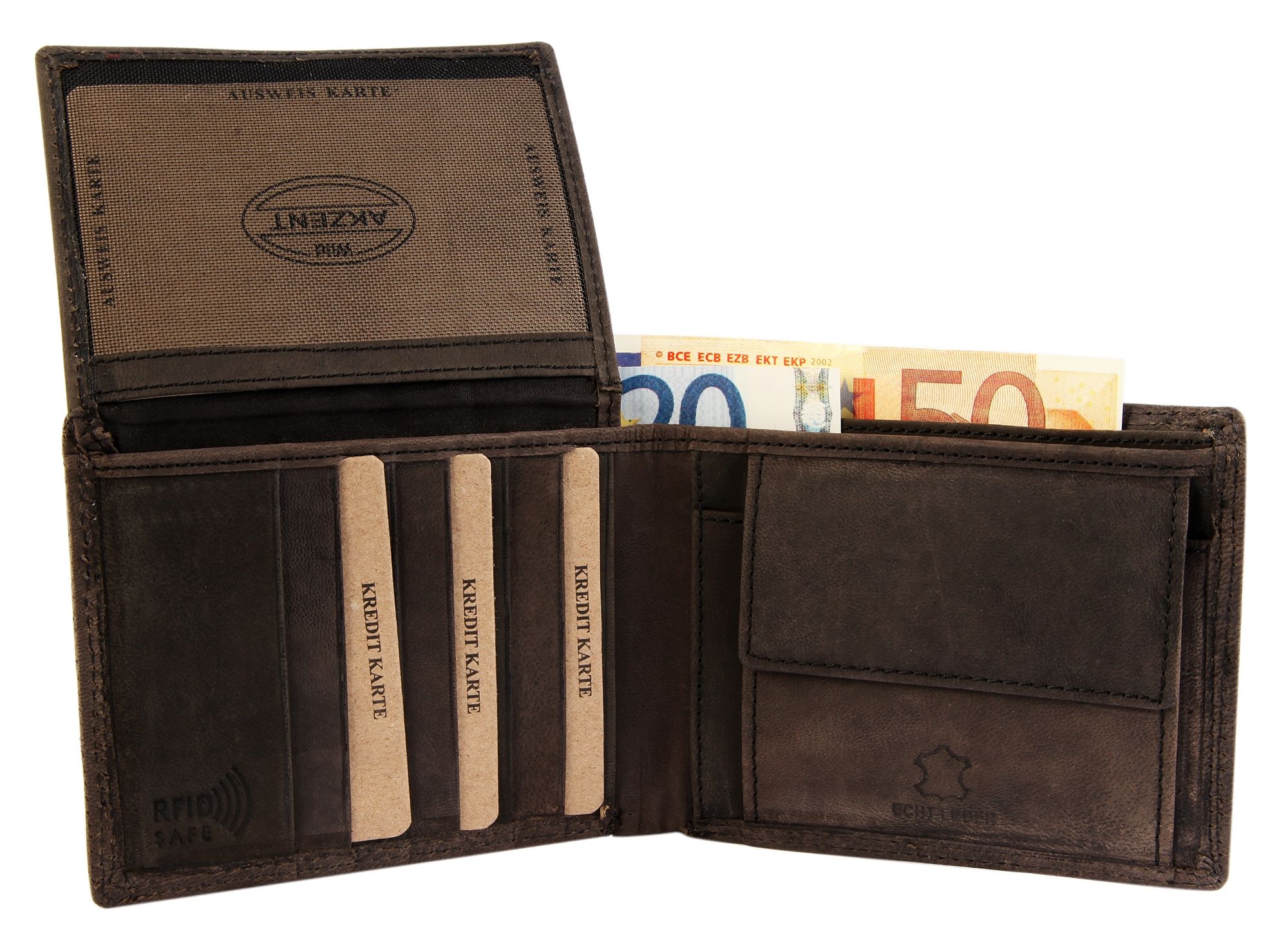 Akzent Herren Geldbörse aus Echtleder in schwarz. Format 12 x 10 cm.