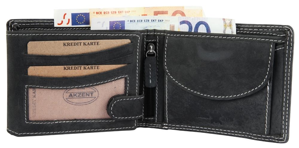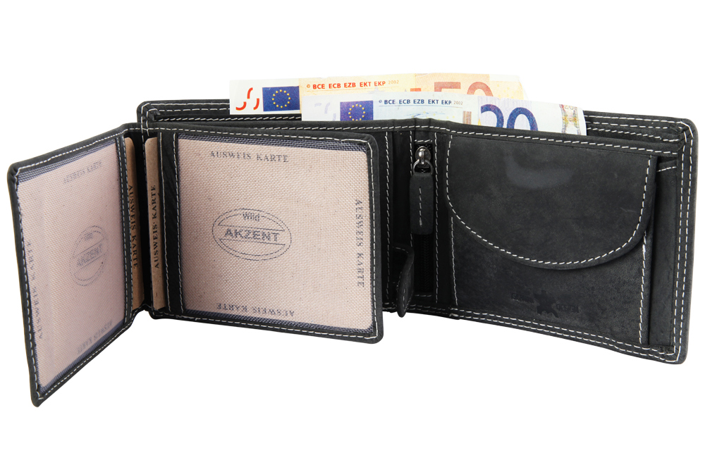 Produktinformationen "Akzent Herren Geldbörse aus Echtleder in schwarz. Format 12 x 9 cm."