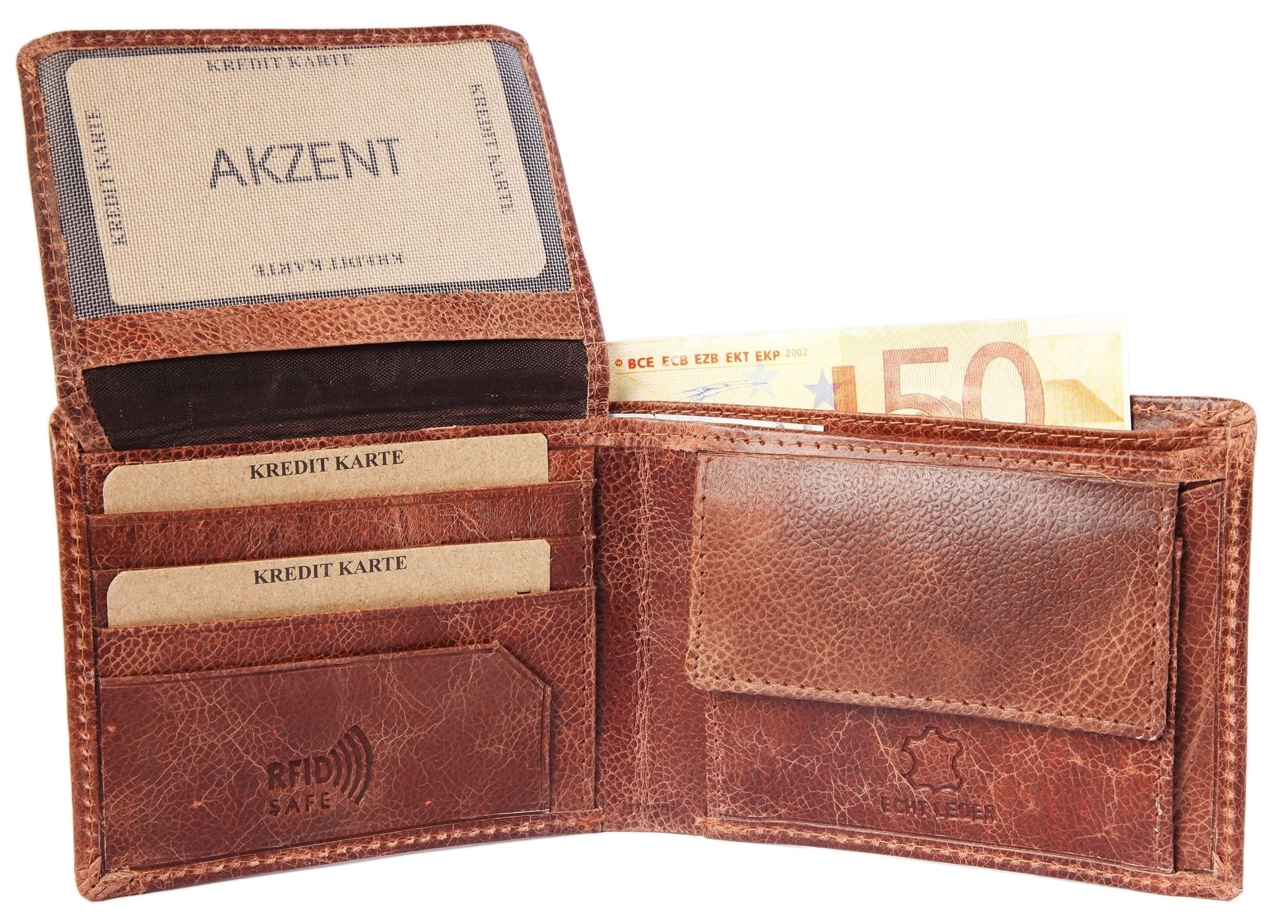 Produktinformationen "Akzent Herrengeldbörse aus Echtleder, RFID-Schutz, braun"