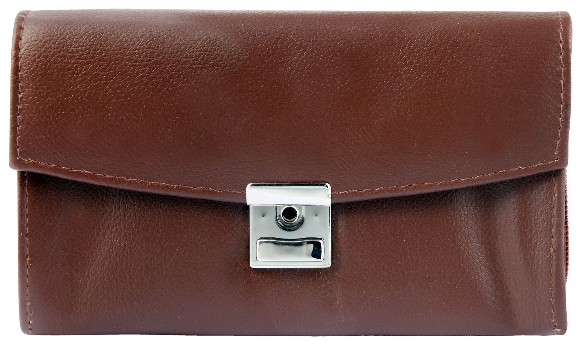 Die braune Kellnergeldbörse im Querformat der Marke Akzent wurde aus weichem Lederimitat hergestellt. Sie ist für gastronomische, aber auch für andere Bereiche bestens geeignet. Durch die solide Verarbeitung der braunen Nähte ist eine lange Haltbarkeit garantiert. Die Kellnergeldbörse ist ein wahres Platzwunder und verfügt über ein sehr großes Hartgeldfach für den täglichen Arbeitseinsatz. Zudem verfügt sie über 5 Geldscheinfächer, 1 Reißverschlussfach mit 3 transparenten Kreditkartenfächern inklusive und 1 Einsteckfach auf der Rückseite der Börse. Verschlossen wird das Portemonnaie mit einem Druckverschluss. Mit einer einfachen Hebelwirkung lässt sie sich wieder öffnen. Die Größe ergibt sich aus einer Länge von 17,5 cm, einer Breite von 10,3 cm und einer Stärke von 4,0 cm.