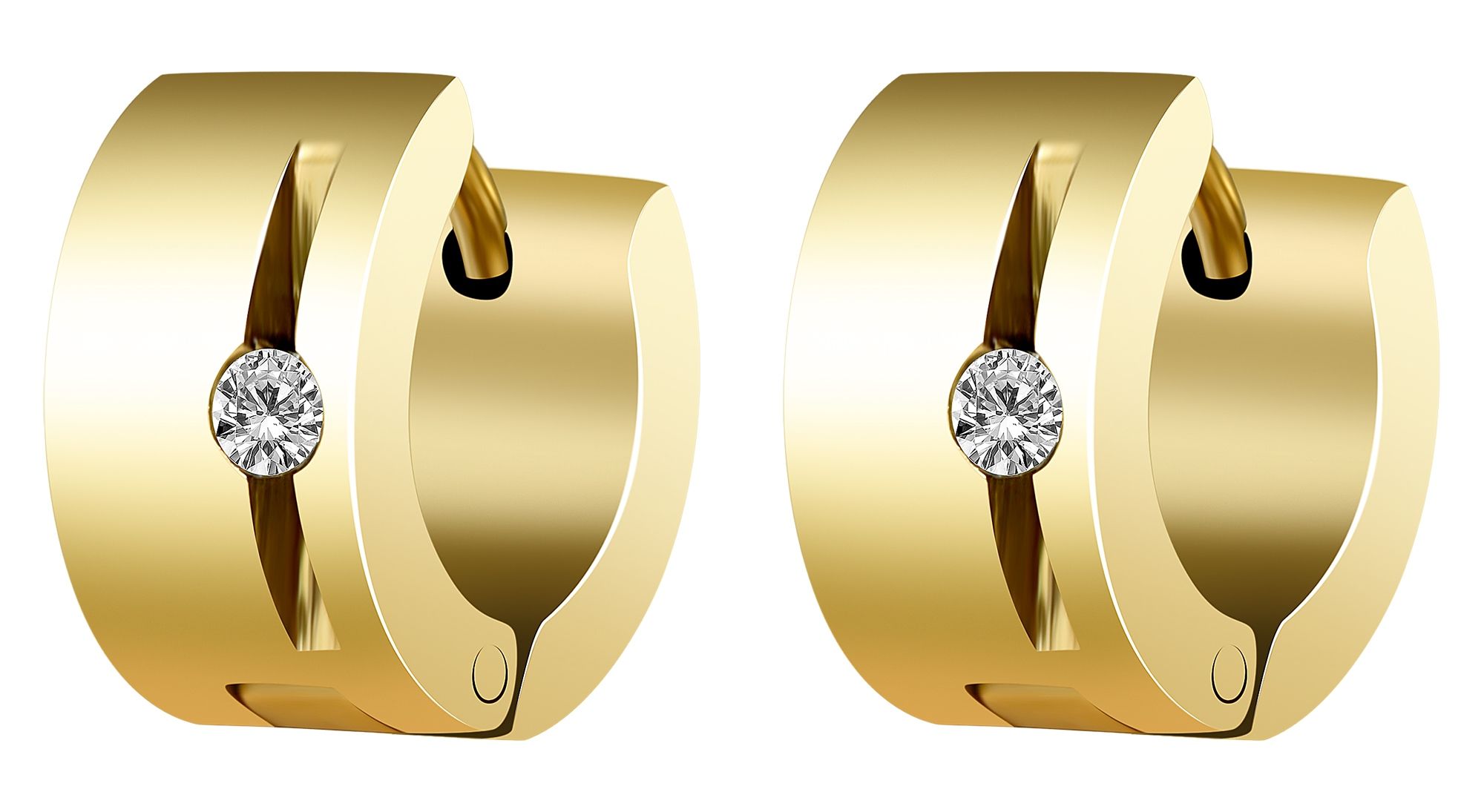 Produktinformationen "Akzent Klapp-Creolen, Edelstahl, Similibesatz, goldfarben"