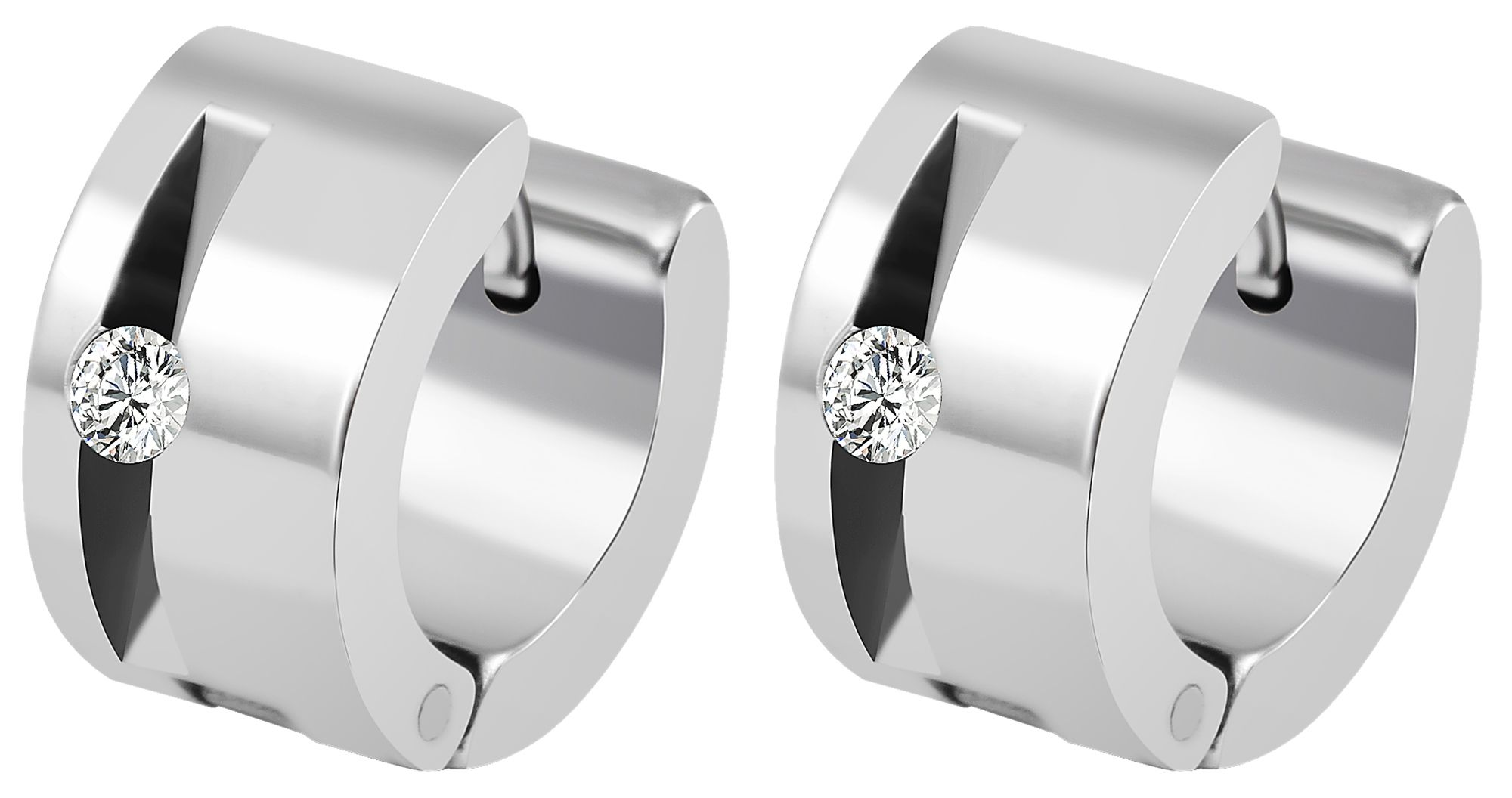 Produktinformationen "Akzent Klapp-Creolen, Edelstahl, Similibesatz, silberfarben"