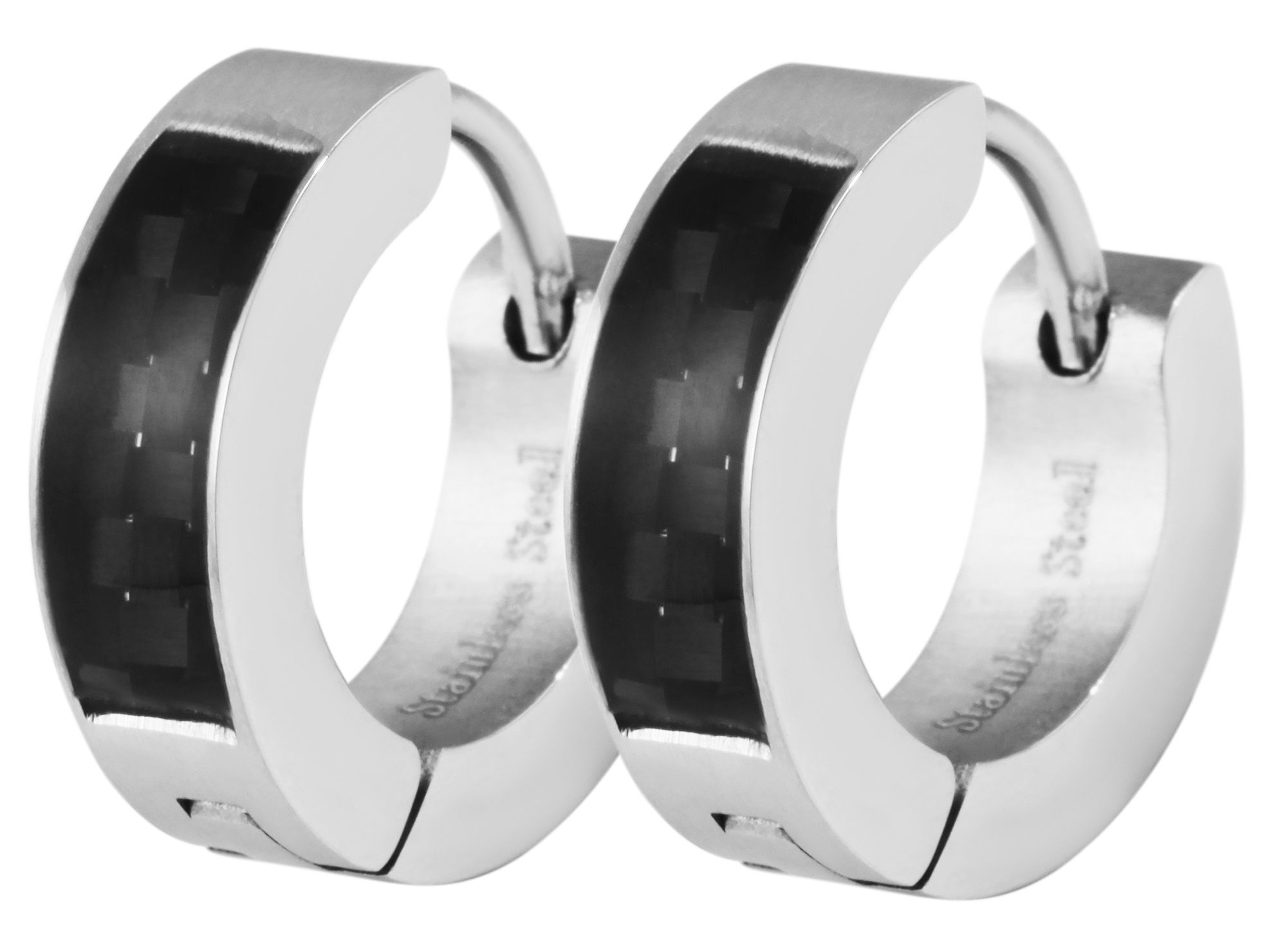 Produktinformationen "Akzent Klapp-Creolen aus Edelstahl, Carbonoptik, silberfarben"