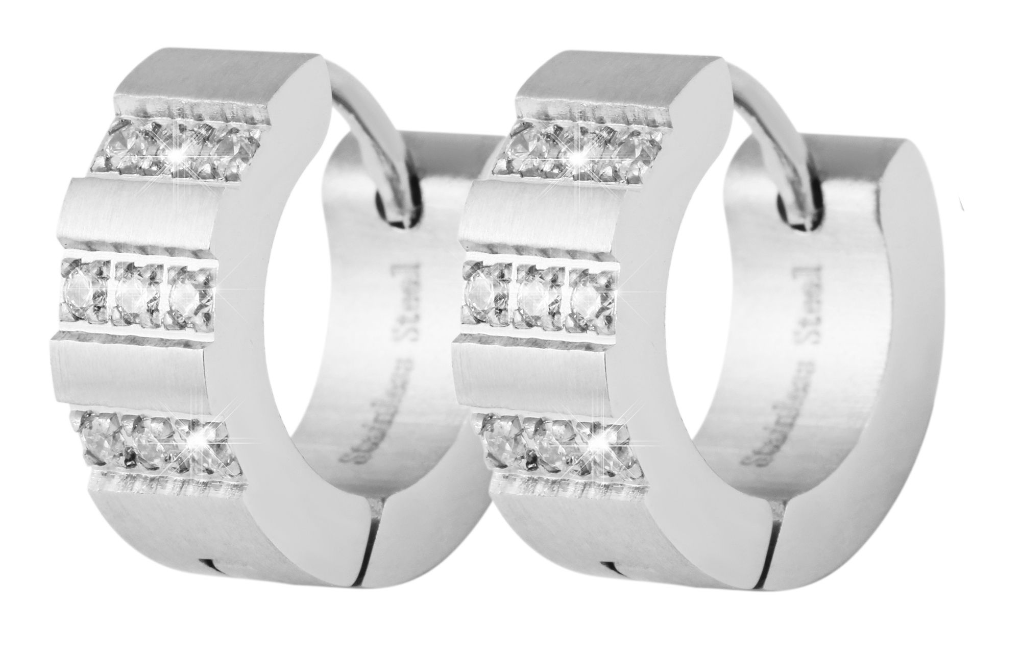 Produktinformationen "Akzent Klapp-Creolen aus Edelstahl, Similibesatz, silberfarben"