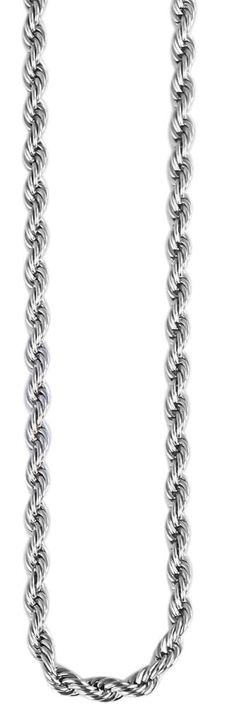 Die Kordelkette der Marke Akzent wurde aus Edelstahl gefertigt und ist silberfarbig gehalten. Das Material ist anlaufgeschützt, rostfrei und langlebig. Die Halskette besteht aus zwei Kettensträngen die miteinander verknüpft sind. Dieses Verfahren sorgt für eine spiralförmige Optik und ein klassisch, elegantes Design der Kette. Mit einem Edelstahl Karabinerverschluss wird die Halskette hinten am Hals gesichert. Die Kette ist 80 cm lang und kann bei Bedarf um 5 cm verlängert werden, sodass sie individuell einstellbar ist. Die Kettenstärke beträgt 2 mm.