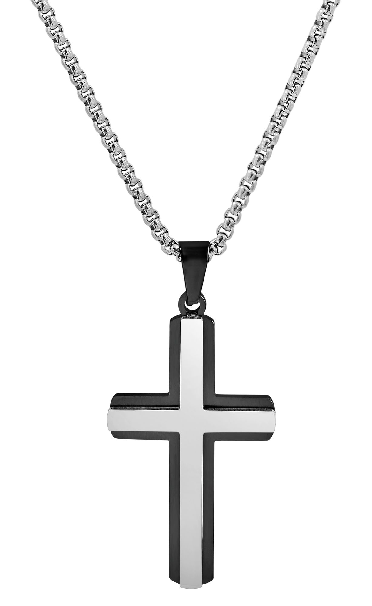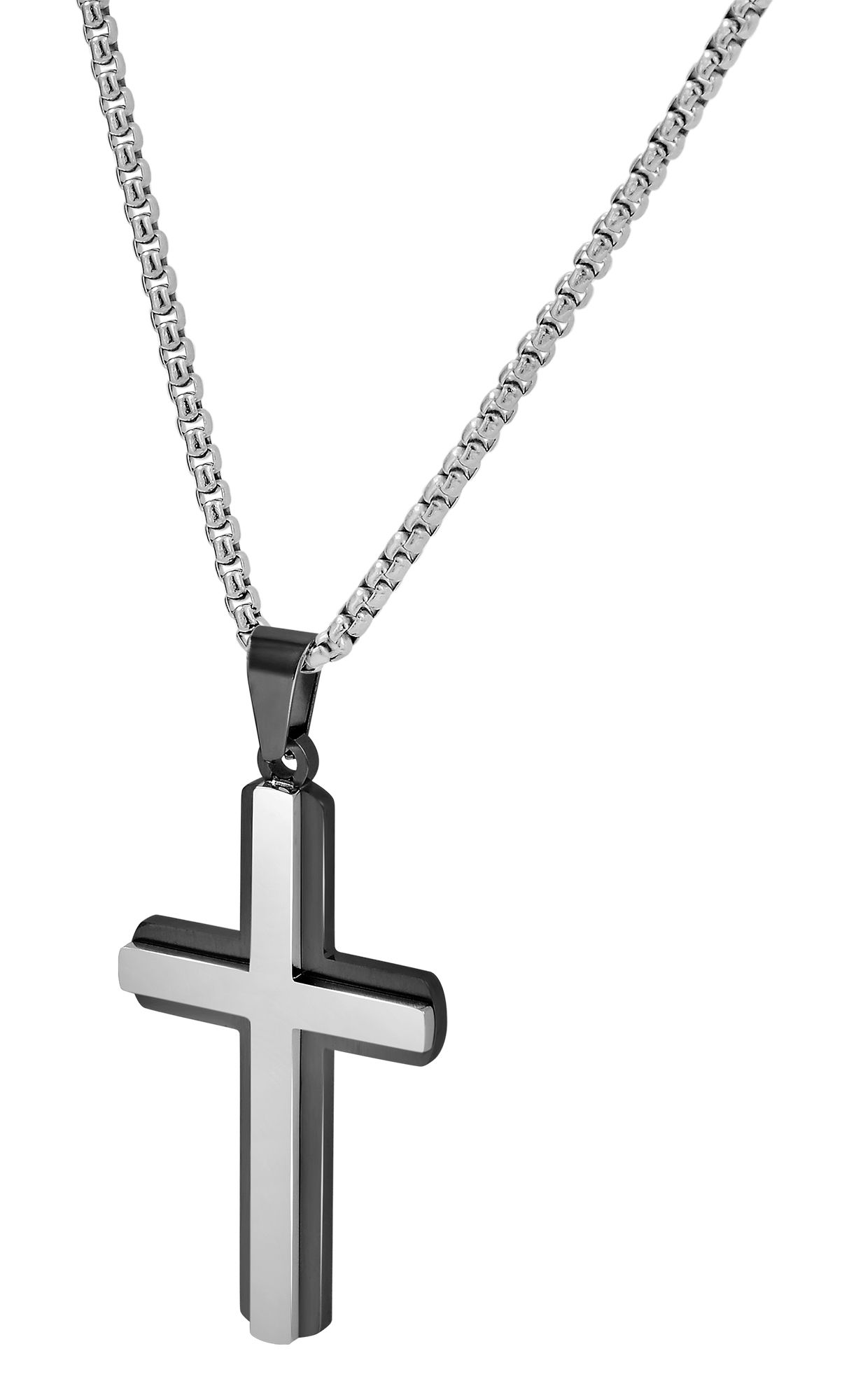 Produktinformationen "Akzent Kreuzanhänger aus Edelstahl, schwarz/silberfarben"