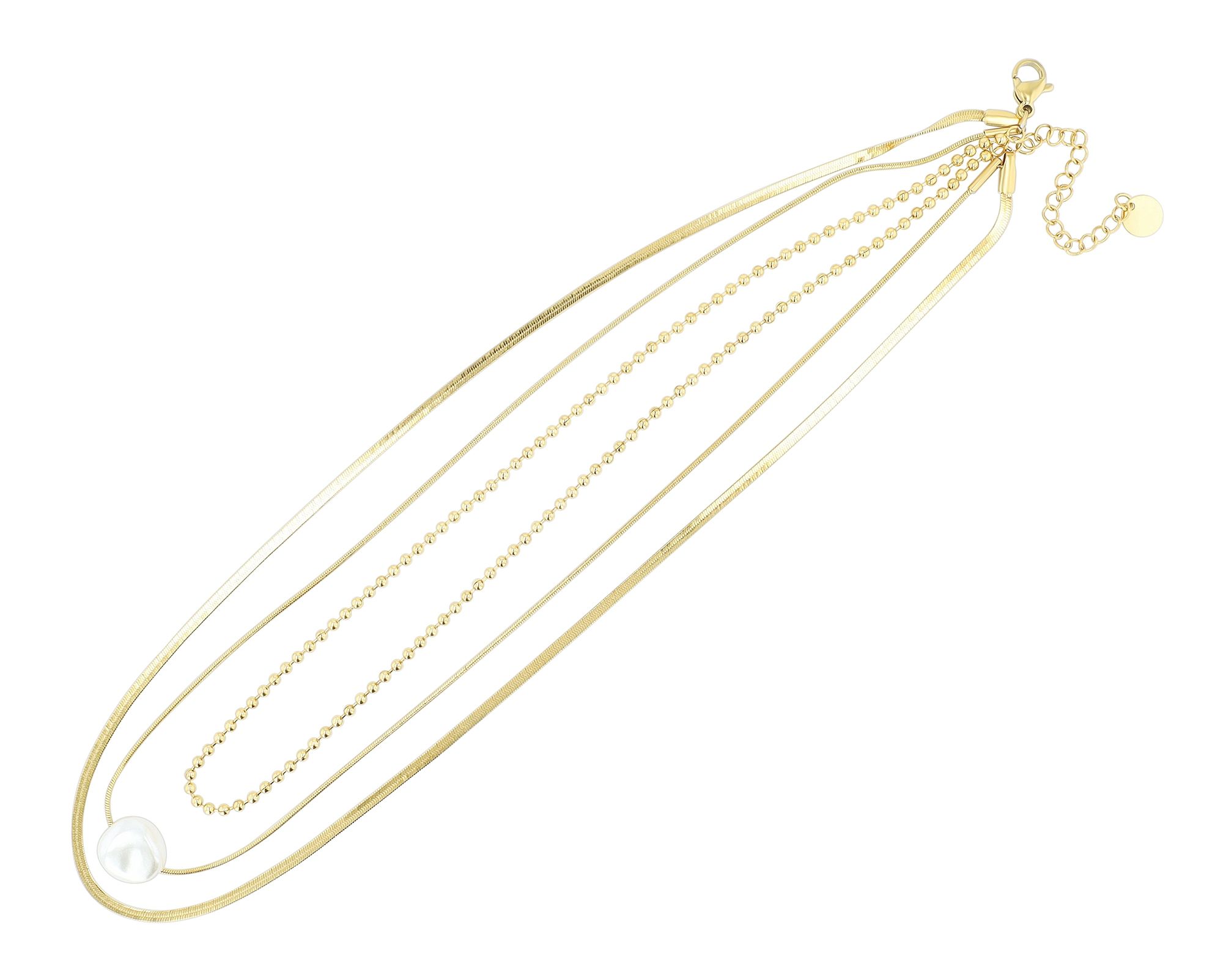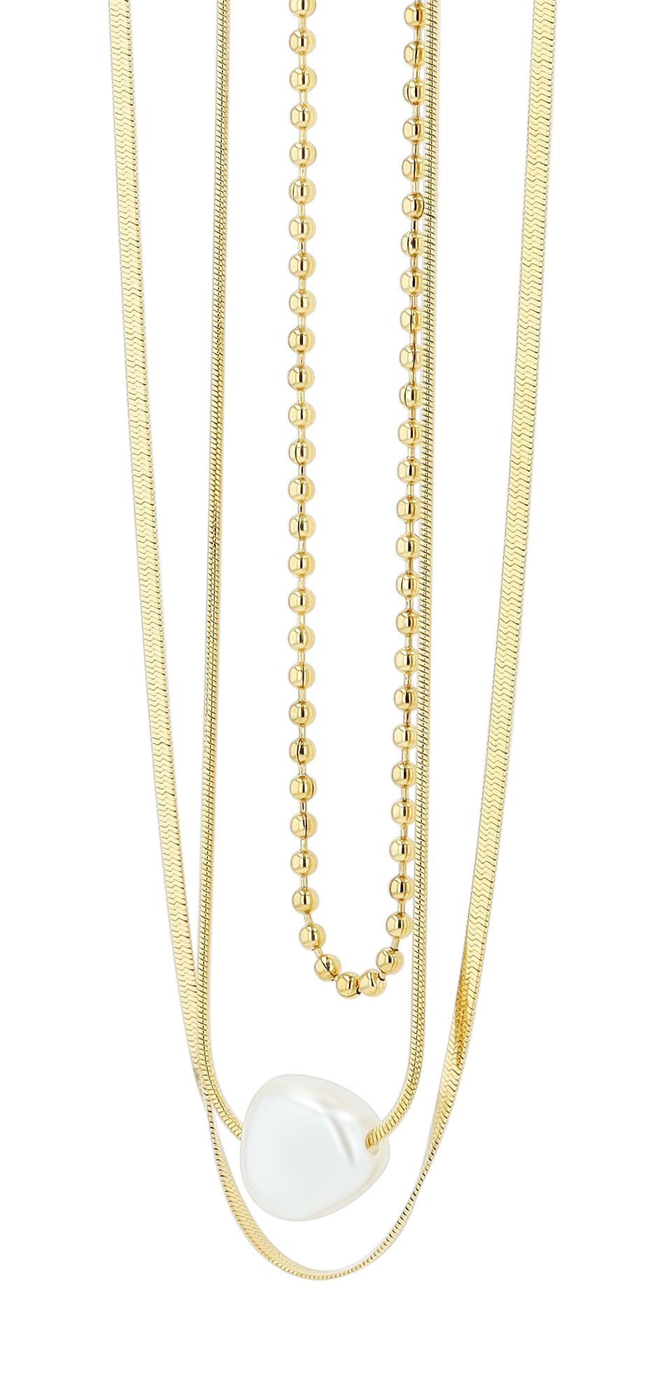 Produktinformationen "Akzent Layering-Halskette mit Perle, dreireihig, ionenplattiert, goldfarben"