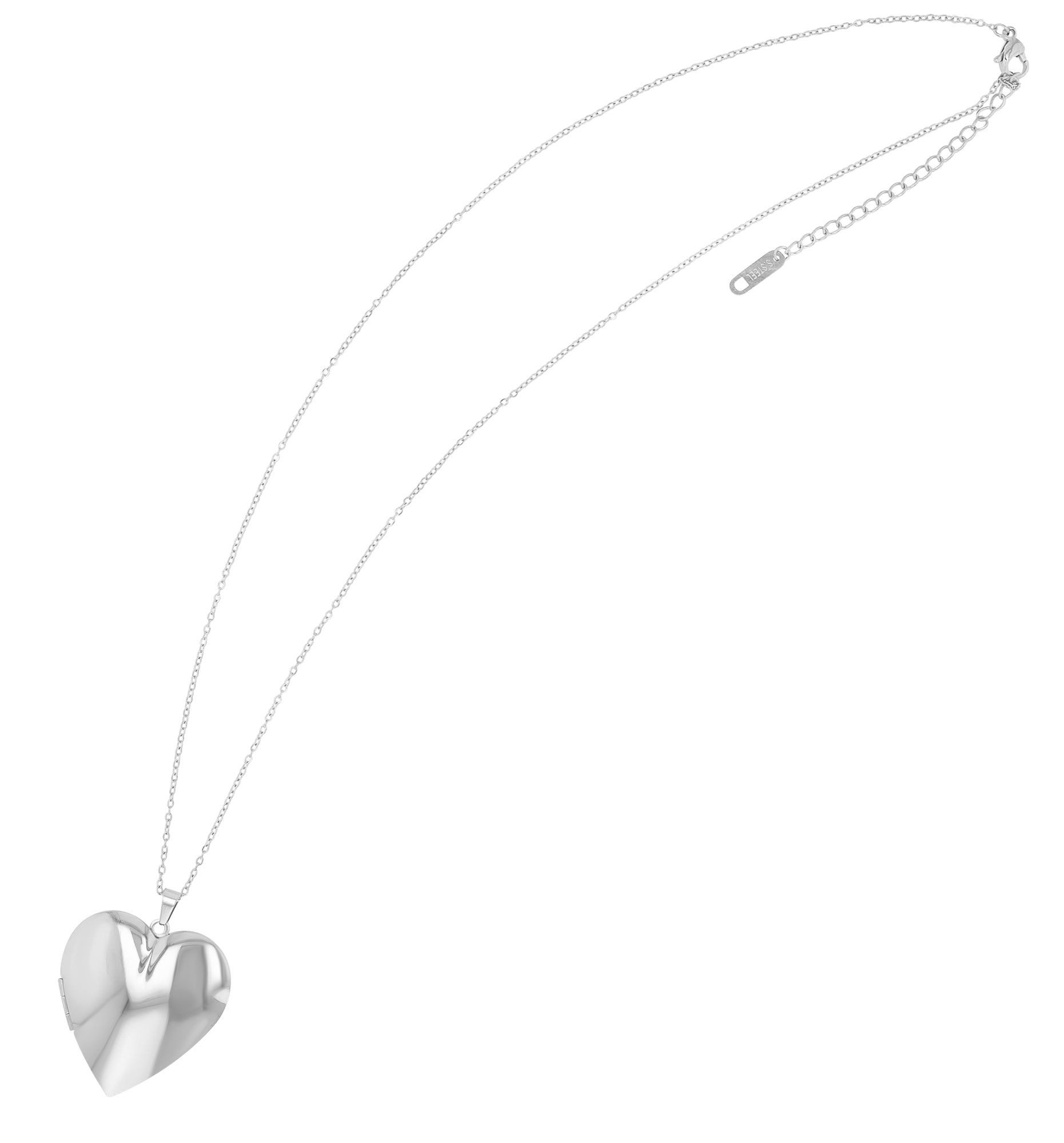 Diese Halskette und der zugehörige Anhänger sind aus langlebigem Edelstahl gefertigt, wodurch sie strapazierfähig, langlebig und äußerst robust sind. Die Kette ist in den Farben Silber und Gold erhältlich, um jedem individuellen Geschmack gerecht zu werden. Mit einer Länge von 45 cm und einem zusätzlichen 5 cm langen Verlängerungskettchen bietet diese Kette die Flexibilität, sich perfekt an jede Halsform anzupassen. Der praktische Karabinerhaken sorgt für einen sicheren Verschluss. Das aufklappbare Medaillon mit einer Größe von 42 x 40 x 8,5 mm bietet Raum für persönliche Erinnerungen, sei es ein Foto oder eine Botschaft. Der markante und hochglanzpolierte Herzanhänger kann sowohl auf der Vorder-, als auch auf der Rückseite mit Gravuren versehen werden, um diesem Schmuckstück eine ganz persönliche Note zu verleihen.