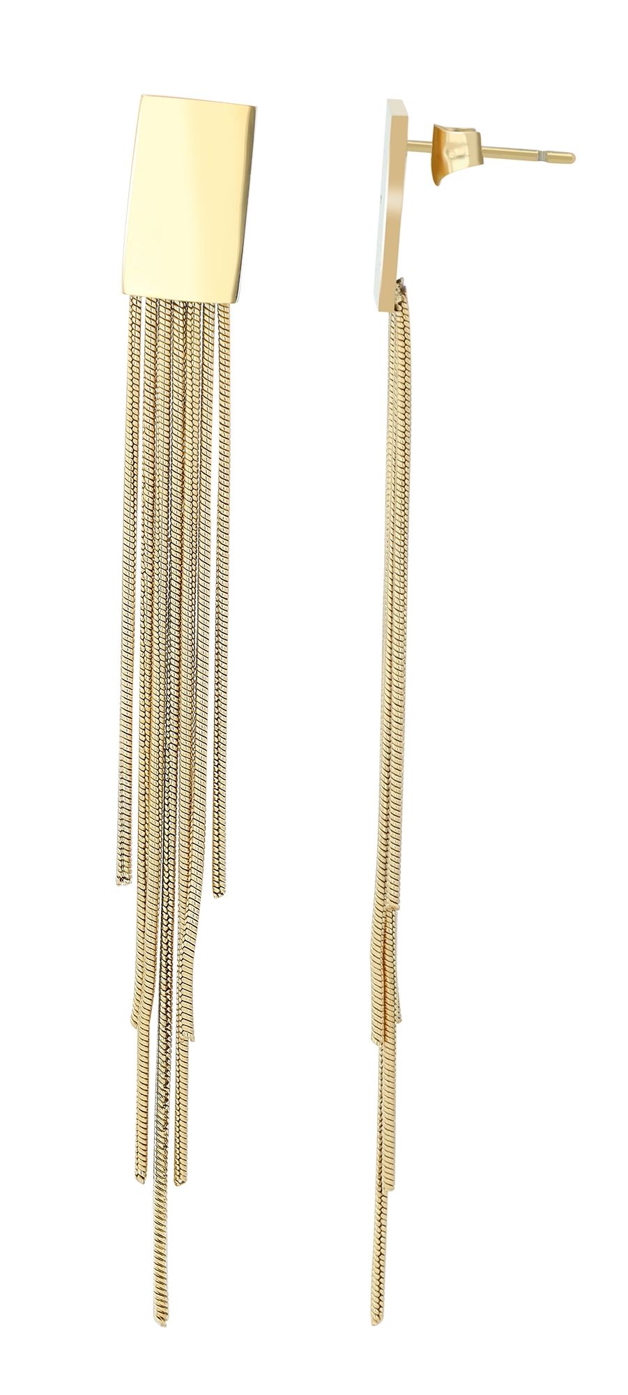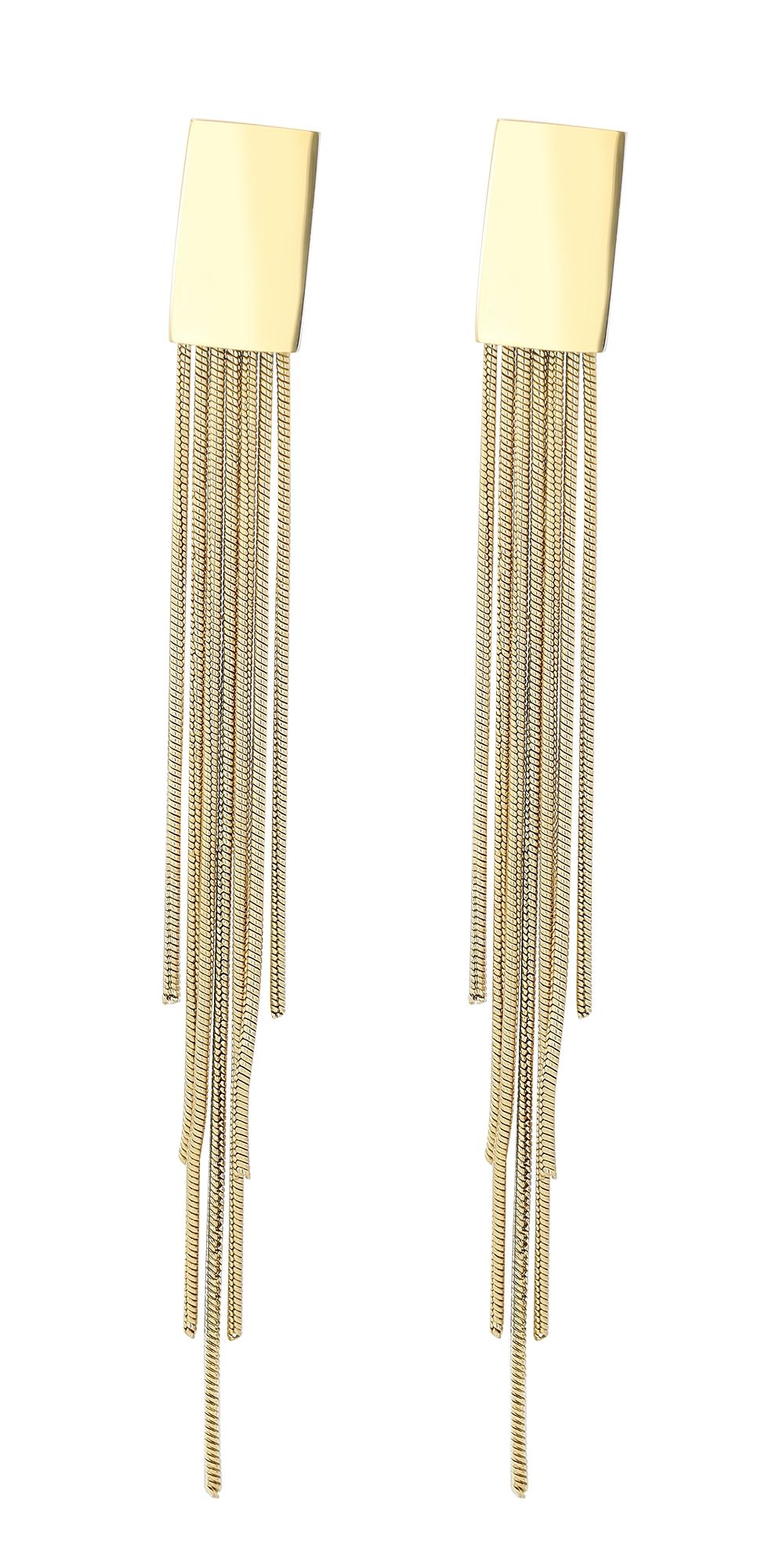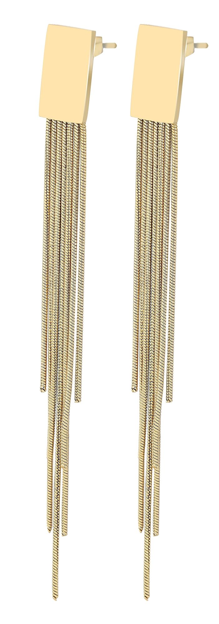 Diese stilvollen Ohrstecker sind aus hochwertigem Edelstahl gefertigt, was ihnen eine robuste und langlebige Qualität verleiht. Die Stecker haben eine Größe von 13 x 8 mm und sind in einem ansprechenden polierten Design gestaltet. An ihnen hängen längliche Elemente, die einen modernen Look verleihen und bei jeder Bewegung elegant mitschwingen.