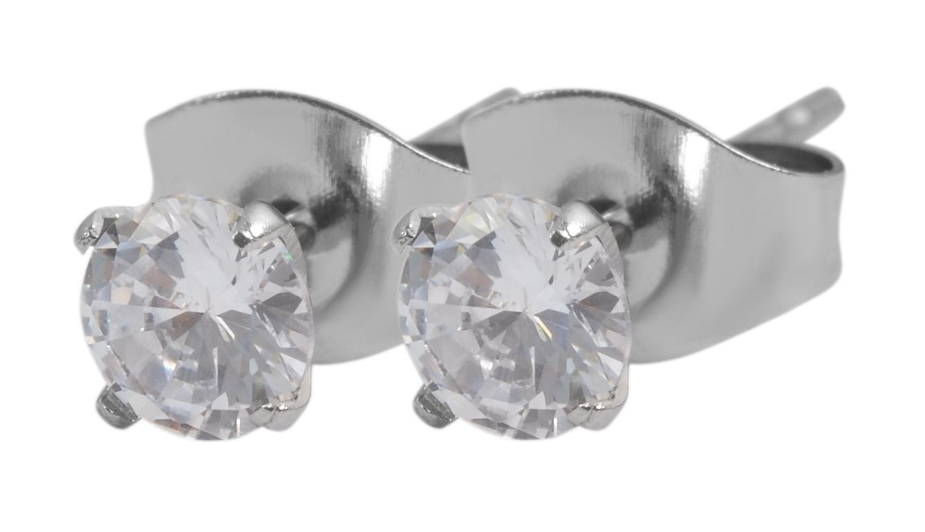 Produktinformationen "Akzent Ohrstecker aus Edelstahl mit Zirkonia in Krappenfassung"