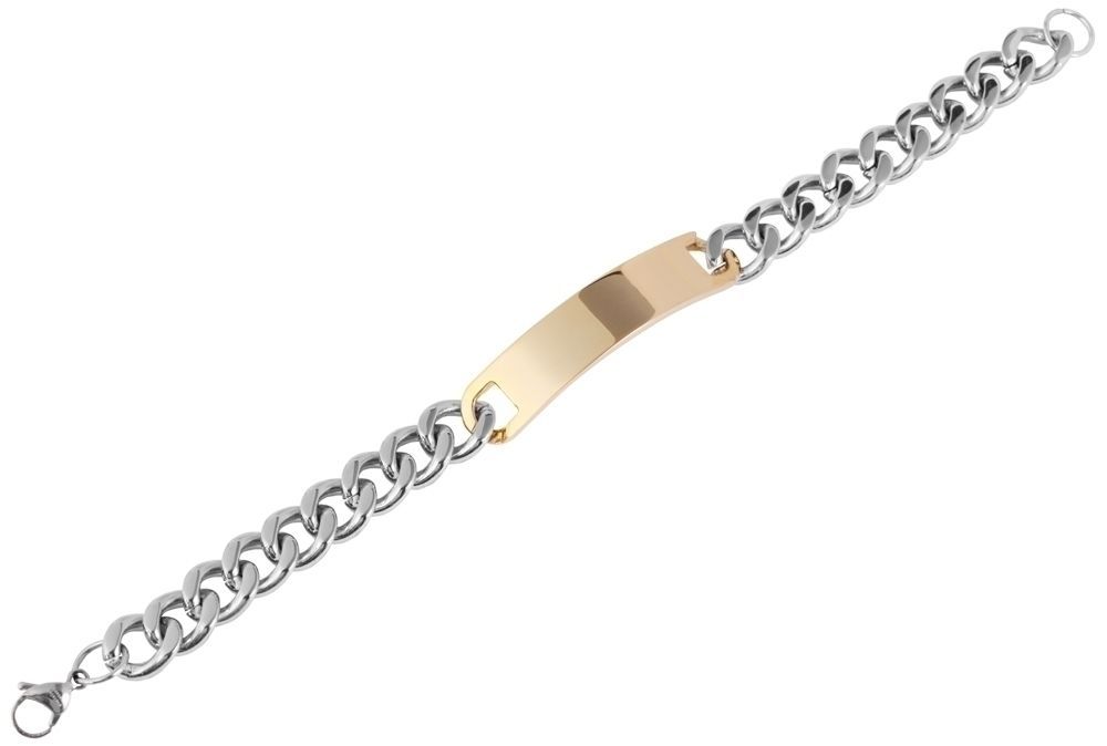 Produktinformationen "Akzent Panzerketten-Armband aus Edelstahl in Bicolor, Gravurplatte mit IP Gold-Beschichtung"