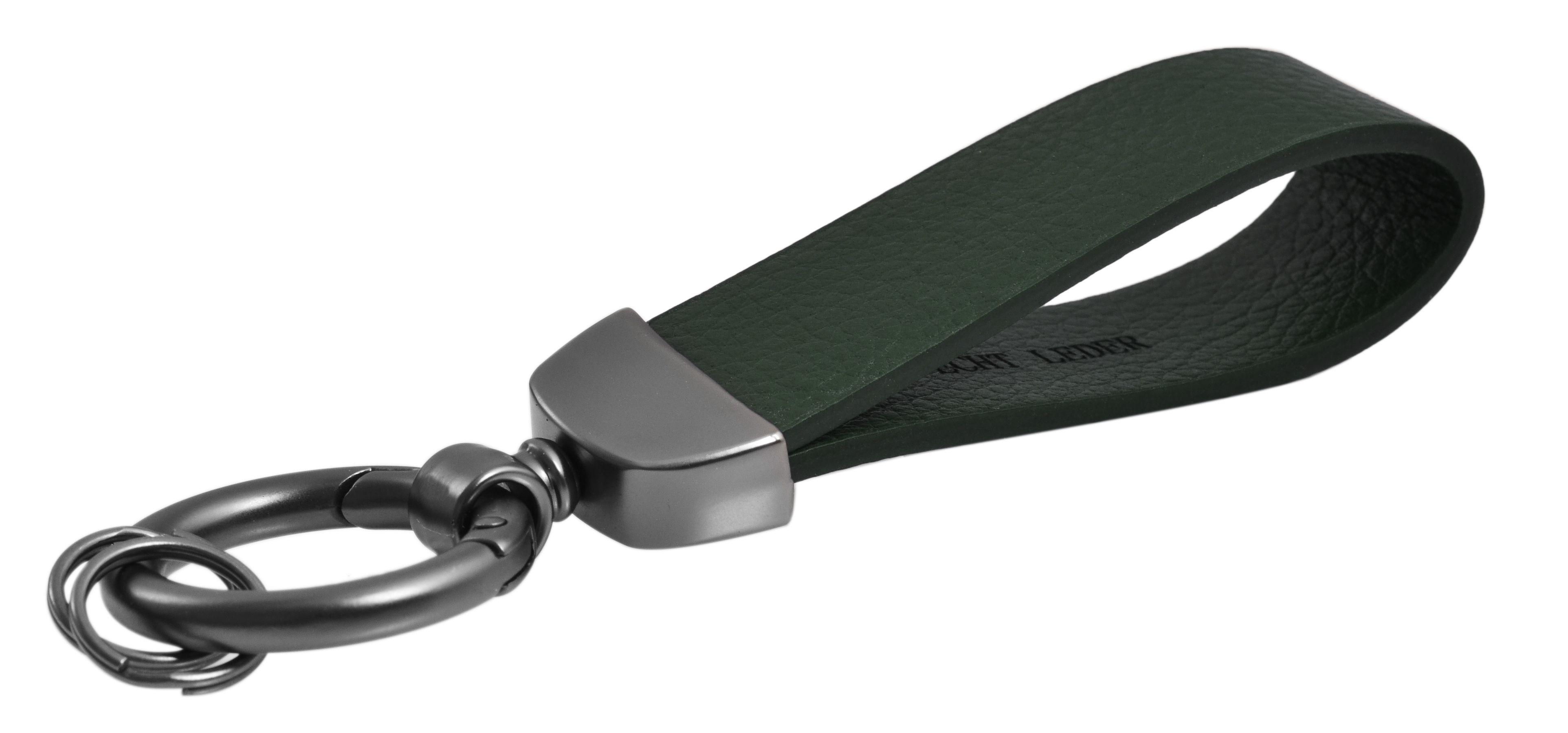 Produktinformationen "Akzent Schlüsselanhänger aus Echtleder und Edelstahl, Dunkelgrün"