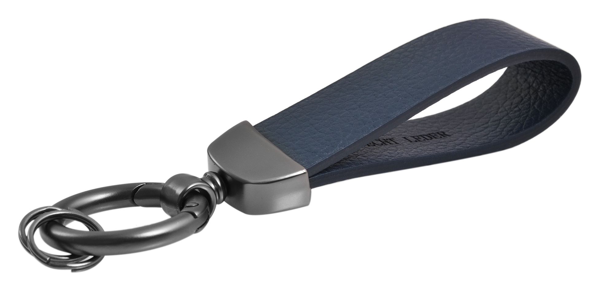 Produktinformationen "Akzent Schlüsselanhänger aus Echtleder und Edelstahl, dunkelblau"