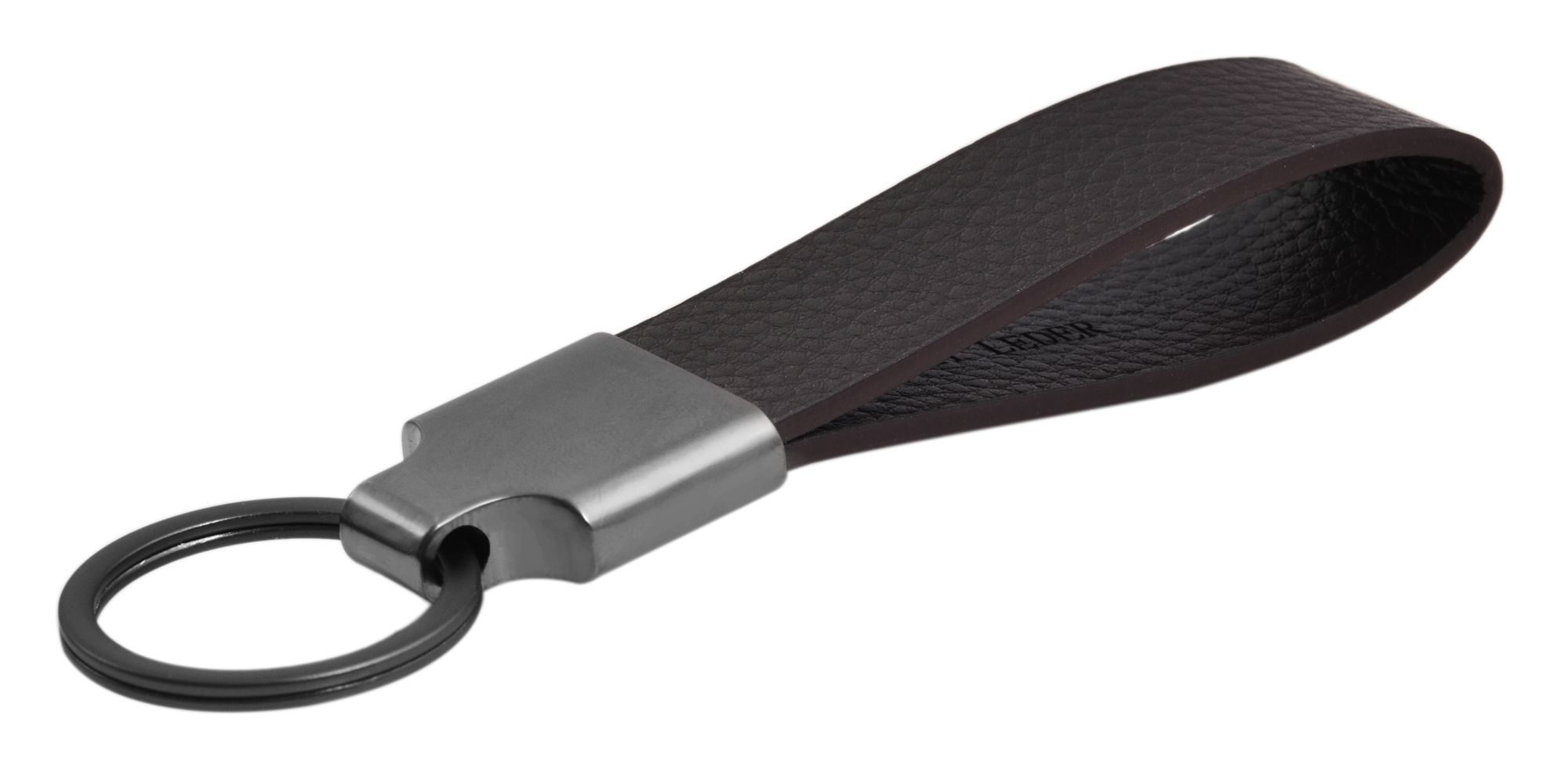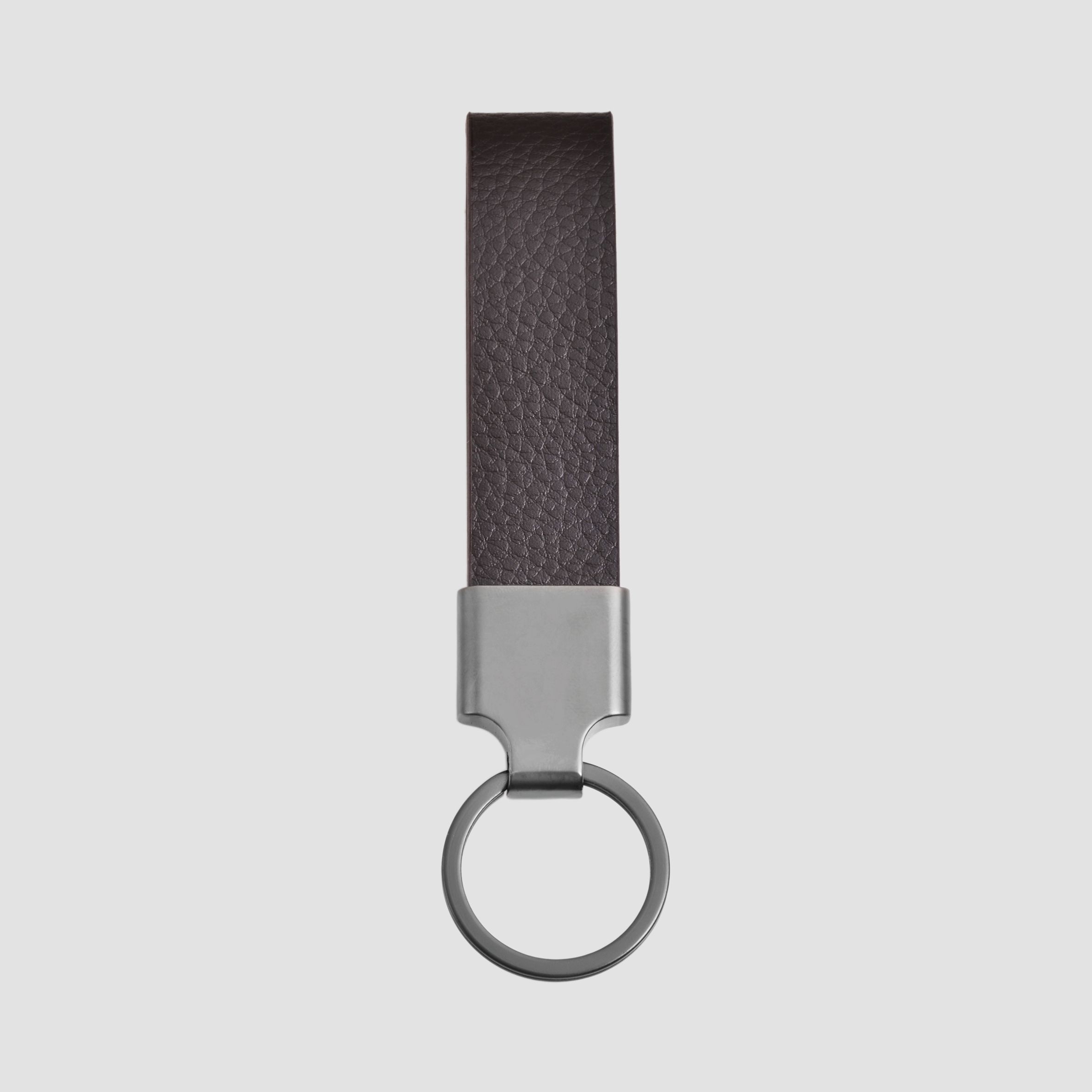 Produktinformationen "Akzent Schlüsselanhänger aus Edelstahl und Echtlederriemen in dunkelbraun"