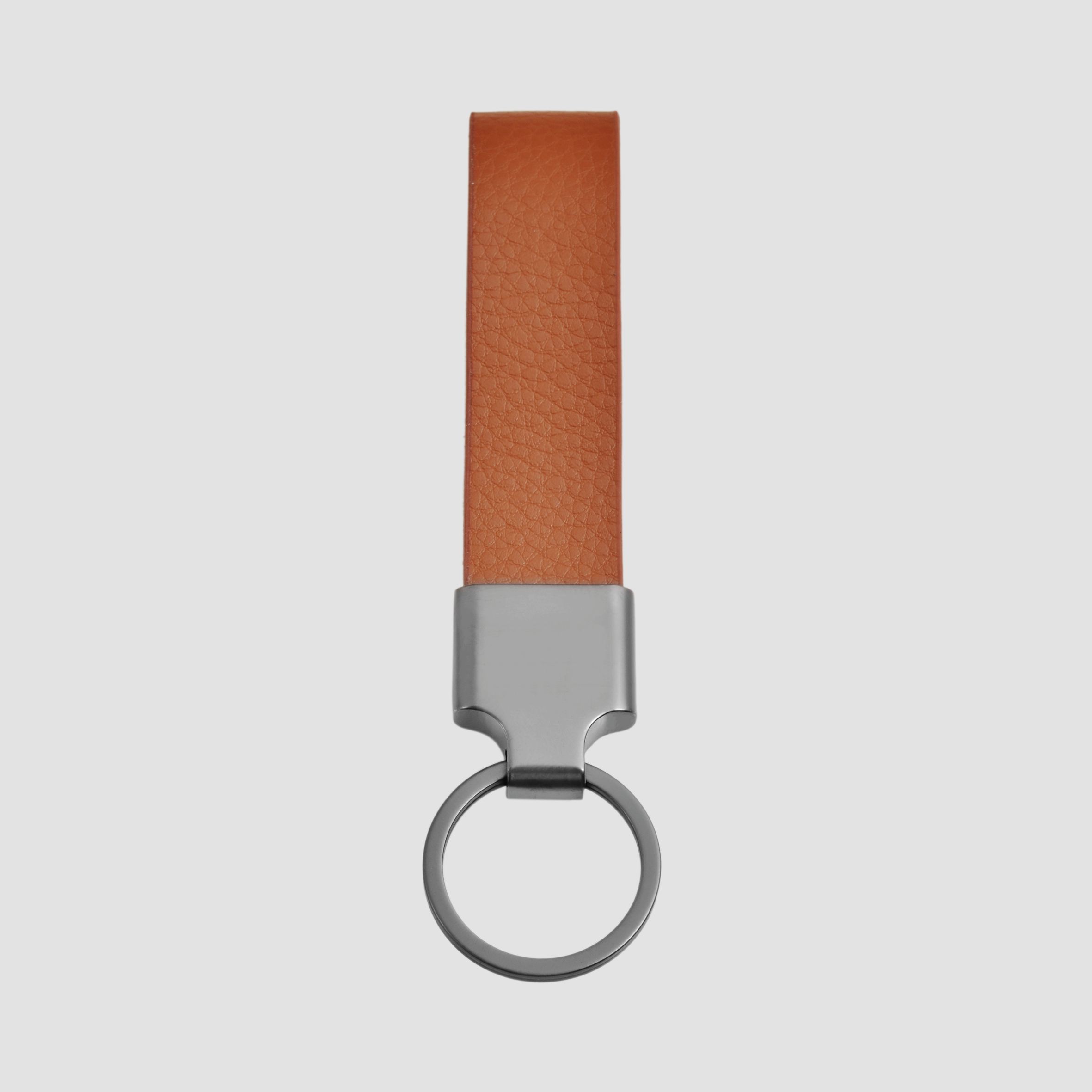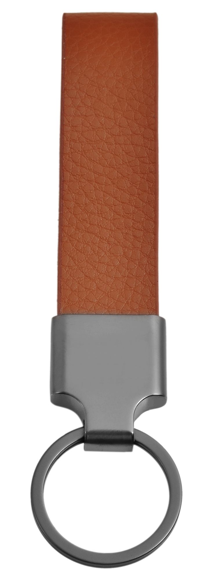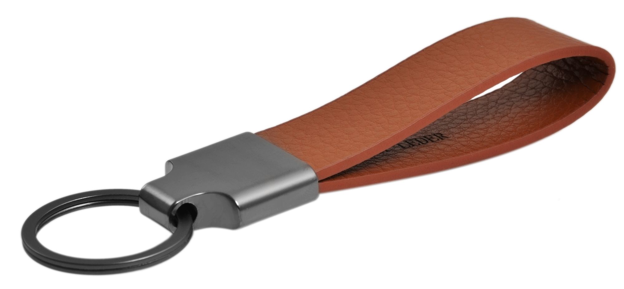 Produktinformationen "Akzent Schlüsselanhänger aus Edelstahl und Echtlederriemen in hellbraun"