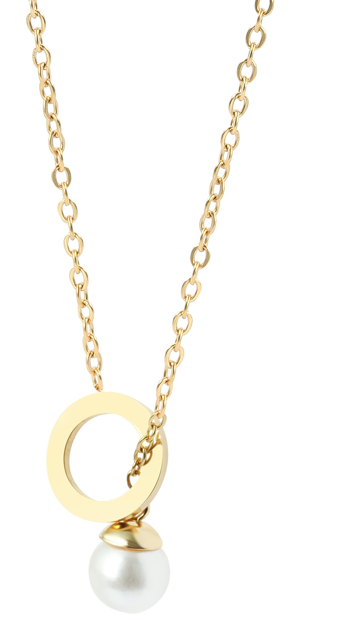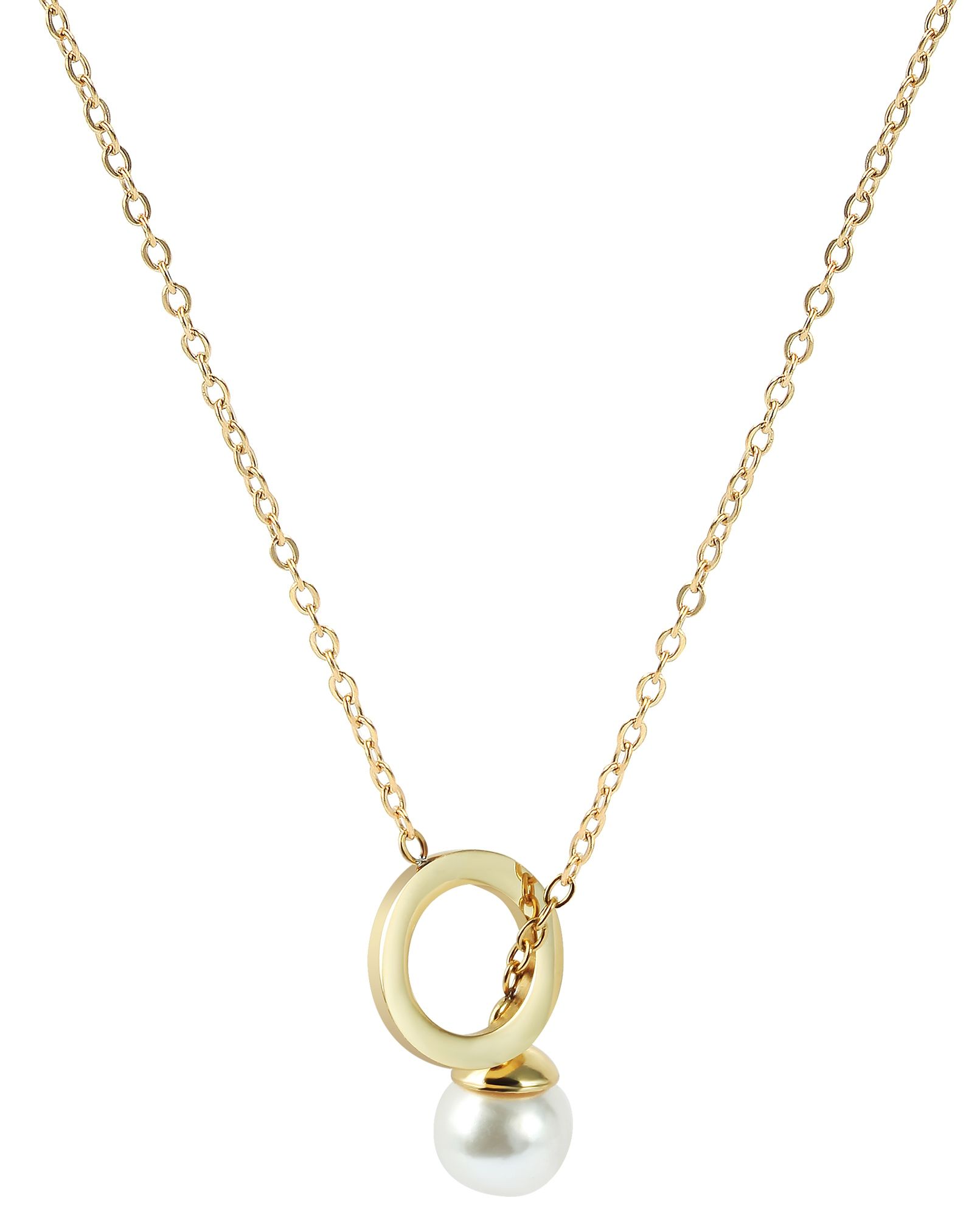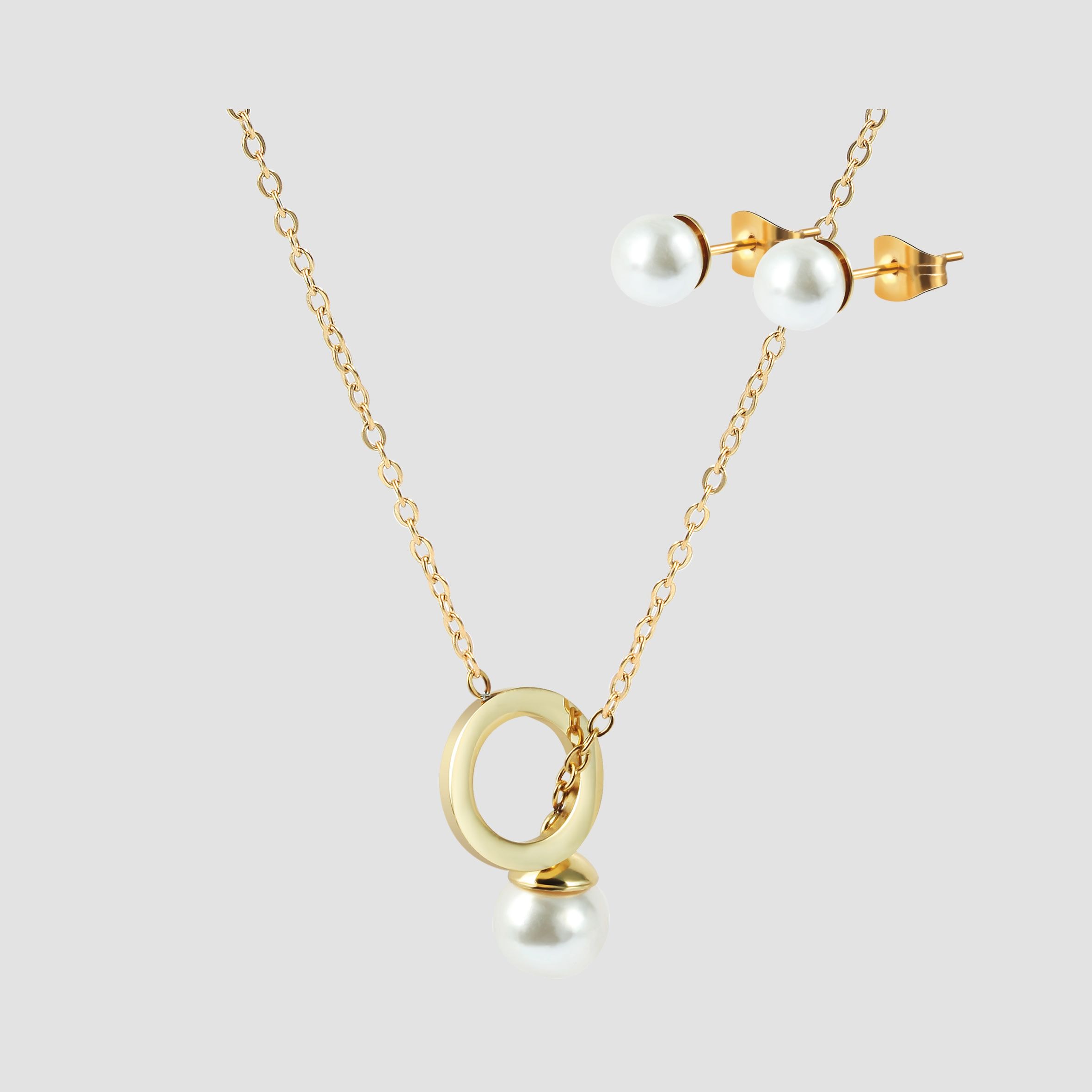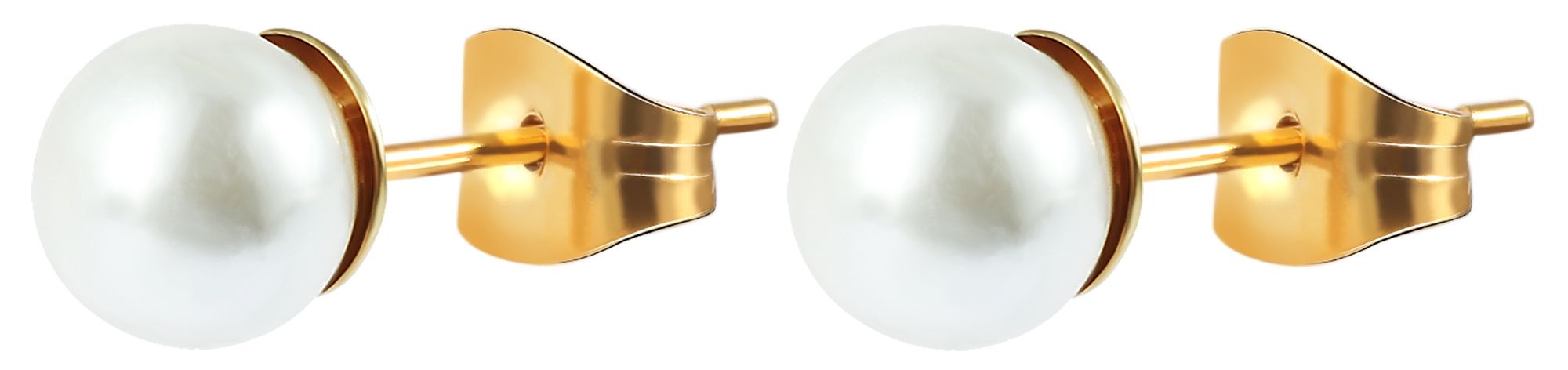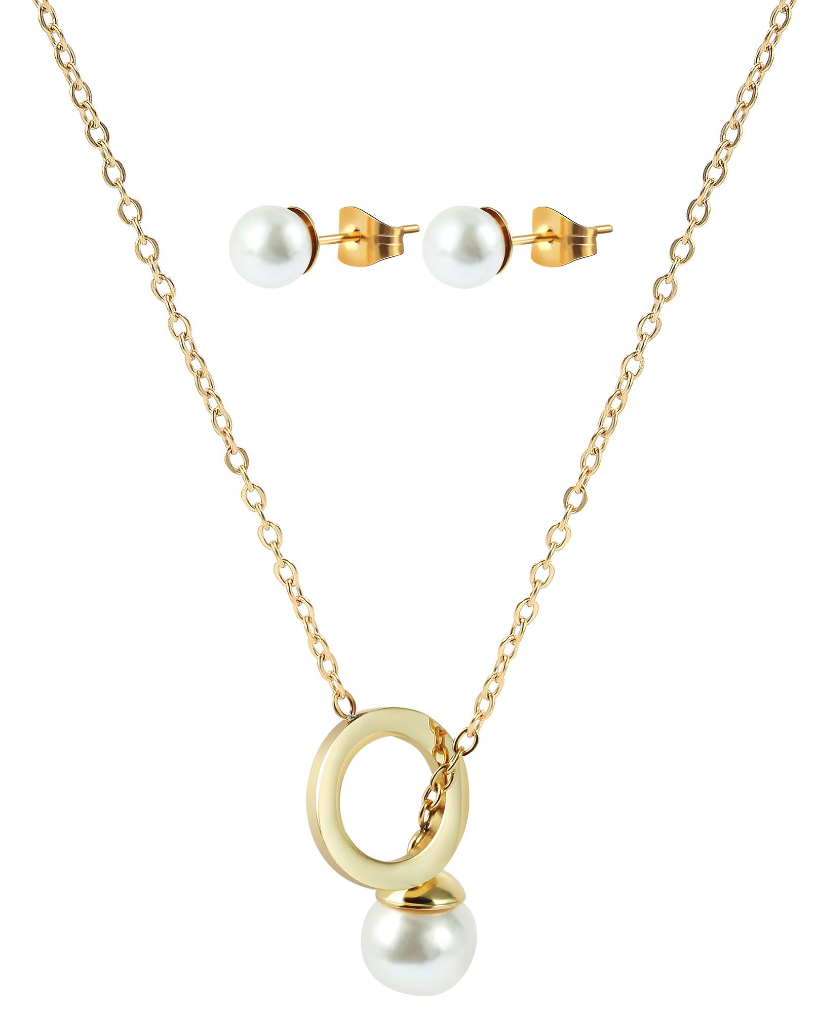 Produktinformationen "Akzent Schmuckset, Kette und Ohrstecker, Edelstahl, Perle, goldfarben"