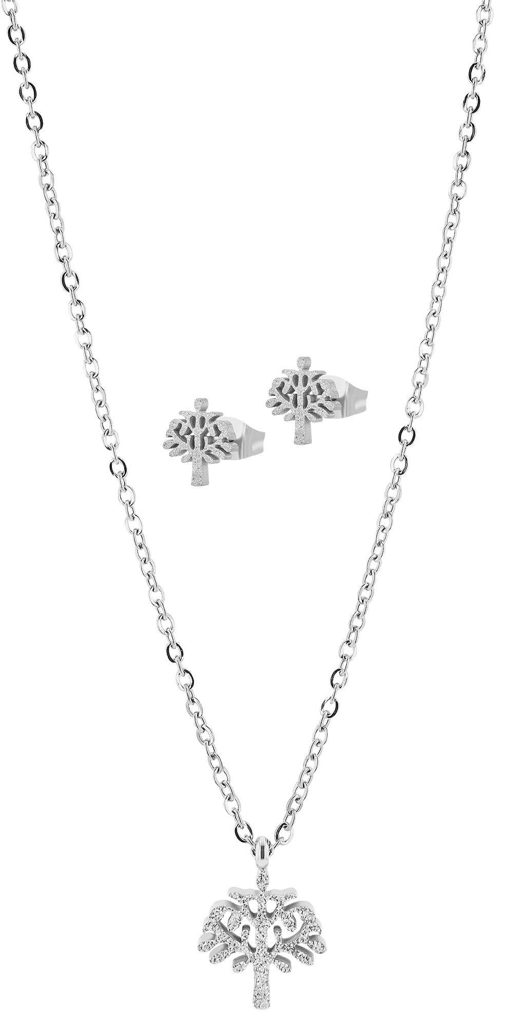 Produktinformationen "Akzent Schmuckset "Lea" aus Edelstahl, Halskette & Ohrstecker mit Lebensbaum, sandgestrahlt, silberfarben"