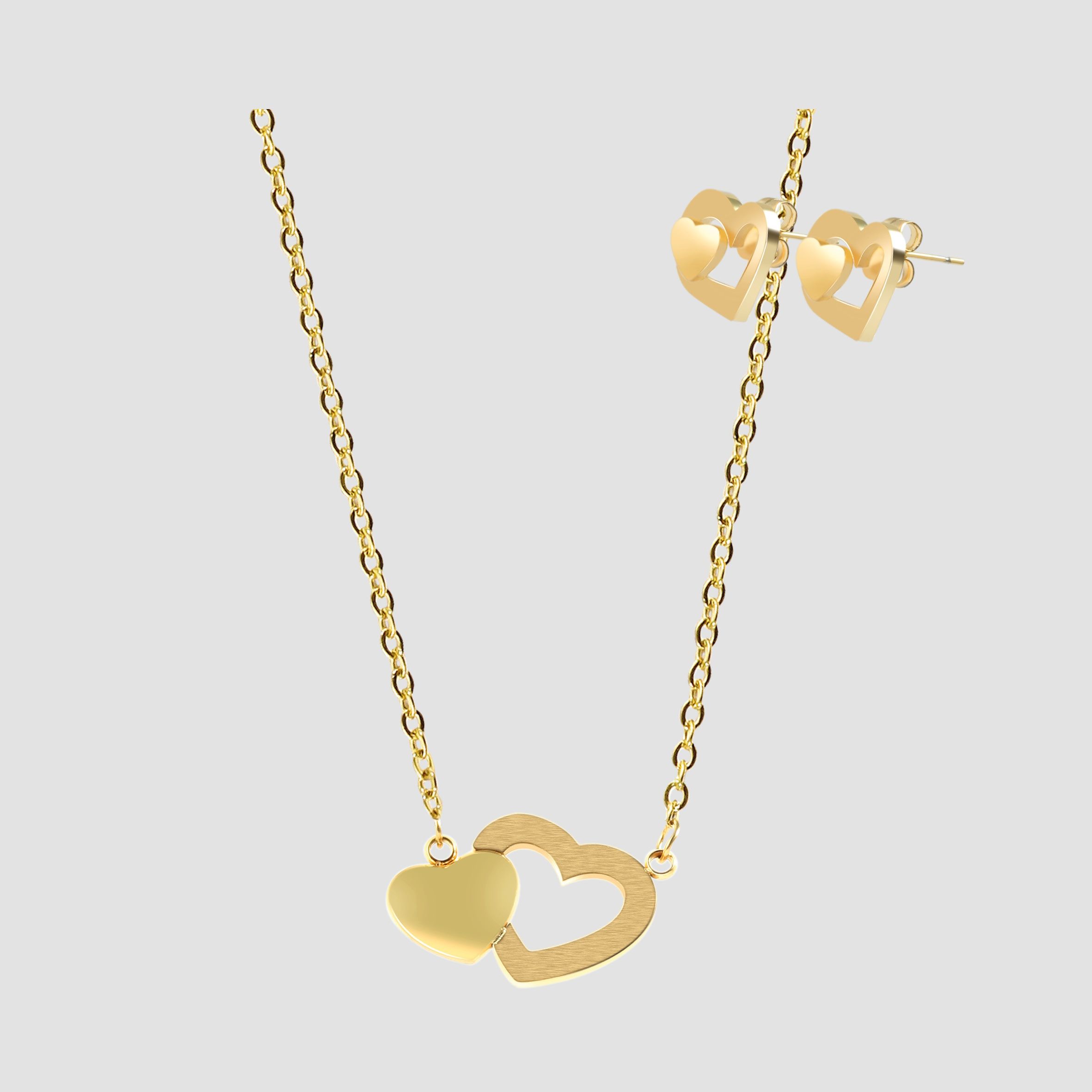 Produktinformationen "Akzent Schmuckset mit Kette und Ohrstecker, Edelstahl, Herz, goldfarben"