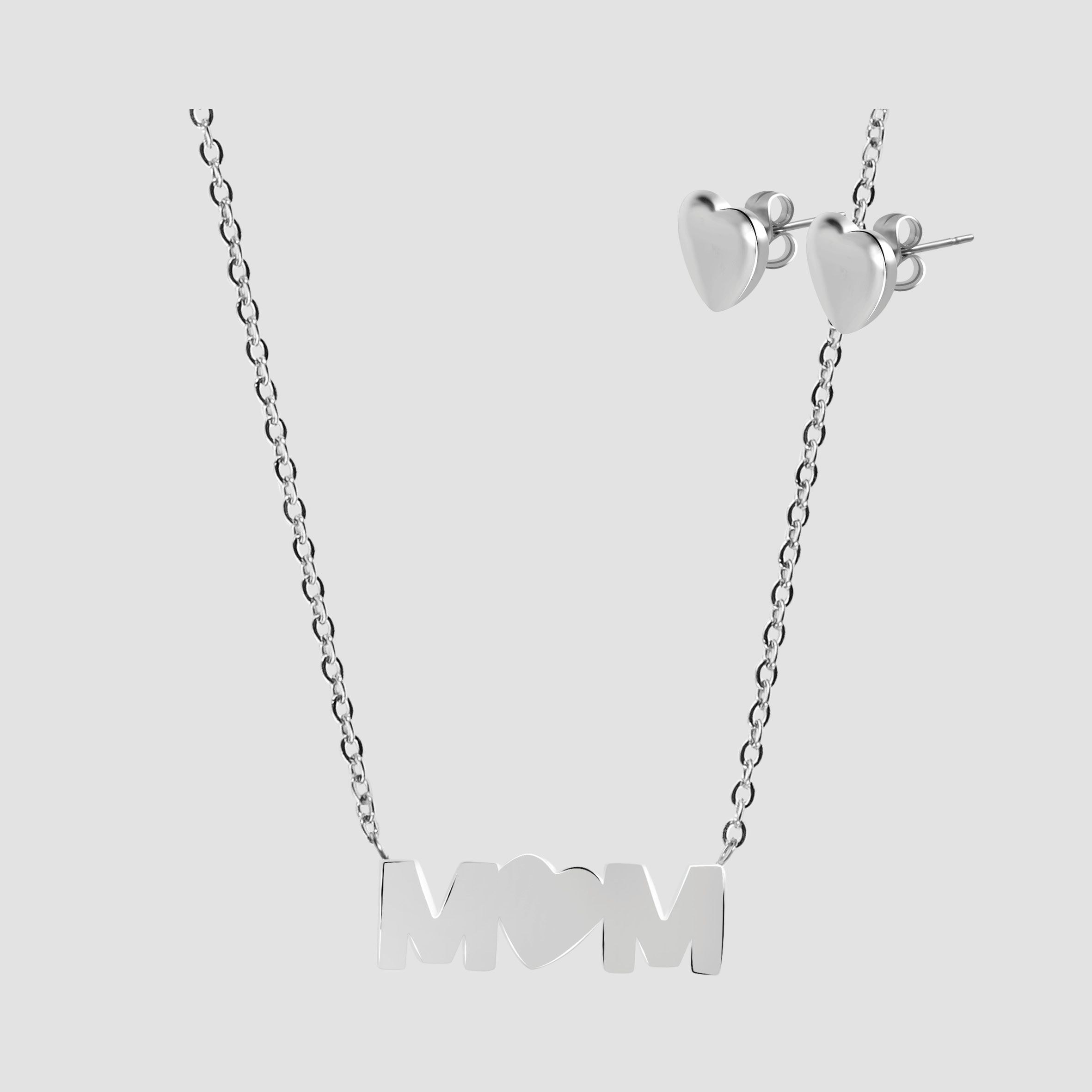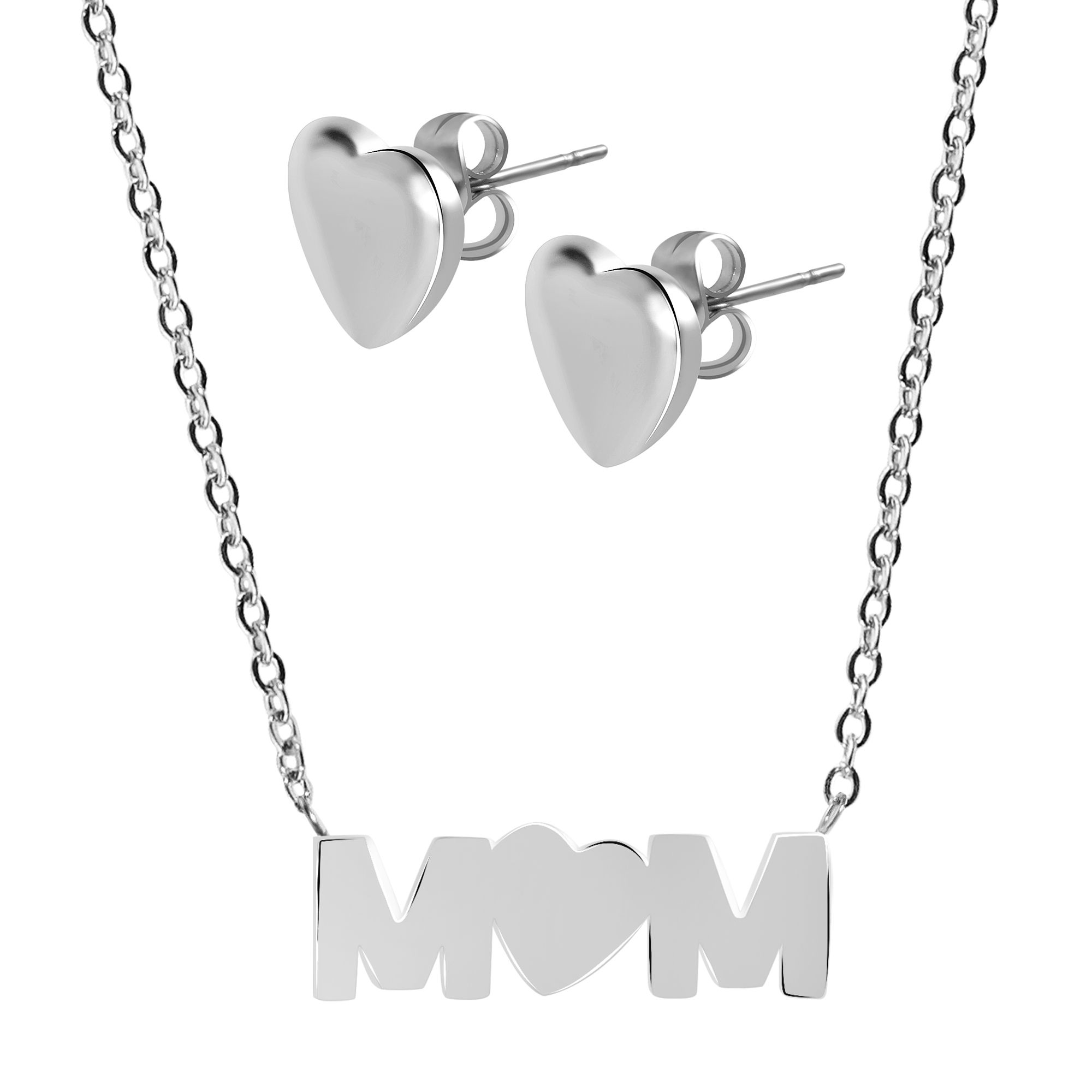 Produktinformationen "Akzent Schmuckset mit Kette und Ohrstecker, Edelstahl, "Mom", silberfarben"