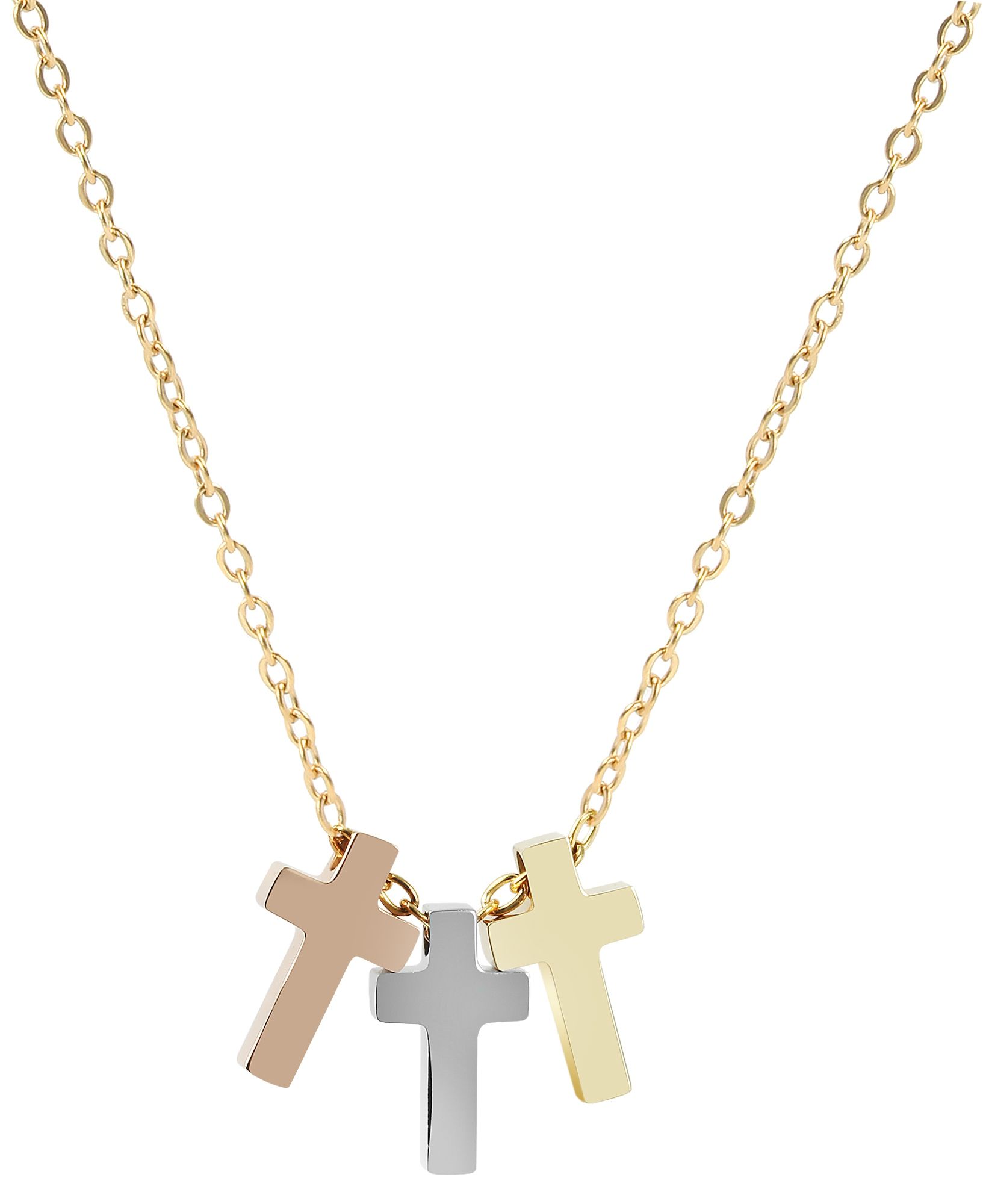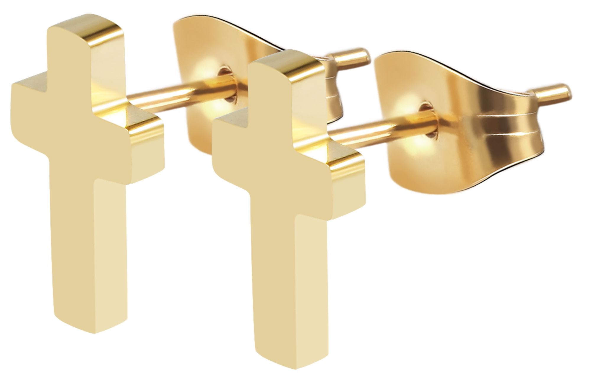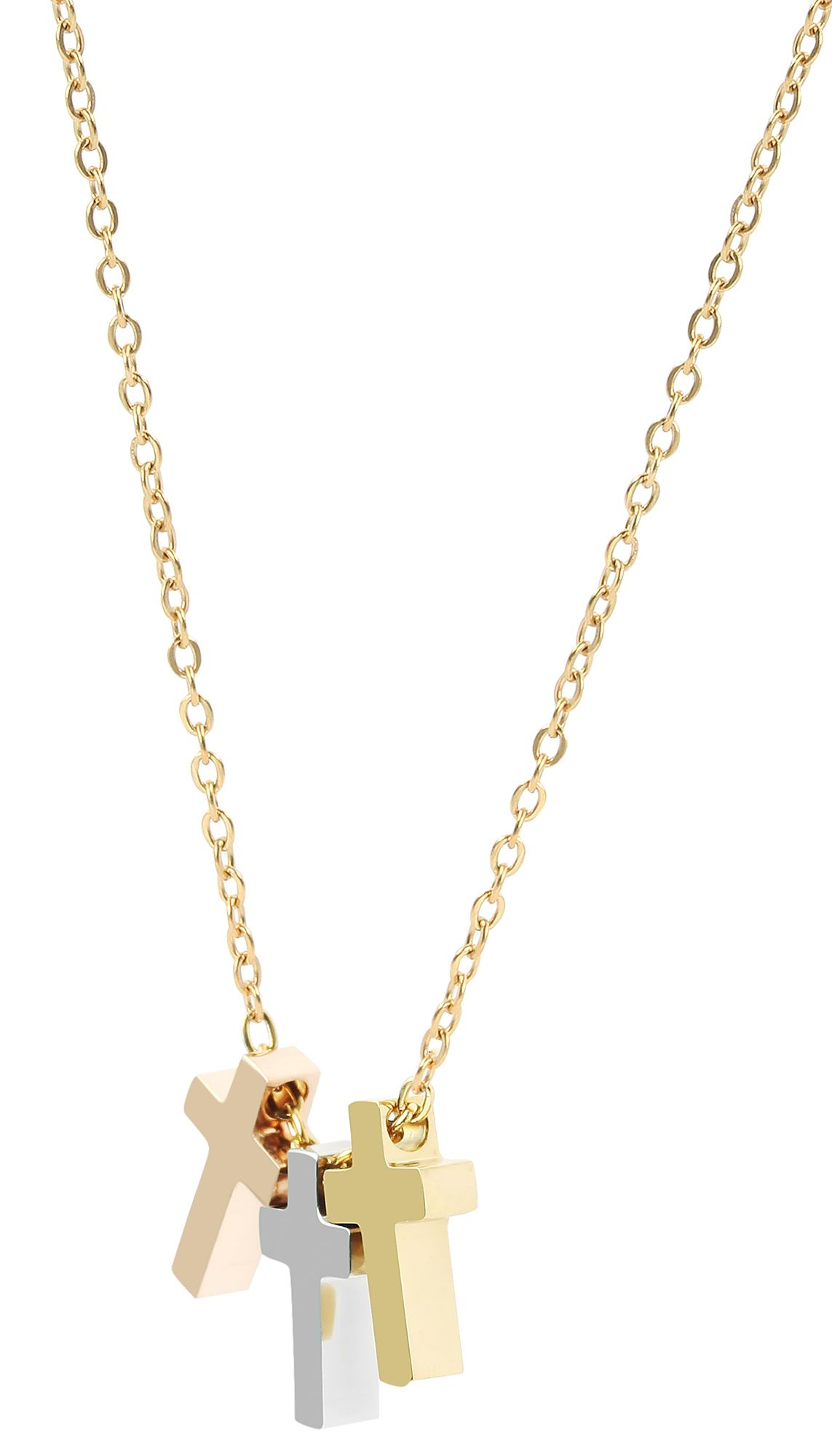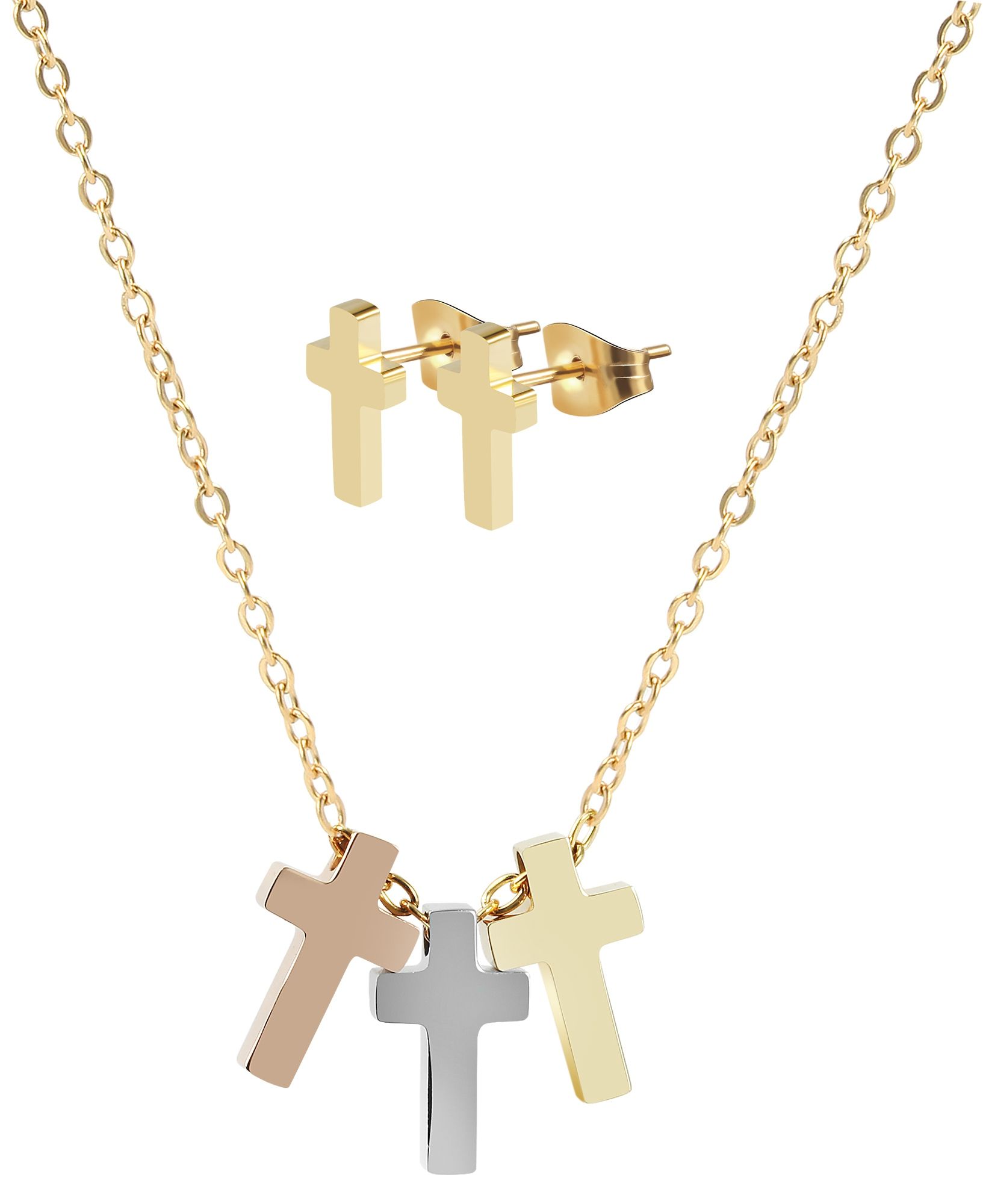 Produktinformationen "Akzent Schmuckset mit Kette und Ohrsteckern, Edelstahl, Kreuz, tricolor"