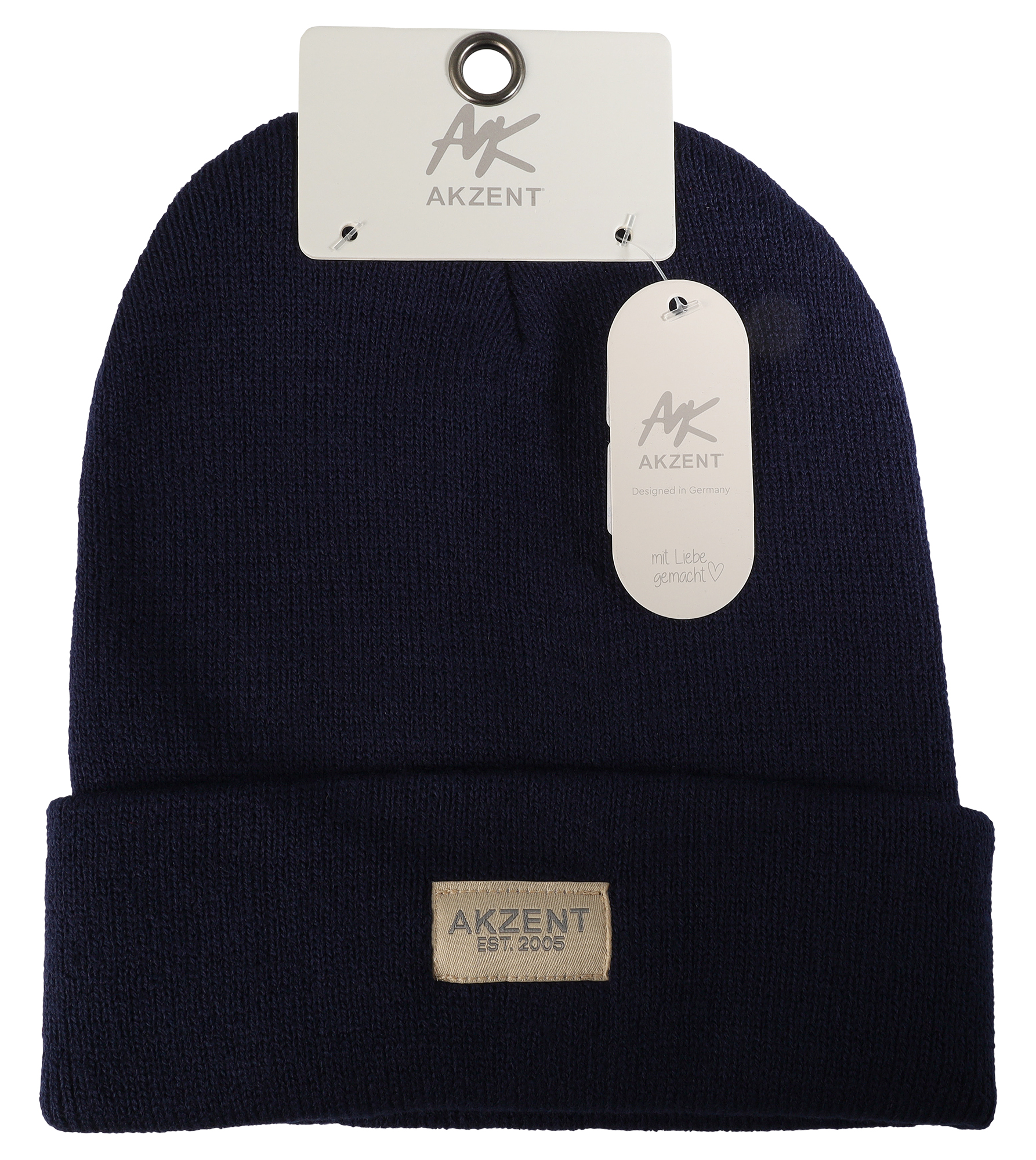 Produktinformationen "Akzent Strickmütze/ Beanie mit Umschlag, 100% Acryl, 4-VE, dunkelblau"