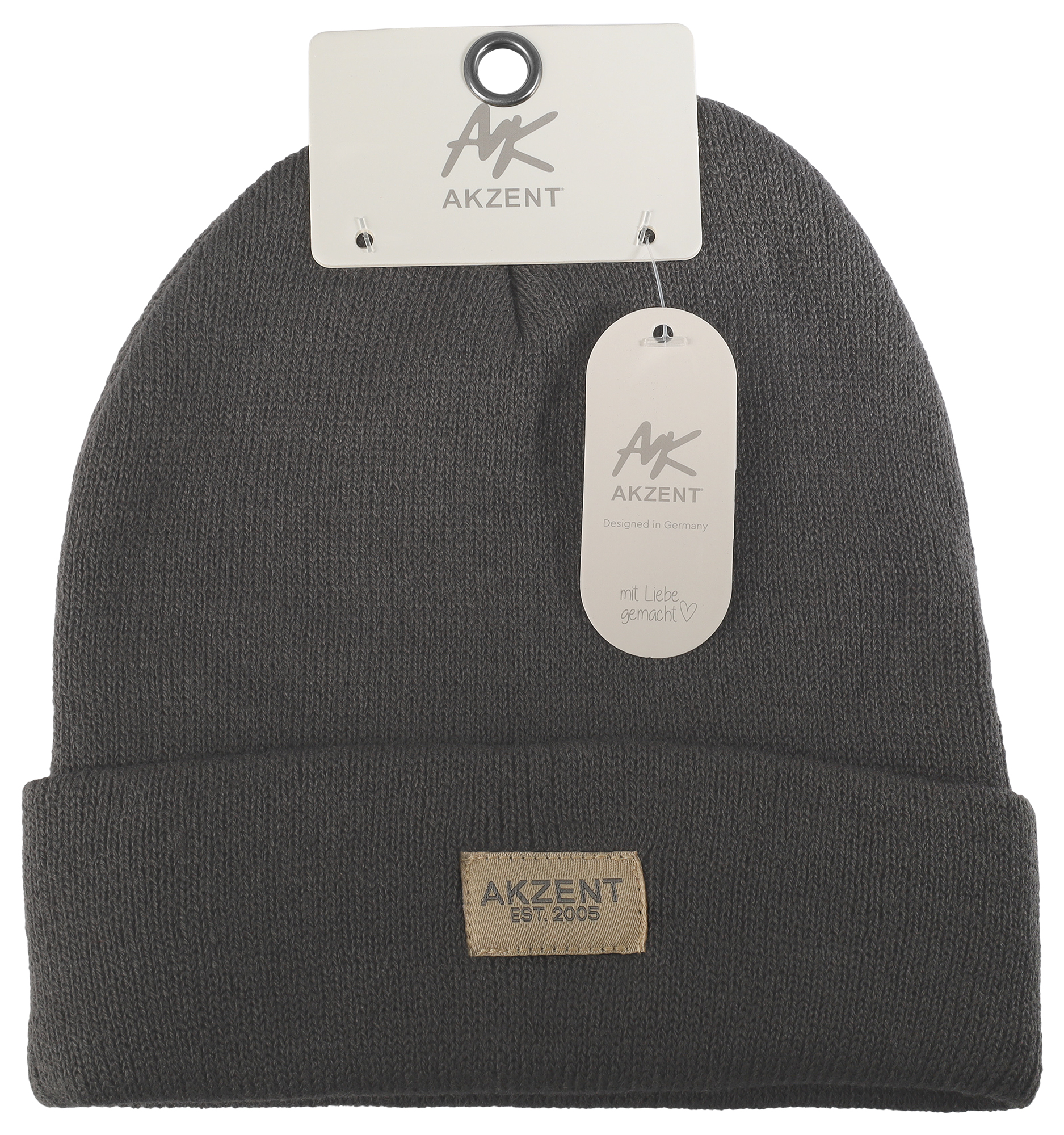 Produktinformationen "Akzent Strickmütze/ Beanie mit Umschlag, 100% Acryl, 4-VE, grau"