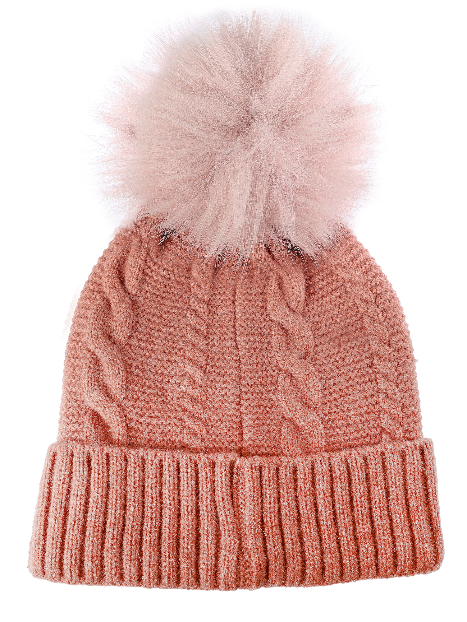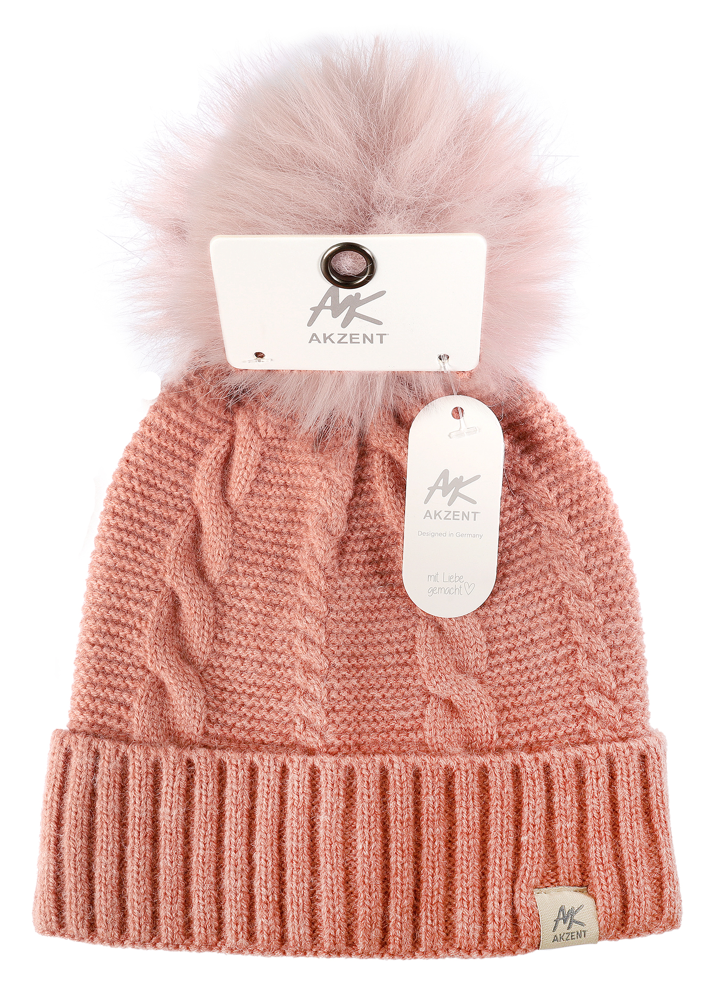 Produktinformationen "Akzent Strickmütze für Damen (mit Kunstfellbommel), VE-4, altrosa"