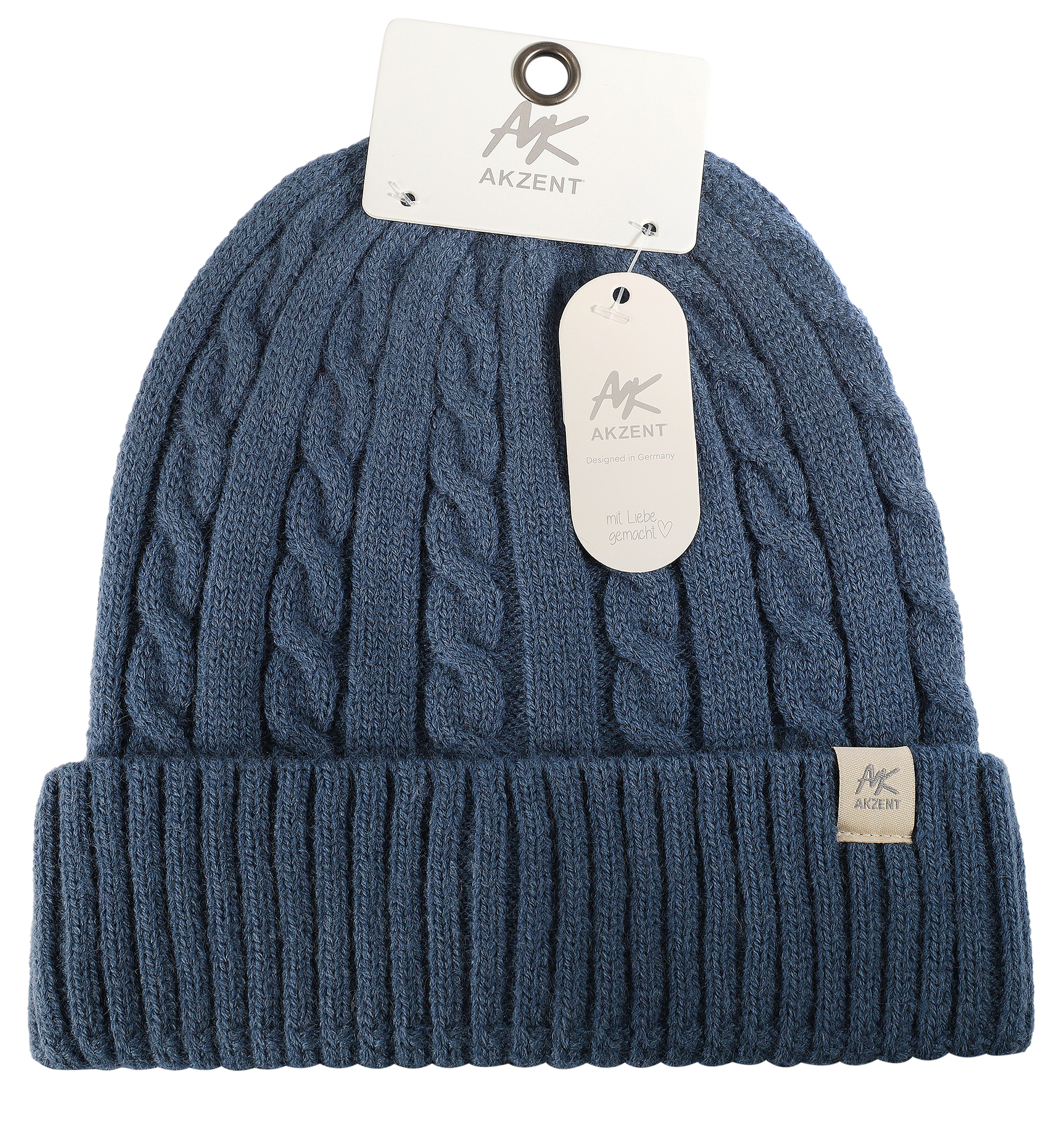 Produktinformationen "Akzent Strickmütze mit Umschlag, 100% Acryl, 4-VE, dunkelblau"