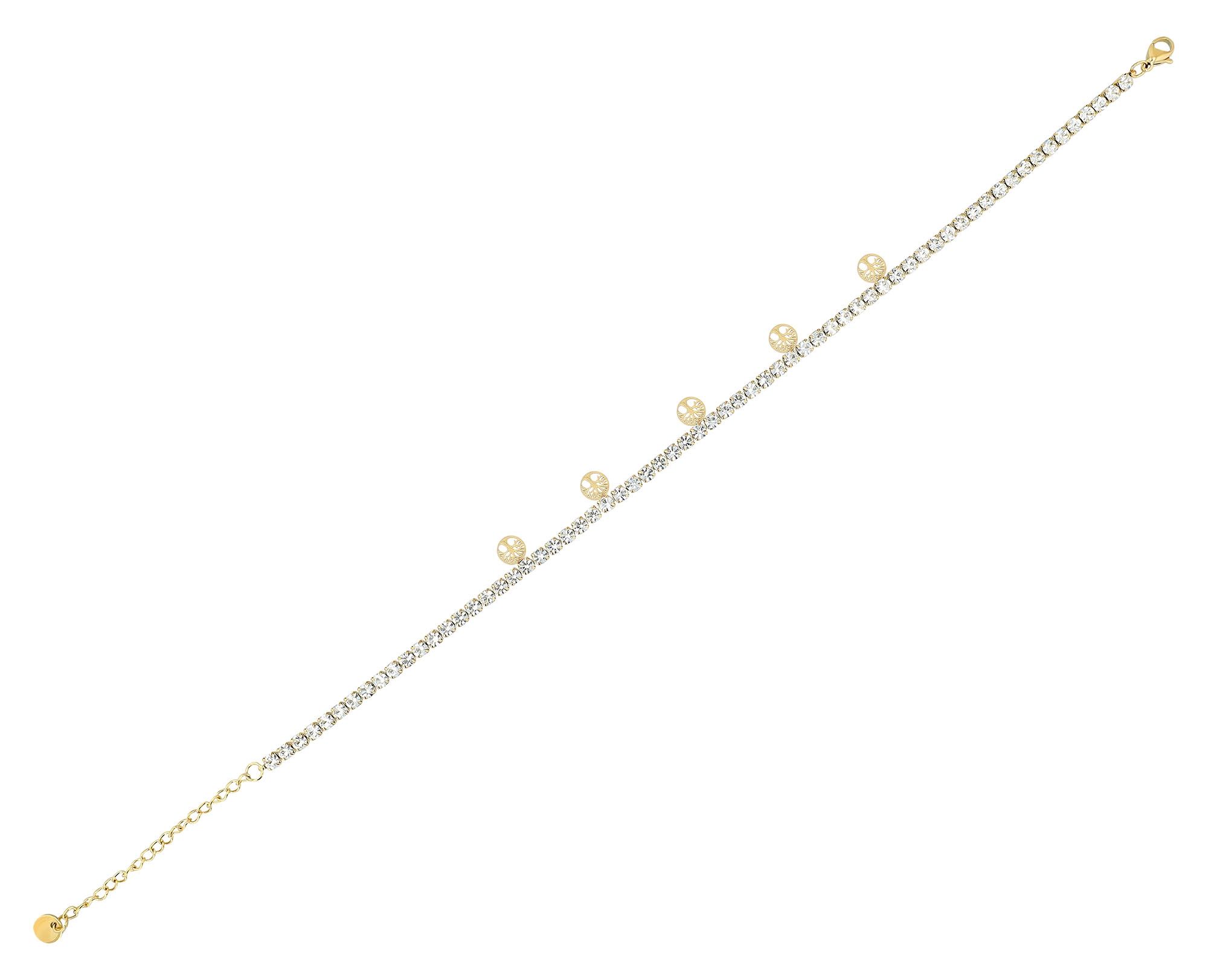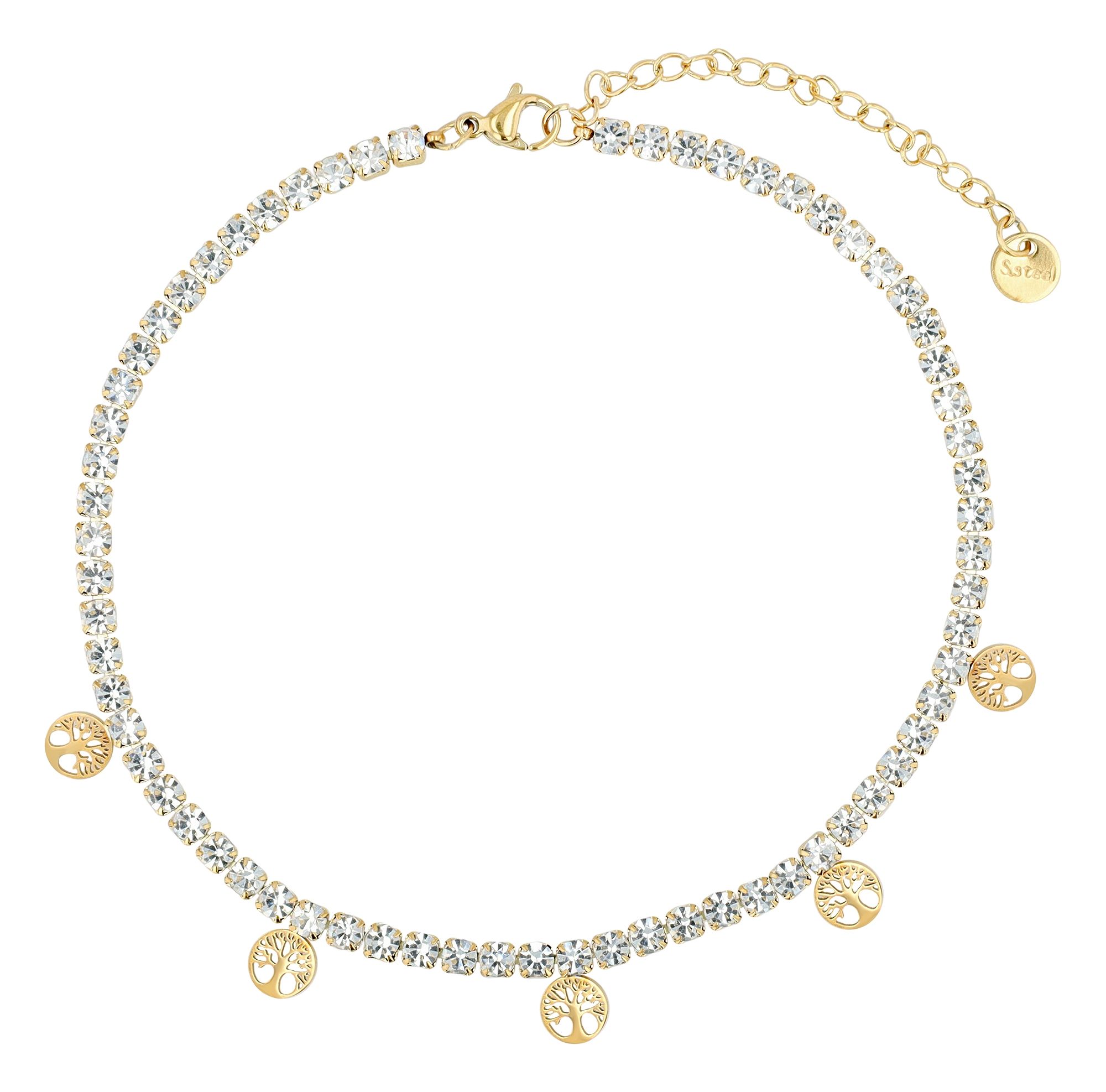 Produktinformationen "Akzent Tennis-Fußkette "Fidelia", Edelstahl & Simili mit Lebensbaumanhänger, goldfarben"