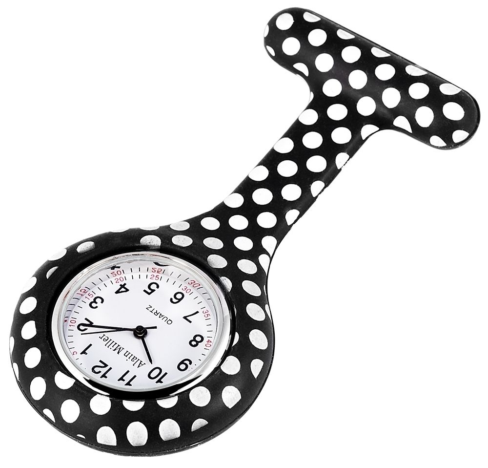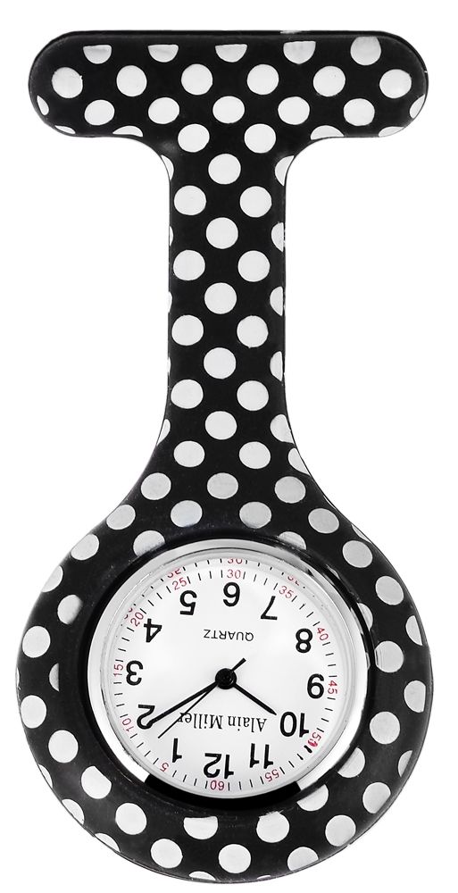 Produktinformationen "Alain Miller Krankenschwesteruhr aus Silikon, schwarz/weiß gepunktet"
