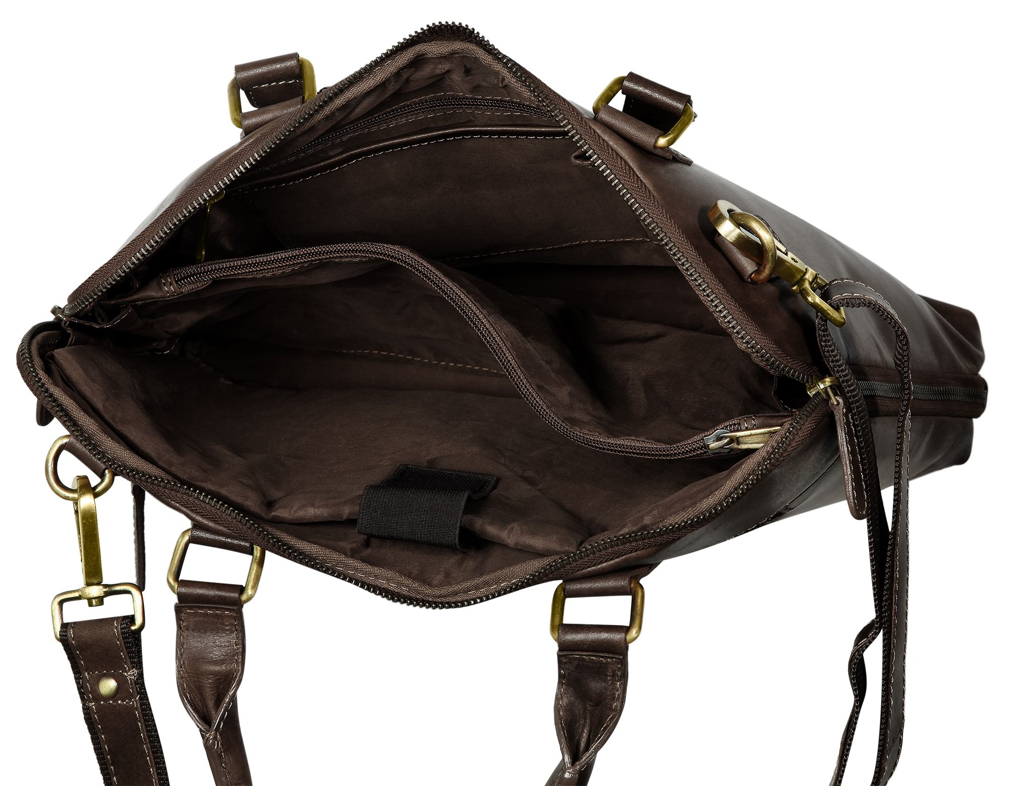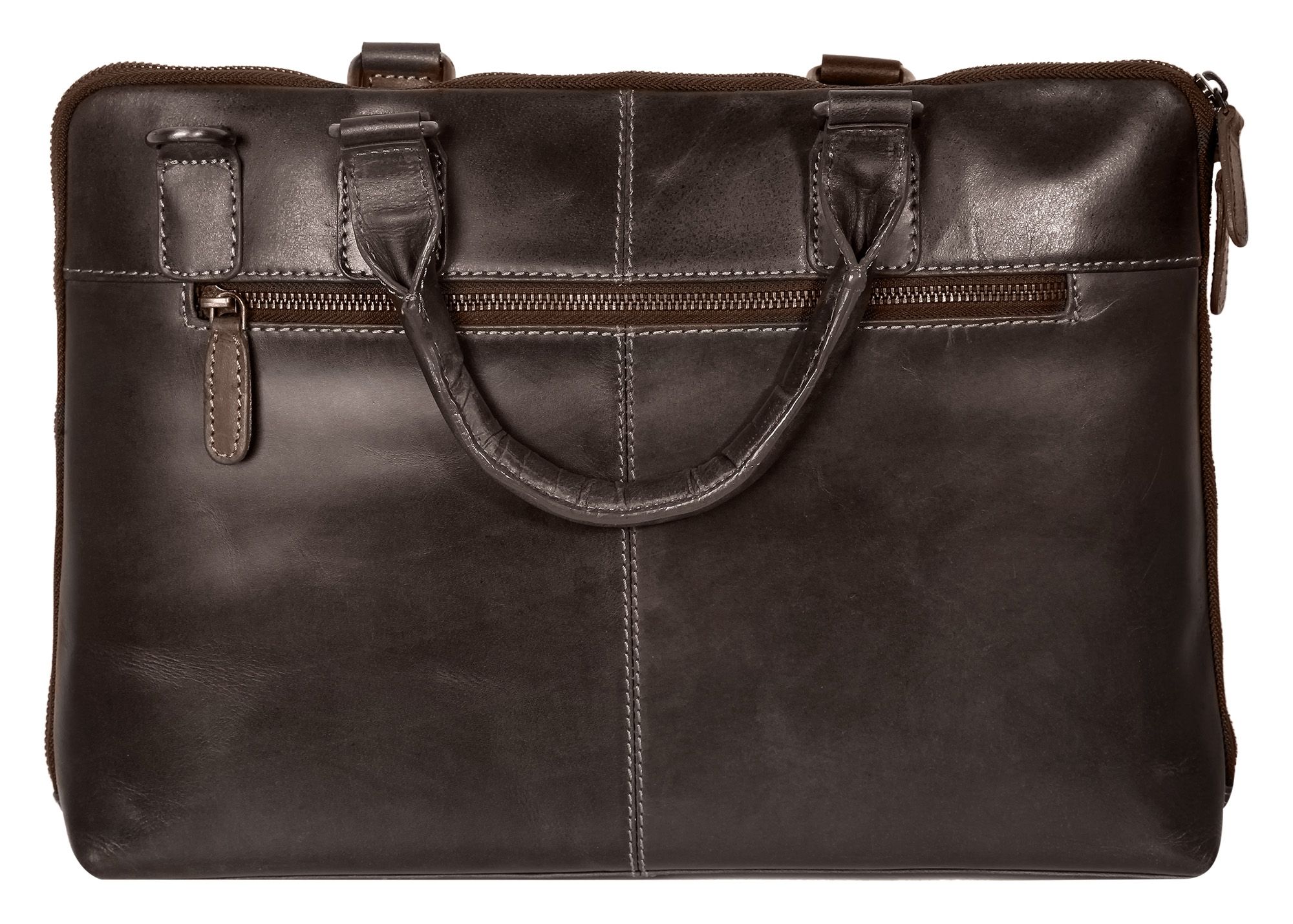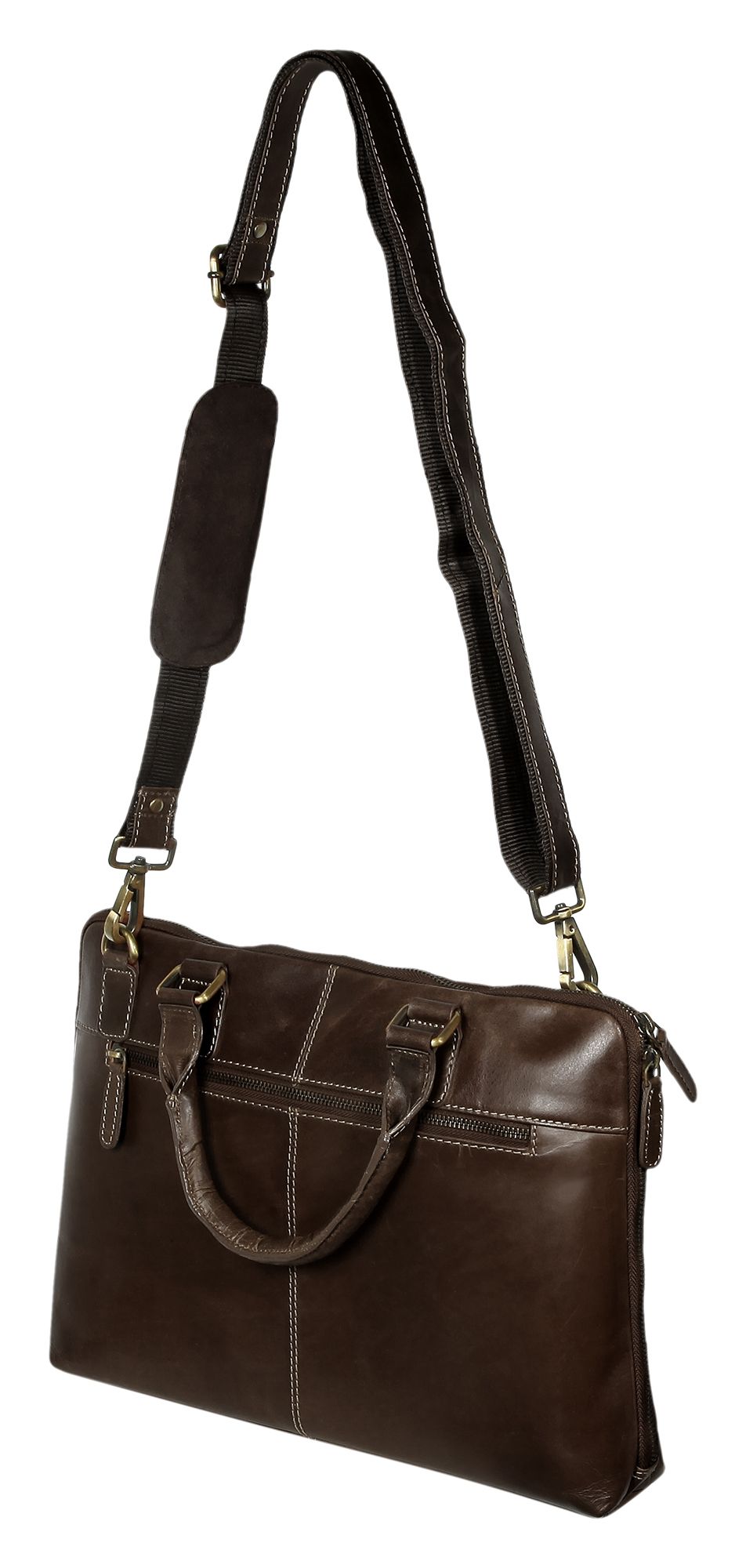 Die Umhängetasche der Marke Leonardo Verrelli ist aus Rindsleder gefertigt und präsentiert sich in schlichter Optik mit leicht antikem Finish. Die Tasche ist der perfekte Begleiter, denn sie verfügt über sehr viel Stauraum und zahlreiche Fächer und lässt sich für die verschiedensten Anlässe verwenden. Aufgrund der idealen Größe lässt sie sich perfekt über der Schulter oder Crossbody tragen. Zudem verfügt sie über einen Tragehenkel und einem verstell- und abnehmbaren Schultergurt, der aus einer Kombination aus Stoff und Leder hergestellt wurde und auf eine maximale Gesamtlänge von ca. 150 cm eingestellt werden kann. Das Hauptfach lässt sich mit einem Reißverschluss öffnen und schließen. Im Inneren befinden sich zwei weitere Reißverschlussfächer, zwei Einsteckfächer und ein großes Innenfach, welches durch einen Trennbereich aufgeteilt wird. Weitere Aufbewahrungsmöglichkeit bietet das Reißverschlussfach im Außenbereich. Die stilsichere Tasche ist ein zeitloser Allrounder, der sich zu vielen Gelegenheiten ausführen lässt. Zusätzlich überzeugt hier nicht nur das Design, sondern die Möglichkeit der Aufbewahrung aller wichtigen Gegenstände. Ob für einen gemütlichen Spaziergang, zum Einkaufen oder einen Ausflug - mit dieser Handtasche erhalten Sie einen idealen Gefährten aus natürlichen und langlebigen Materialien. Die Größe der Tasche ergibt sich im ungefüllten Zustand aus einer Länge von 27 cm, einer Breite von 40 cm und einer Materialstärke von 7 cm.