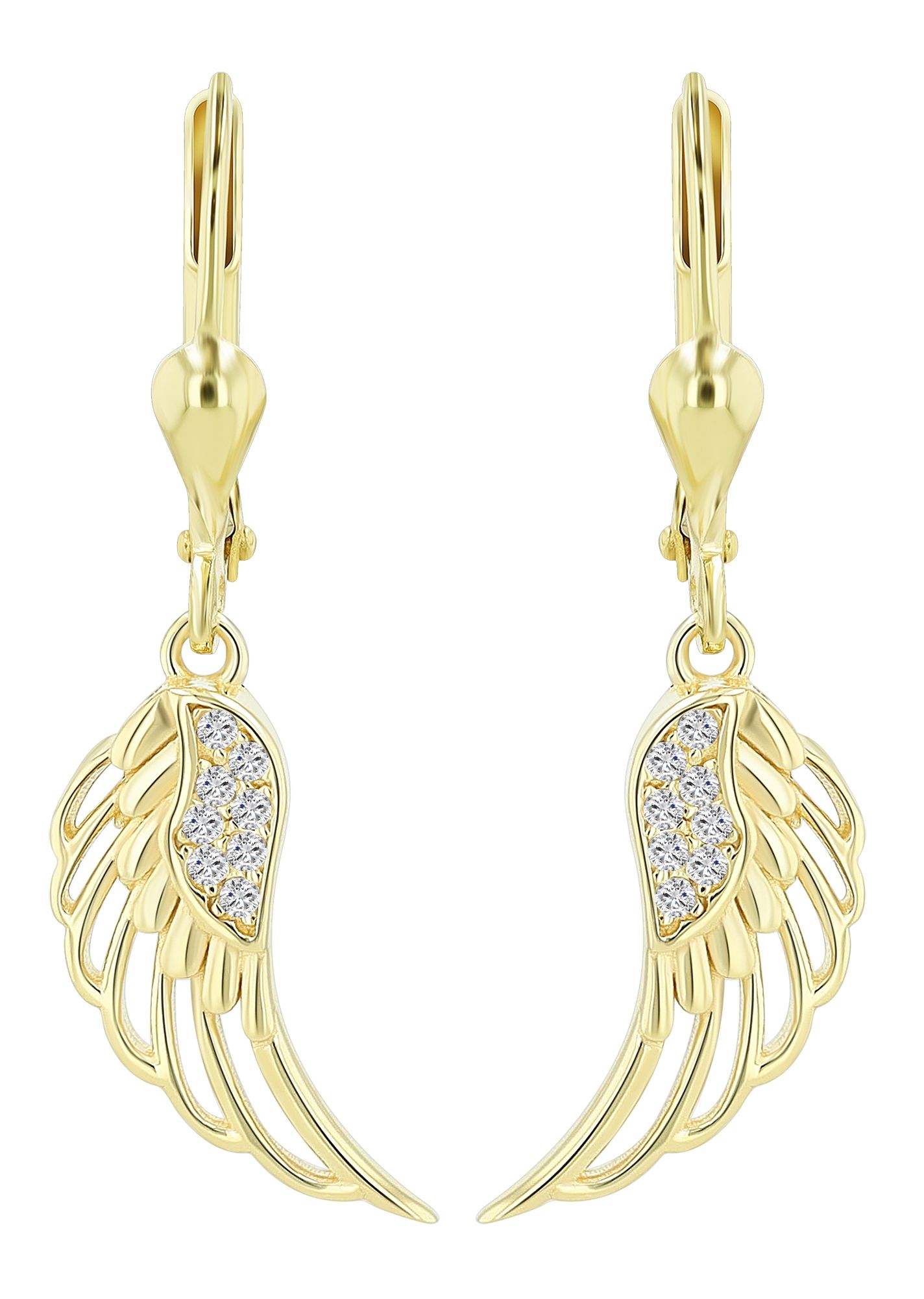 Produktinformationen ""Allanah" 925/- Echt Silber Ohranhänger, Flügel, Zirkoniabesatz, vergoldet"
