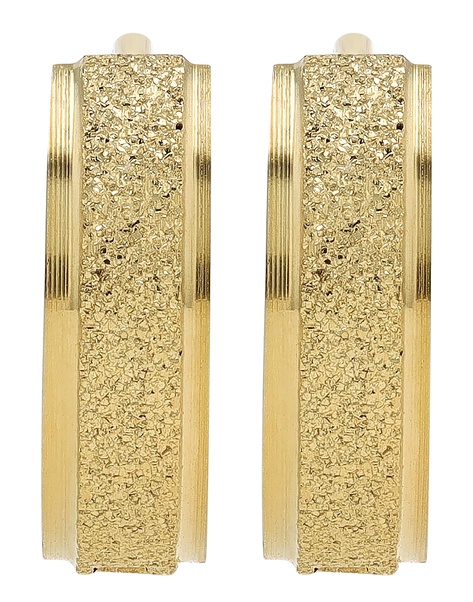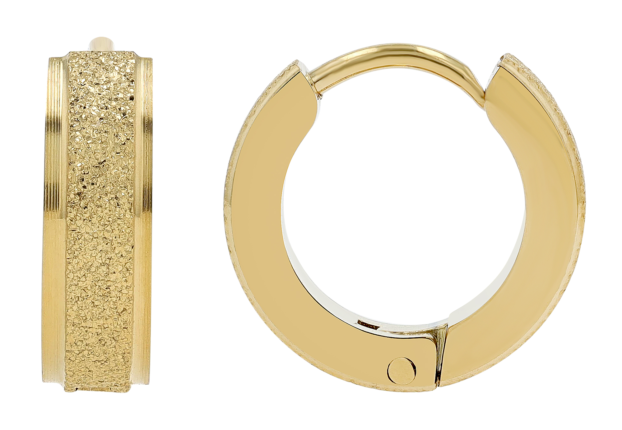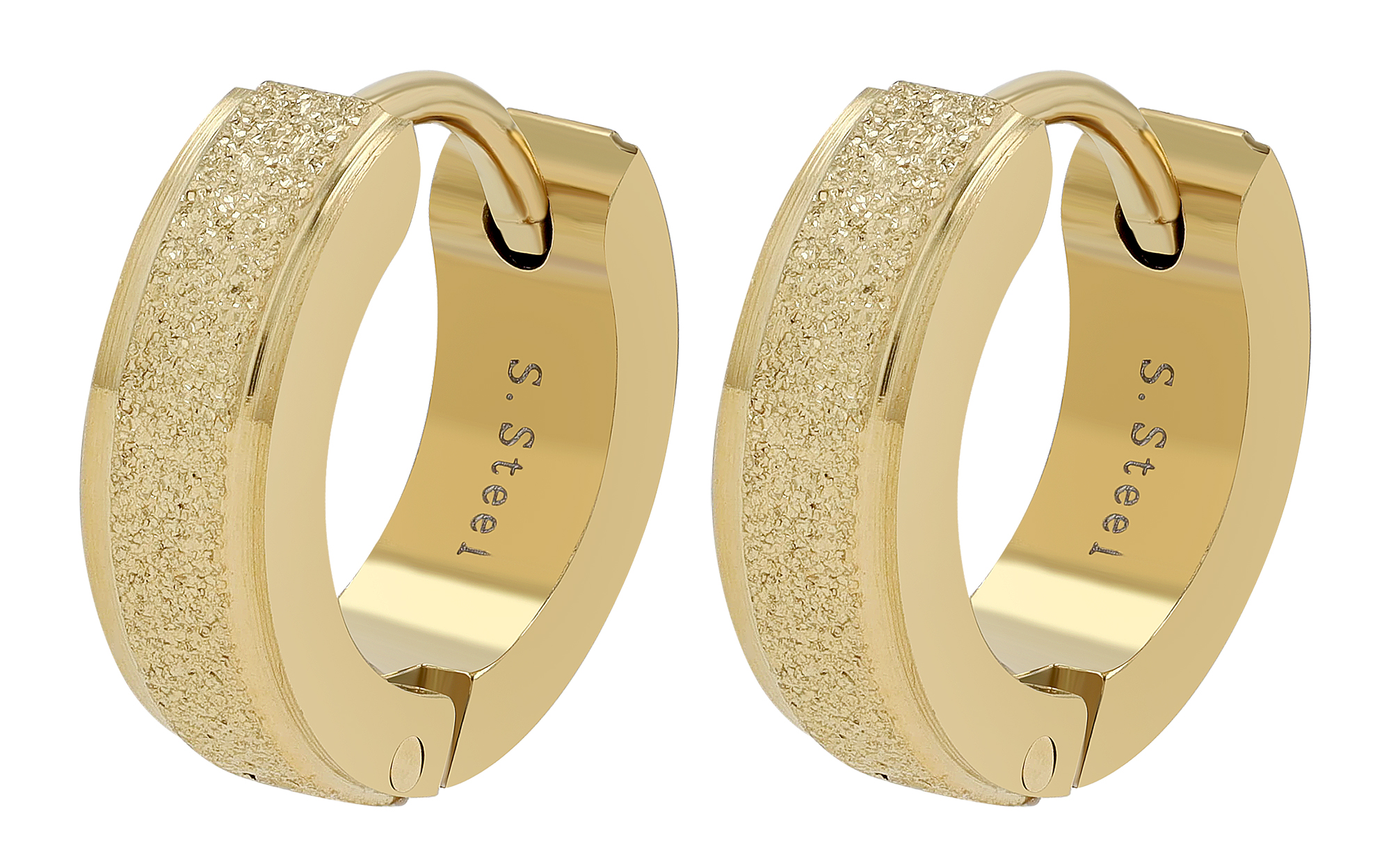 Die femininen Klapp-Creolen der Marke Akzent wurden aus Edelstahl hergestellt und ergeben die perfekte Kombination aus schlichtem Design und Eleganz. Die funkelnde sandgestrahlte Glitzer-Oberfläche gibt der Creole einen Hauch von Glamour und lässt sie zu einem echten Hingucker werden. Das Material ist besonders robust und steht für Langlebigkeit. Zudem ist Edelstahl ideal für Allergiker geeignet, da es sich als besonders hautfreundlich erweist. Die Klapp-Funktion macht das An- und Ausziehen besonders einfach und unkompliziert. Ein eigenständiges Öffnen ist durch den praktischen Verschluss unmöglich. Mit einem Durchmesser von 9 mm, einer Breite von 4 mm und einer Materialstärke von 2,5 mm eignen sich die Ohrringe perfekt für den täglichen Gebrauch, aber auch für besondere Anlässe. Die Creolen sind goldfarbig (IPG-beschichtet) und hochglanzpoliert.