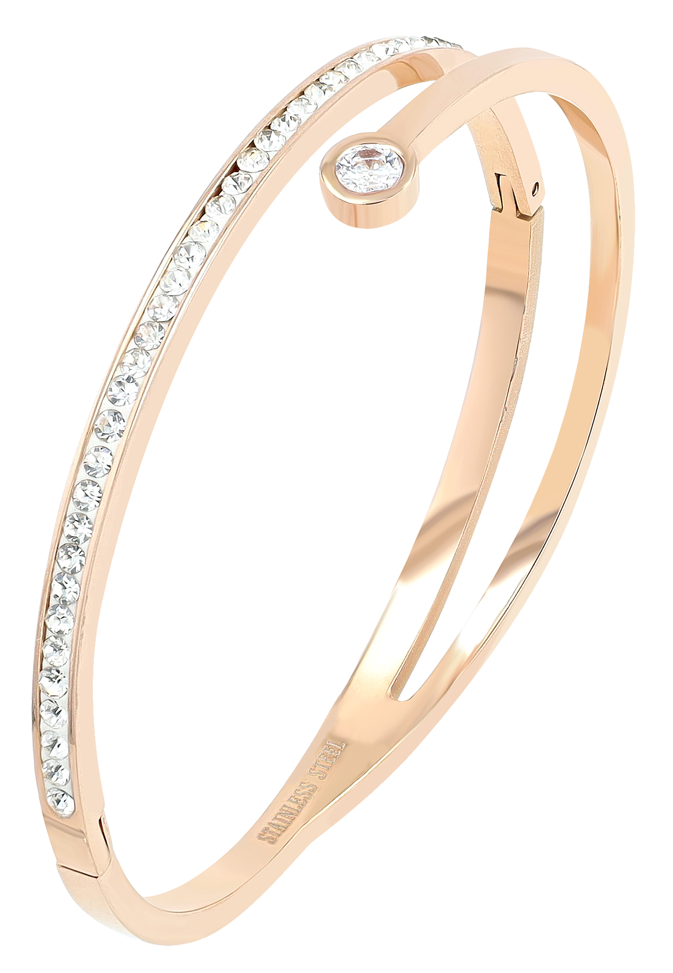 Produktinformationen ""Amiri", Akzent Edelstahl Armreif, Simili, Steckverschluss, roségoldfarben"