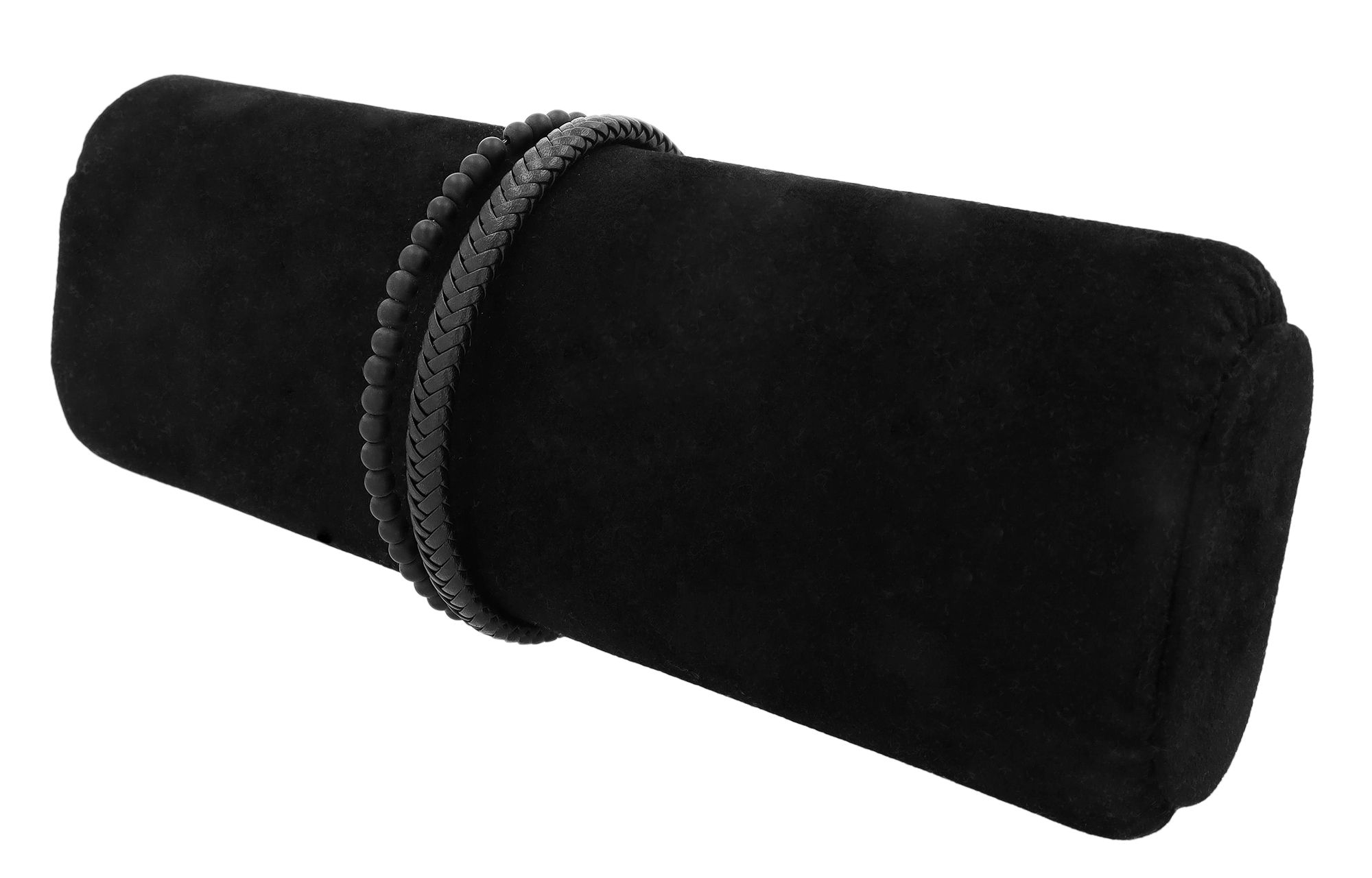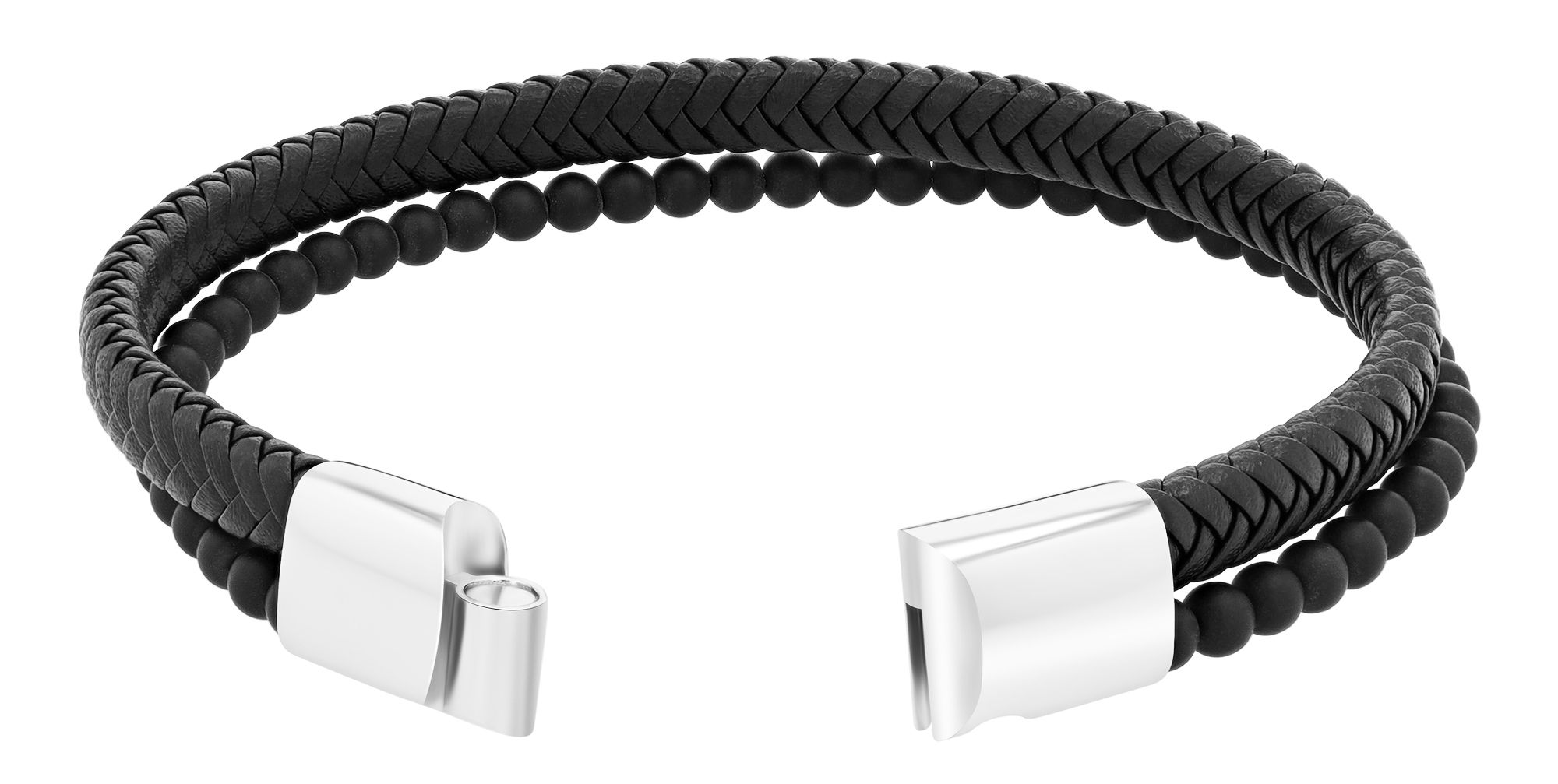 Das Armband der Marke Akzent besteht aus einer schwarzen geflochtenen Kordel aus echtem Leder und einer Reihe aus schwarzen Onyx in Kugelform. 48 Perlen sind aneinander gereiht. Es handelt sich bei den Perlen um ein Naturprodukt. Das Armband hat eine Länge von 21,5 cm. Die Perlen und das Lederarmband haben Stärke von 4 mm. Dieses bezaubernde Schmuckstück darf an keinem Handgelenk fehlen.