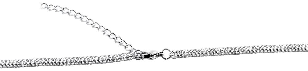 Die silberfarbene Halskette der Marke Akzent ist aus Edelstahl im Fuchsschwanzmuster gefertigt. Sie ist in den Längen 50 cm oder 70 cm erhältlich und hat eine Materialstärke von 2 mm. Die moderne Halskette lässt sich mit einem silberfarbenen Karabinerhaken, der ebenfalls aus Edelstahl gefertigt ist, öffnen und schließen. Zusätzlich ist eine Verlängerungskette an das eine Ende der Kette angebracht, um die Länge um bis zu 5 cm variieren zu können und das Schmuckstück jedem Outfit anzupassen. Durch das robuste Material und die hochwertige Verarbeitung verspricht die Halskette eine lange Lebensdauer.