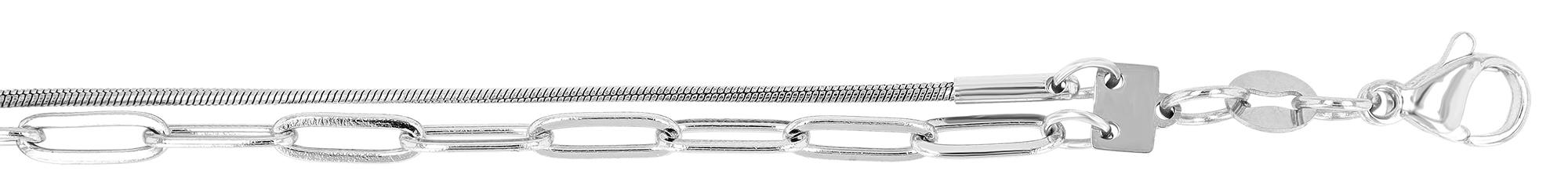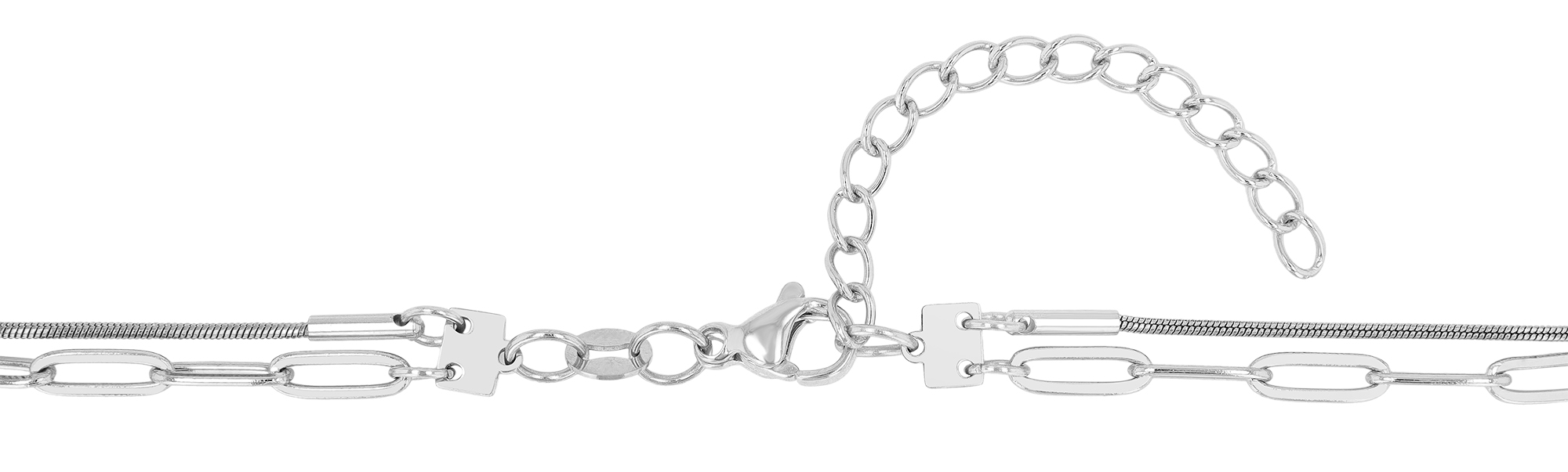 Die Kette ist in den angesagten Farben Silberfarben und Goldfarben erhältlich und vereint zwei unterschiedliche Kettenarten zu einer harmonischen Einheit.