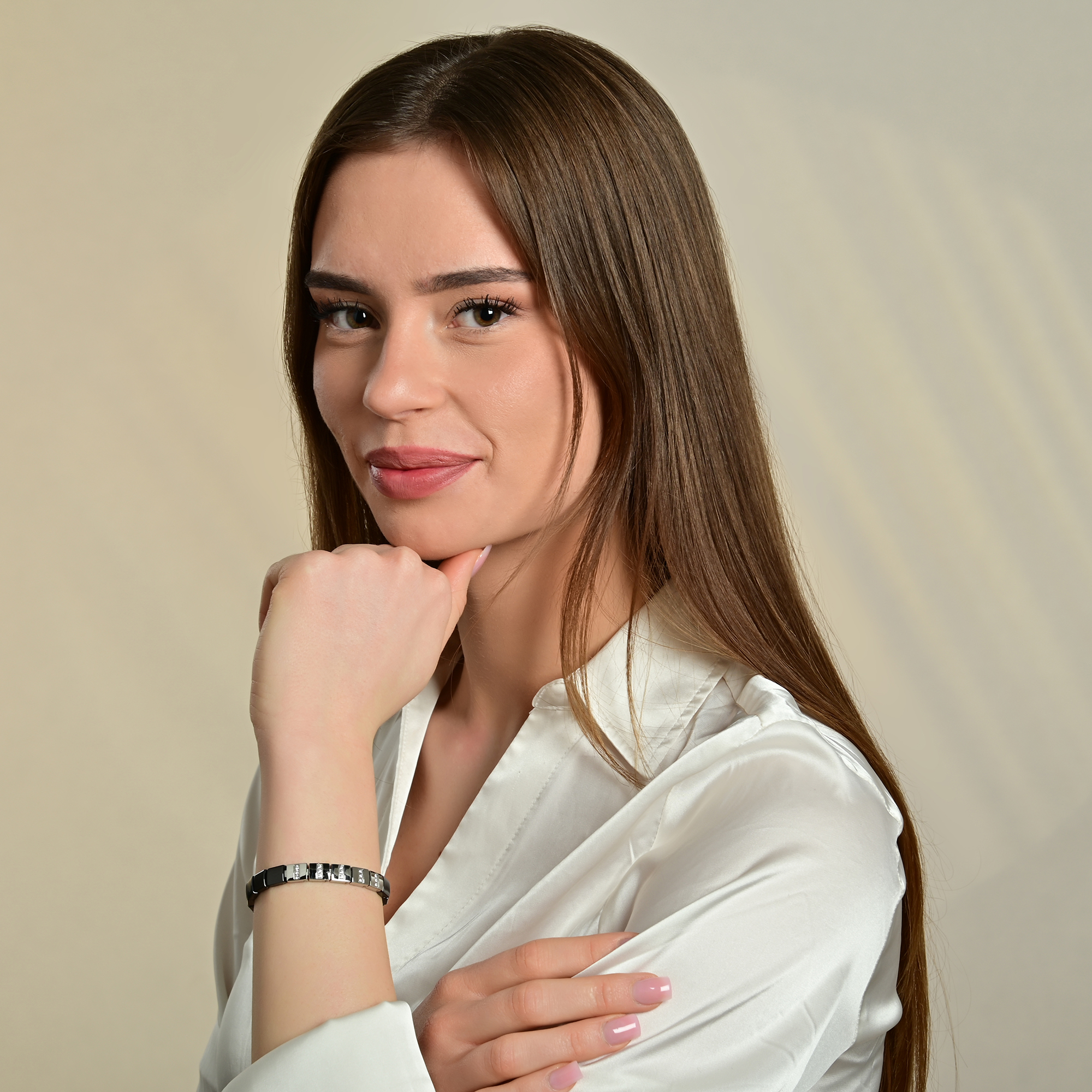 Das Gliederarmband "Arin" hergestellt aus Keramik und Edelstahl - ein elegantes und persönliches Schmuckstück.