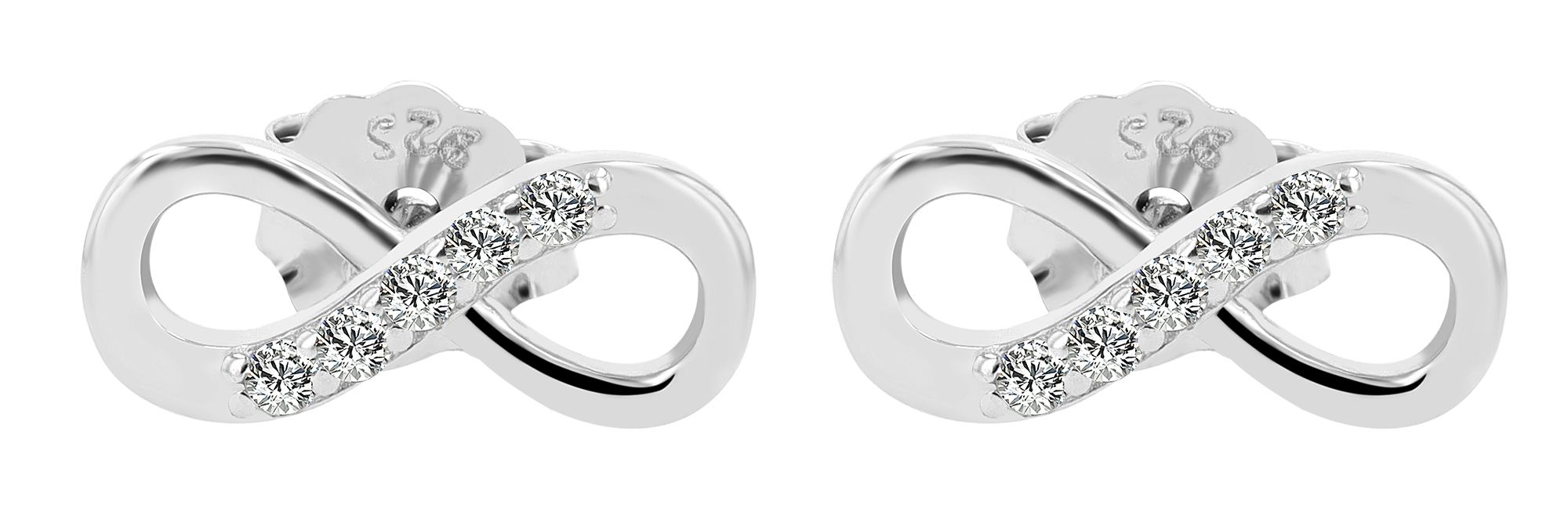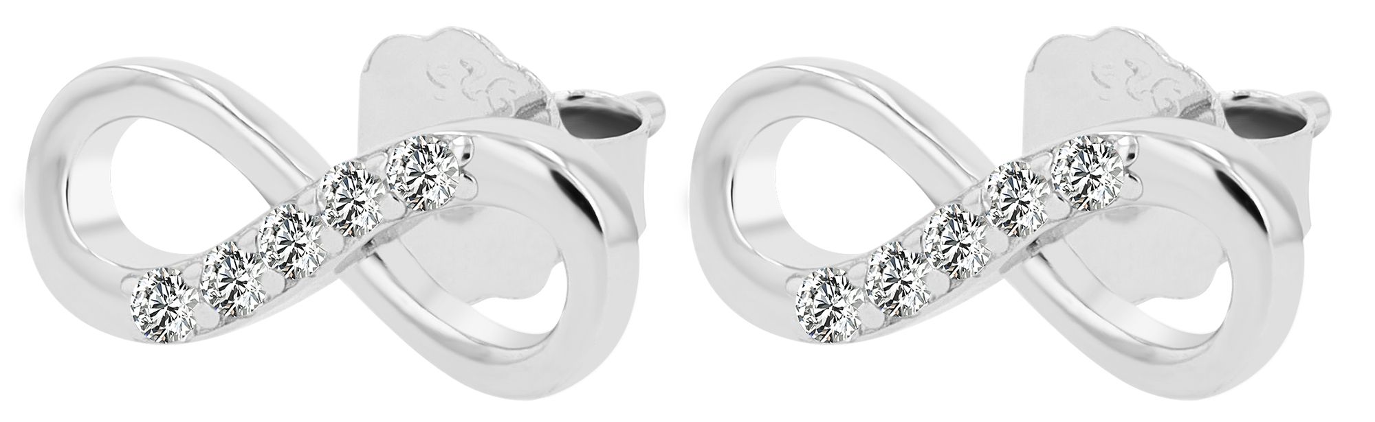 Das filigrane Infinity-Symbol ist kunstvoll mit funkelnden Zirkoniasteinen besetzt, die für einen dezenten, aber faszinierenden Glanz sorgen. Mit den Maßen von 4,5 x 11 x 2 mm sind die Ohrstecker ideal proportioniert – perfekt für den täglichen Gebrauch, aber auch elegant genug für besondere Anlässe. Der sichere Steckverschluss gewährleistet dabei optimalen Tragekomfort und zuverlässigen Halt.