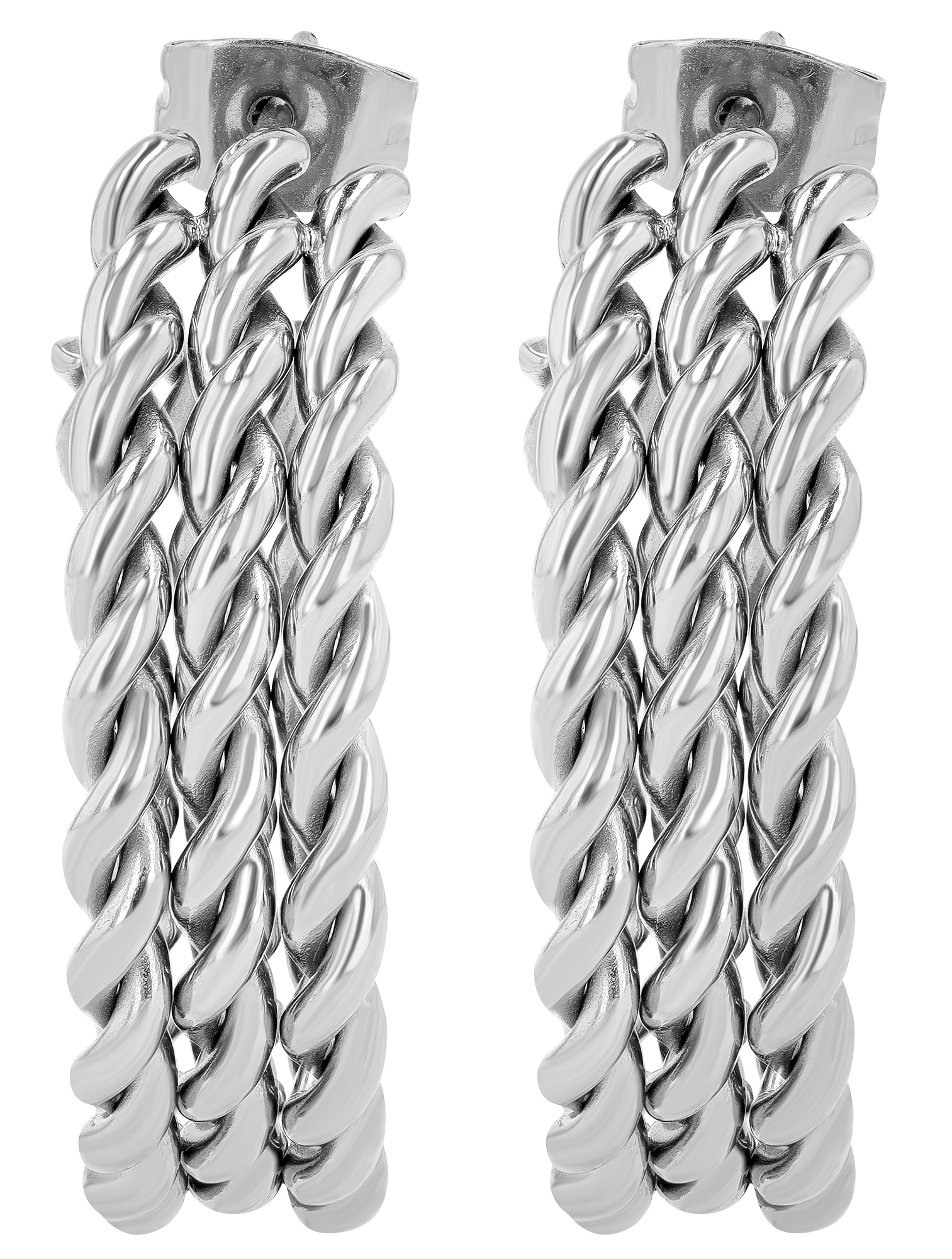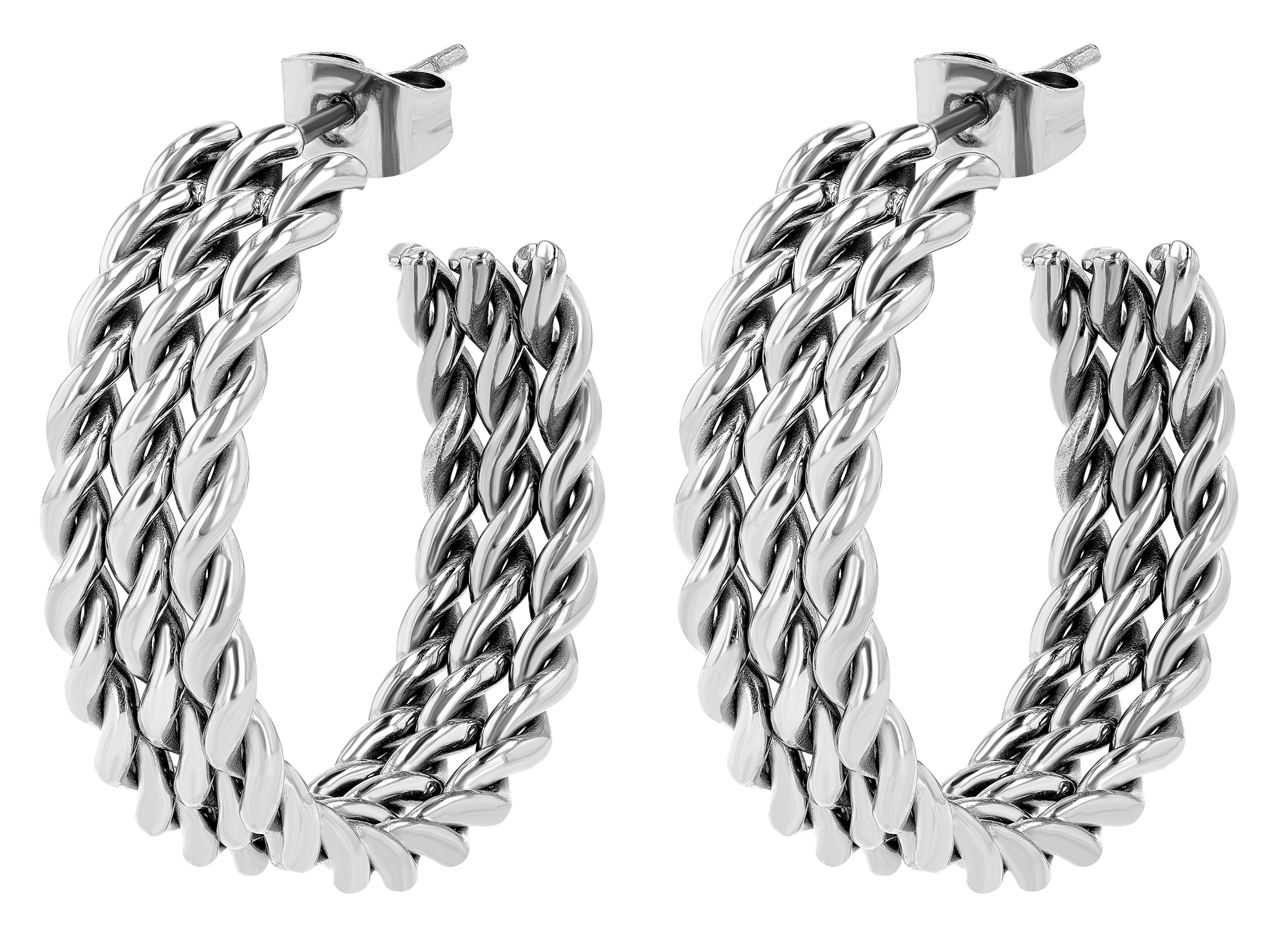 Gefertigt aus robustem Edelstahl, sind diese Ohrringe langlebig und hautverträglich. Mit einem Innendurchmesser von 24 mm gehören sie eher zu den auffälligen Schmuckstücken und sind ein sofortiger Blickfang.. Die Stärke von 2,5 mm und eine Gesamtbreite von 7,5 mm verleihen ihnen eine hochwertige Präsenz. Der sichere Steckverschluss garantiert einen angenehmen Tragekomfort und leichtes An- und Ablegen.