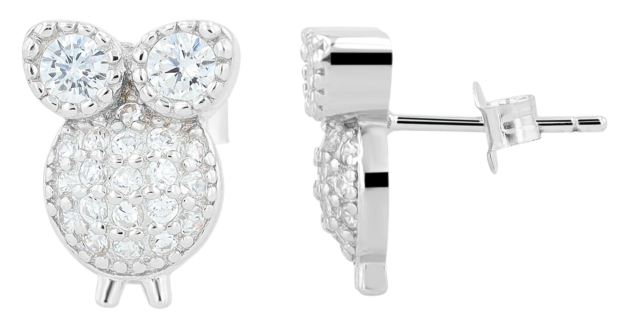 Produktinformationen ""Athene", 925/- Echt Silber Set Ohrstecker & Anhänger Eule, Zirkoniabesatz, silberfarben, rhodiniert"