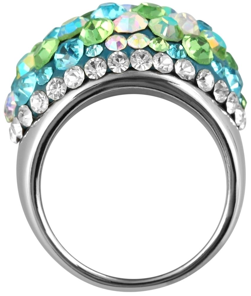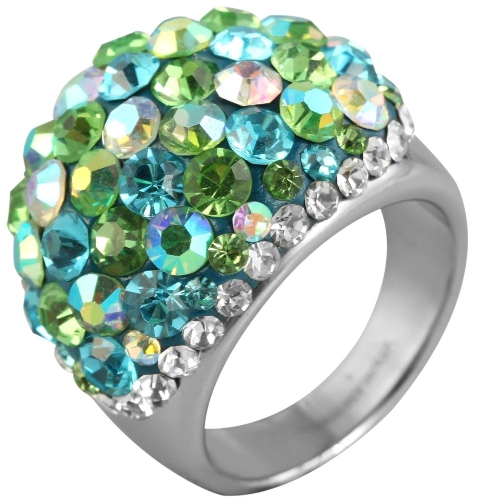 Entdecken Sie unseren ausgefallenen Damenring aus Edelstahl mit grün schimmerndem Similibesatz. Dieses Schmuckstück ist ein wahres Kunstwerk und verleiht dem Look einen Hauch von Individualität und Extravaganz. Der grüne Similibesatz fügt dem Ring eine lebendige Note hinzu und verleiht ihm ein atemberaubendes Farbenspiel, das je nach Lichteinfall in verschiedenen Nuancen schimmert.