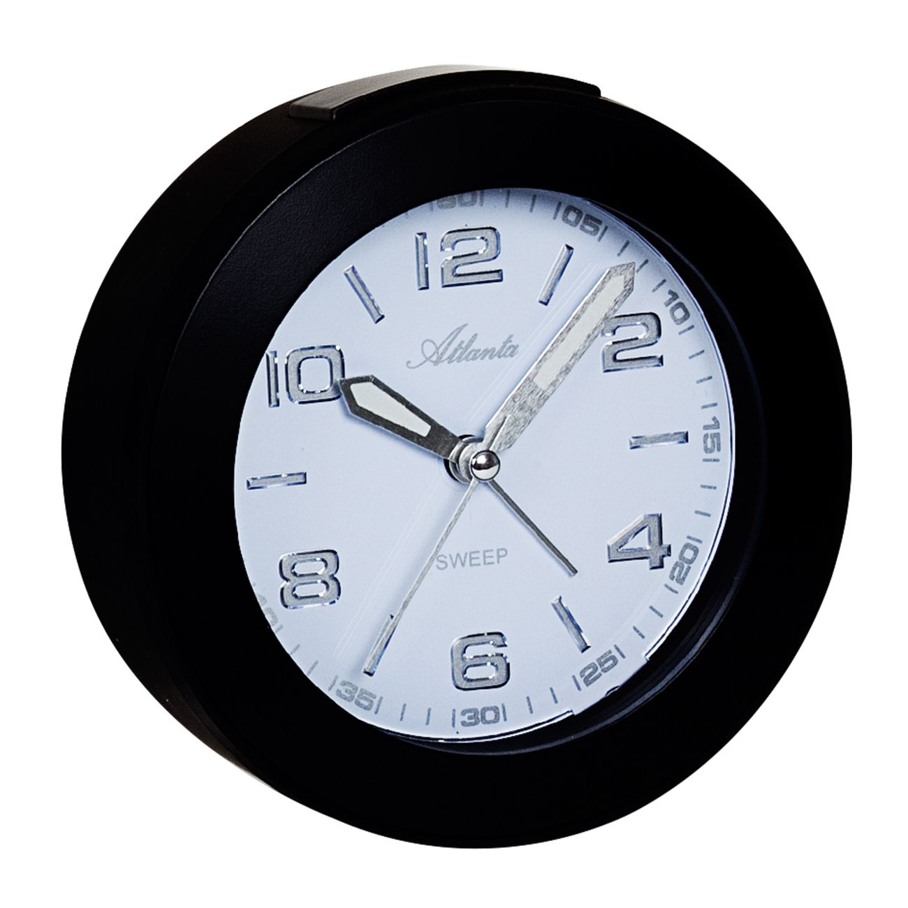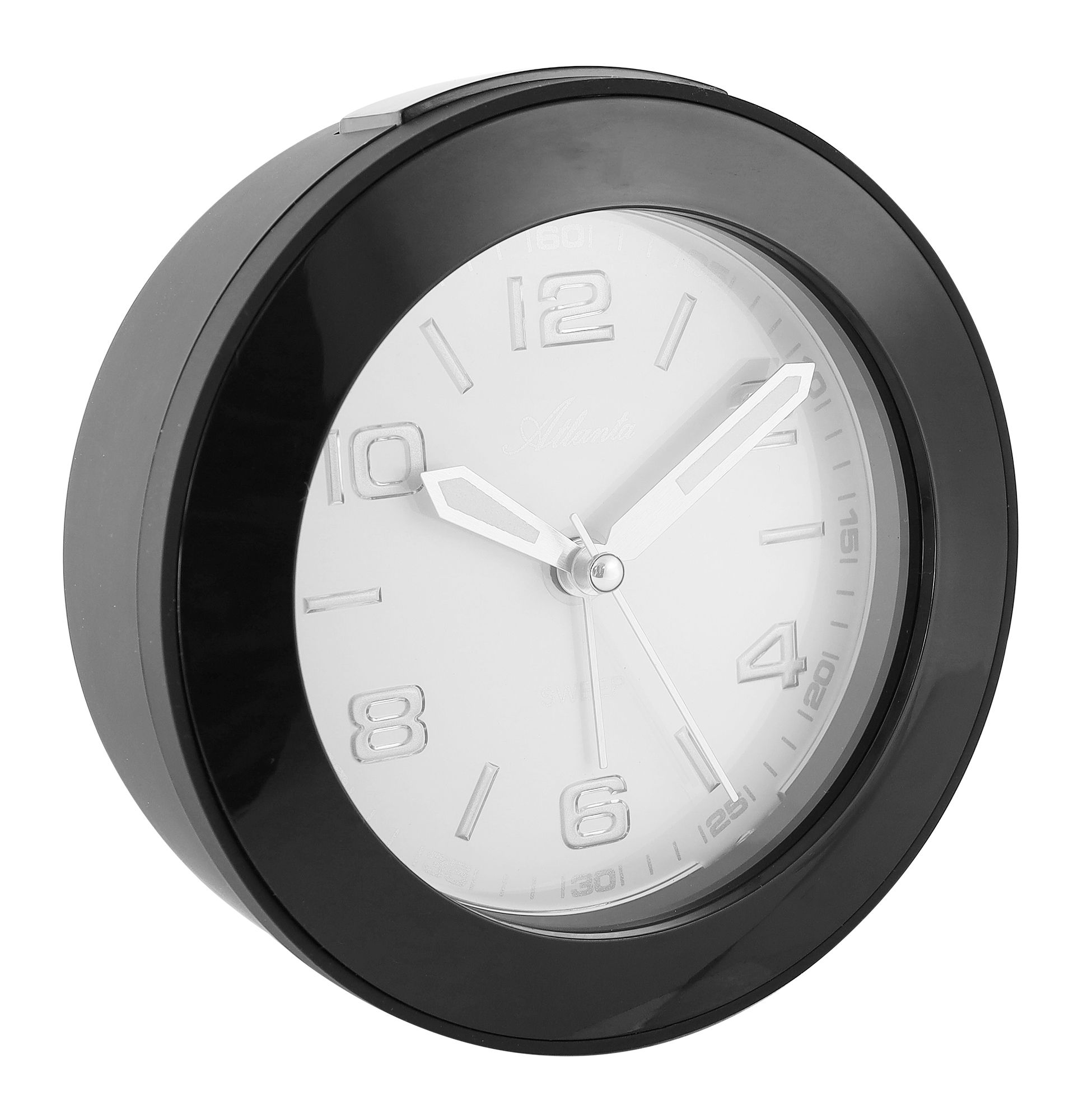 Produktinformationen "Atlanta Quartzwecker, schleichende Sekunde, Weckwiederholung, Licht, ansteigendes Wecksignal, schwarz ø 12 cm"