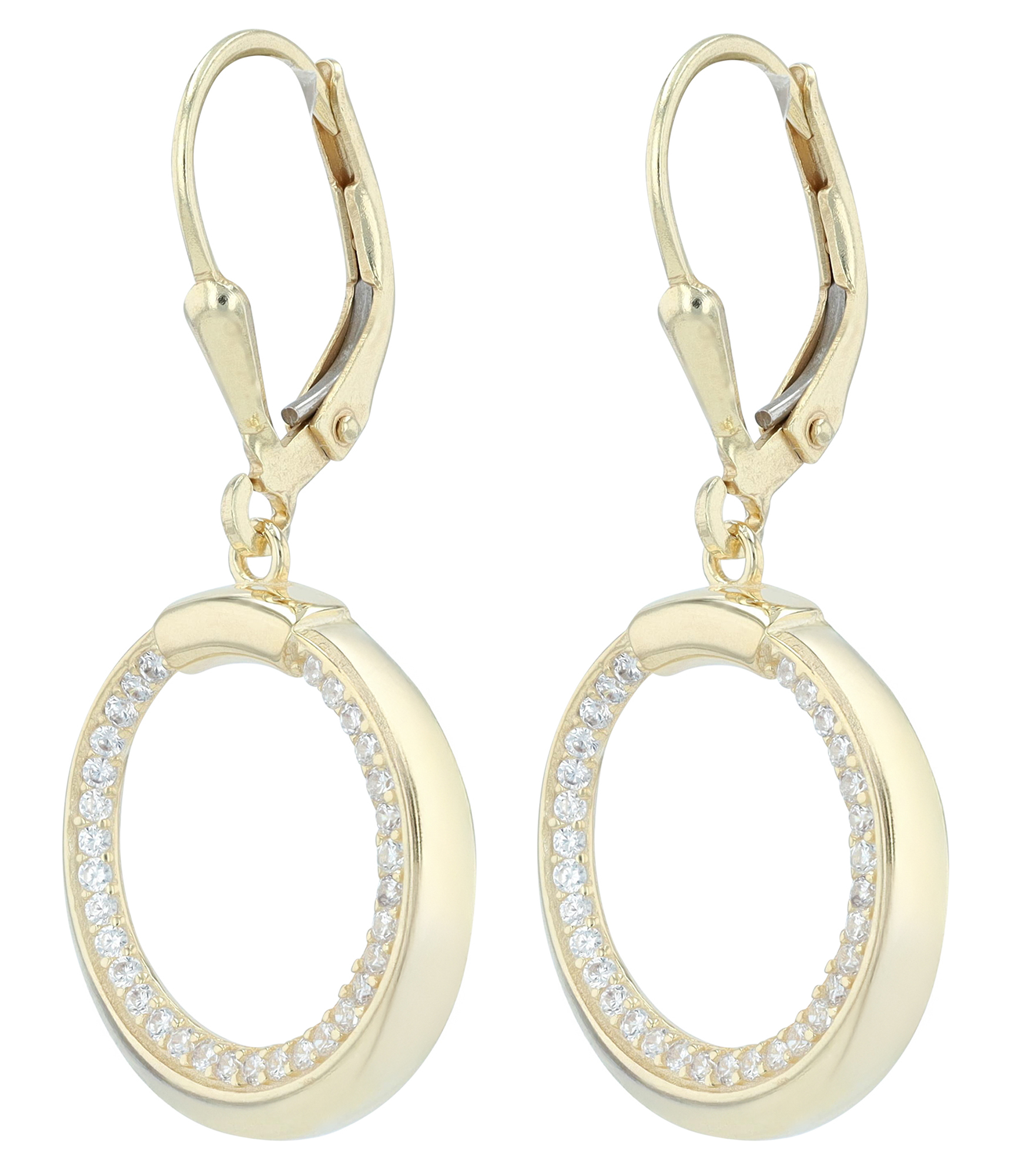 Die runden Ohrhänger sind aus 925er Sterlingsilber gefertigt und in der silberfarbenen Farbvariante zusätzlich rhodiniert. Die hochwertige Beschichtung aus Rhodium verhindert ein Anlaufen der Schmuckstücke und hebt den Silberton besonders hervor, während die vergoldete Variante wärme ausstrahlt. Der Ohrschmuck präsentiert sich in einem zeitlosen Design und strahlt im hochglanzpolierten Oberflächenfinish. Die Ohrhänger sind mittig offen und im inneren Kreisrand mit funkelnden Zirkoniasteinen verziert. Diese tragen zu weiterem Glanz bei und verleihen eine elegante Note. Verschlossen werden sie mit einem praktischen Hakenverschluss, der sich leichthändig bedienen lässt und durch den ein eigenständiges Öffnen unmöglich ist. Die Größe ergibt sich aus einer Gesamtlänge von 35 mm, einer Breite von 17 mm und einer Materialstärke von 2,5 mm. Die schlichte Aufmachung verzaubert Jung und Alt und lässt sich zu zahlreichen Gelegenheiten ausführen. Zudem eignen sich die Ohrringe ideal zum Verschenken, beispielsweise zum Geburtstag, zu Weihnachten oder zum Muttertag.