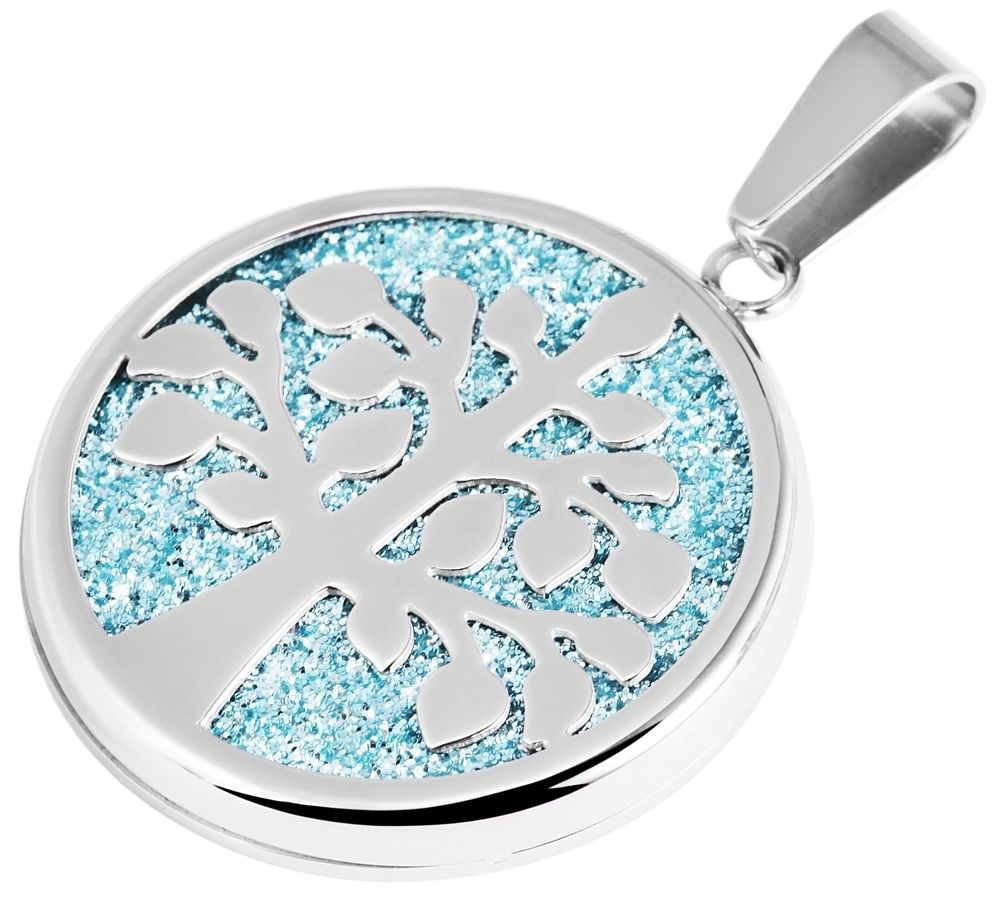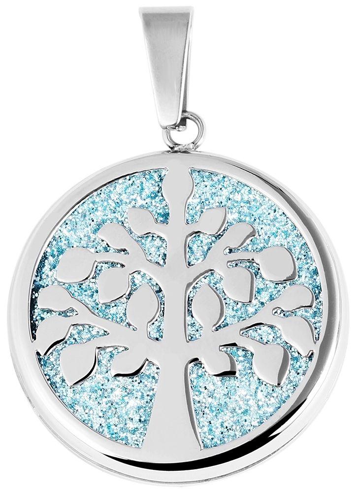 Produktinformationen ""Baldrun" Akzent Edelstahlanhänger, Lebensbaum mit hellblauer Glitzerschicht, sillberfarben"