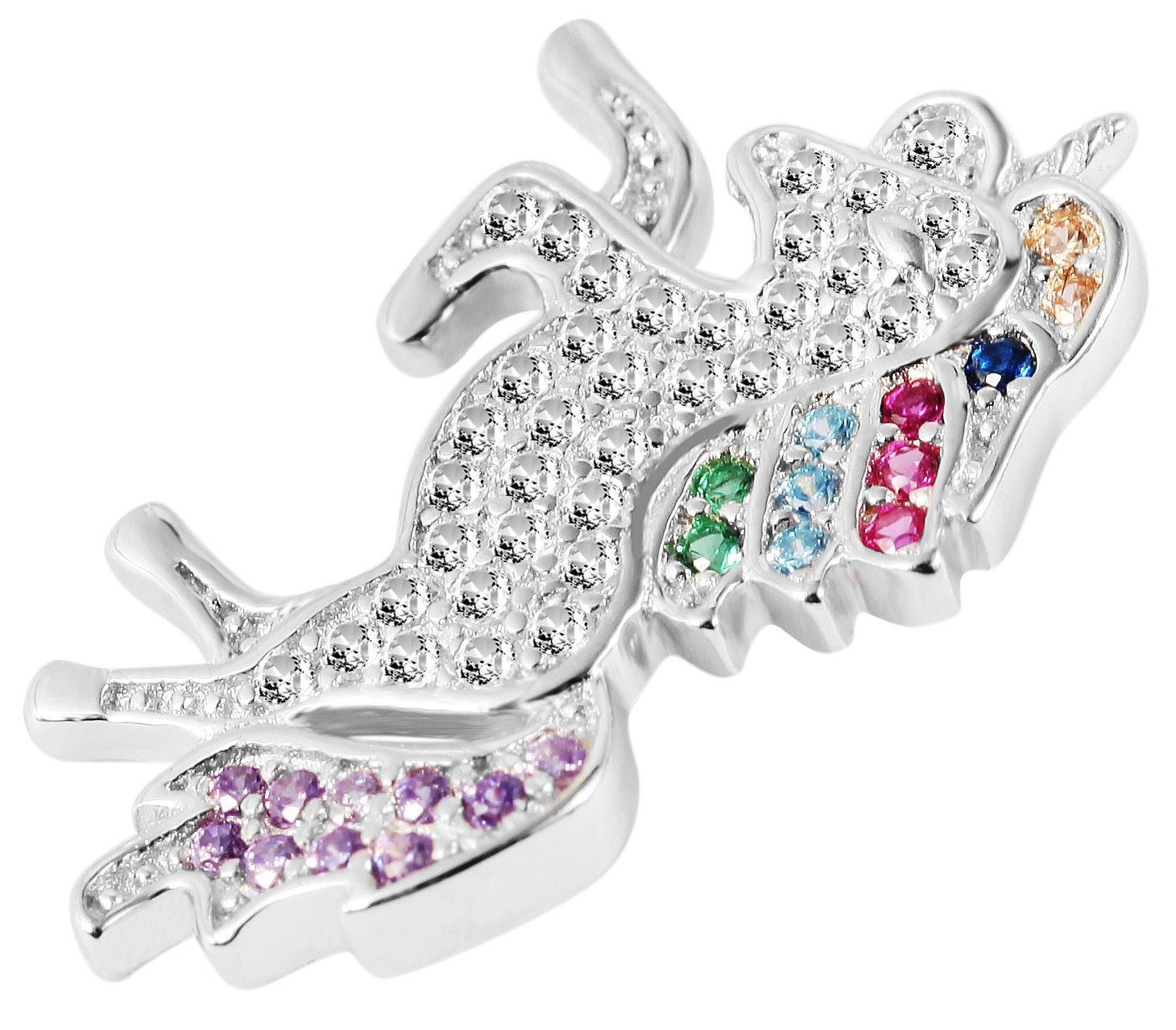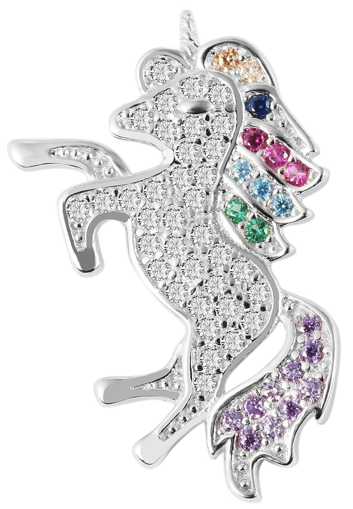 Produktinformationen ""Bhaina", 925/- Echtsilber Anhänger, Einhorn, mehrfarbige Zirkonia, rhodiniert"