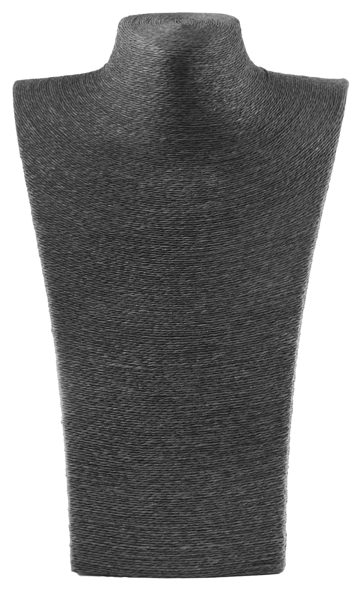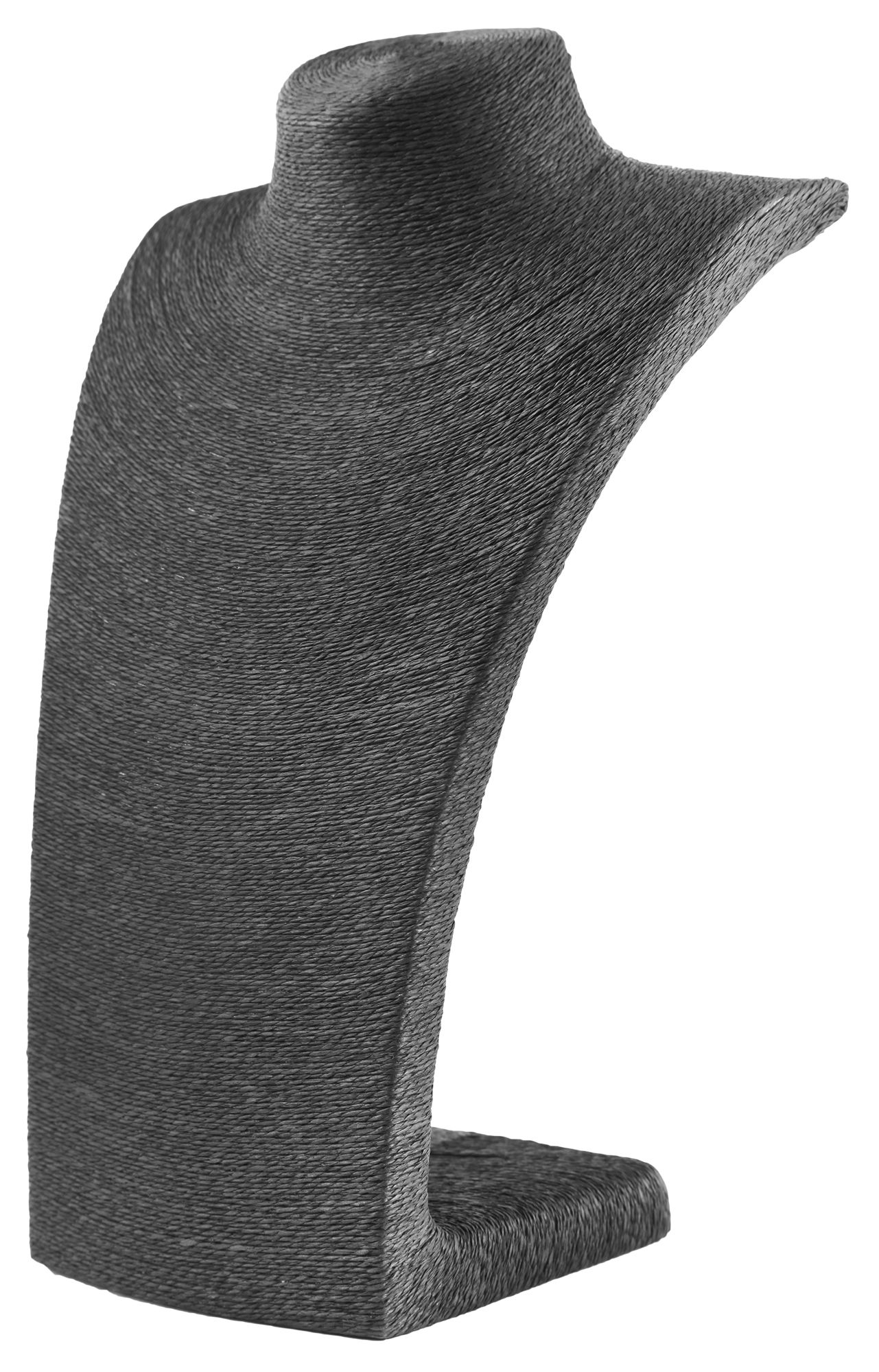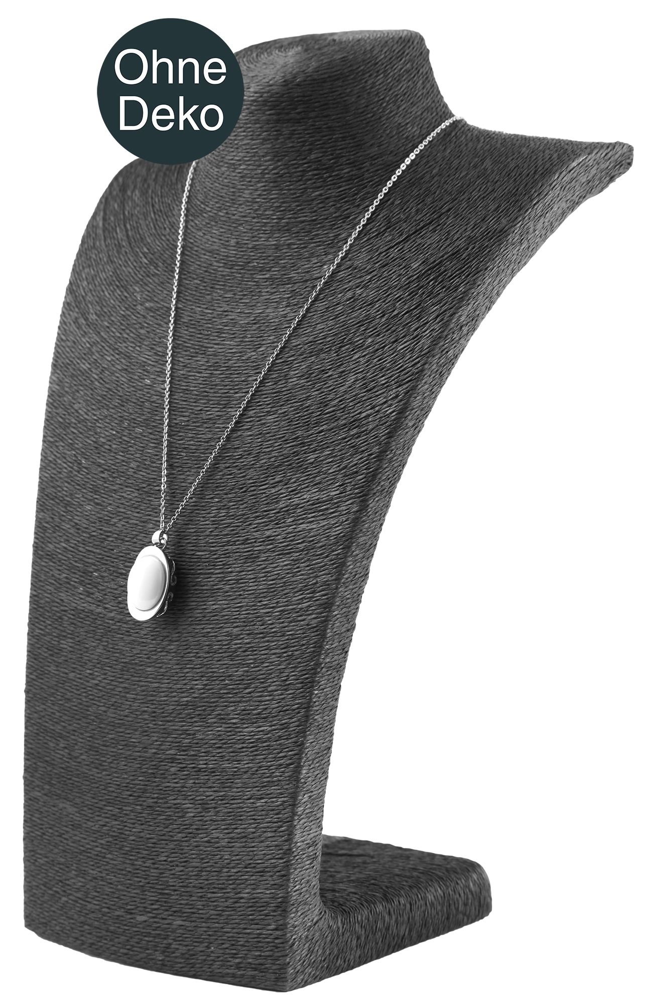 Der Schmuckhalter in schlichter Büstenform wurde aus Bastfaser hergestellt, diese Fasern sorgen für einen hochwertigen und dekorativen Look. Die Büste ist schwarz und eignet sich hervorragend zur Präsentation von Schmuckstücken. Ob auf der Ladentheke, im Schaufenster oder Ausstellungsraum, die Büste macht überall eine gute Figur. Die Maße des Aufstellers ergeben sich aus einer Länge von 36 cm, einer Breite von 23 cm und einer Stärke von 7 cm.