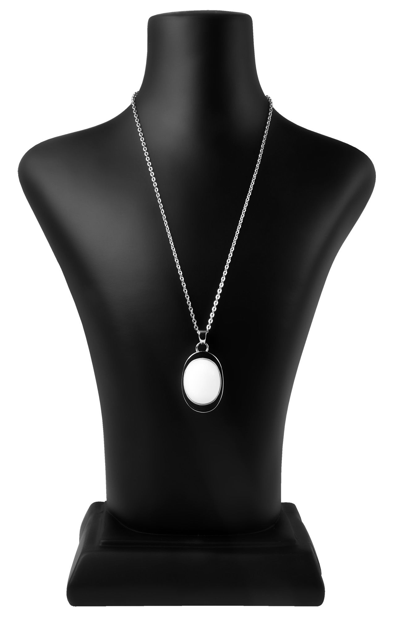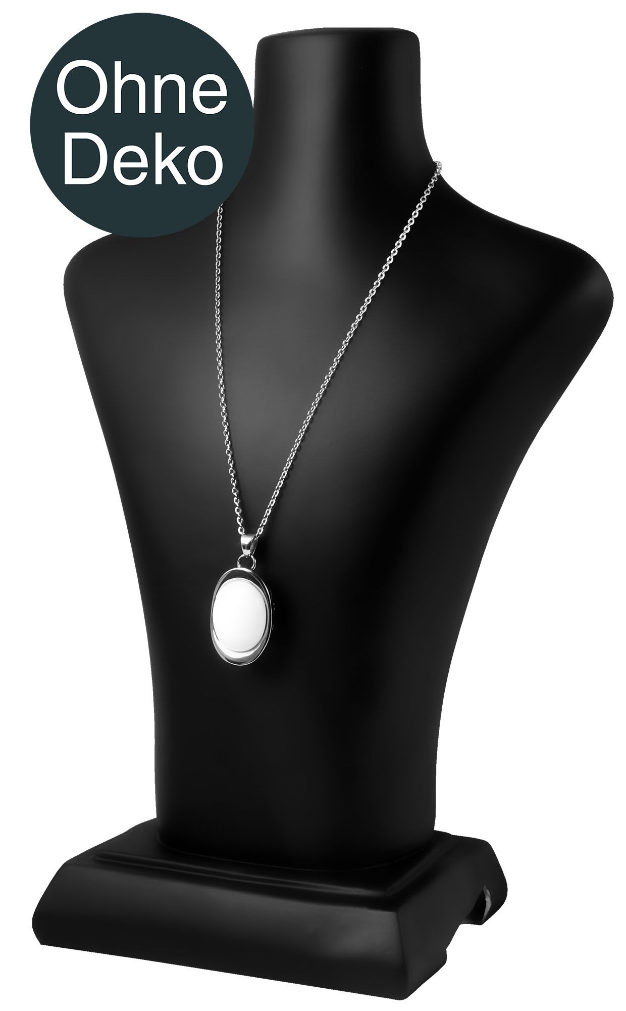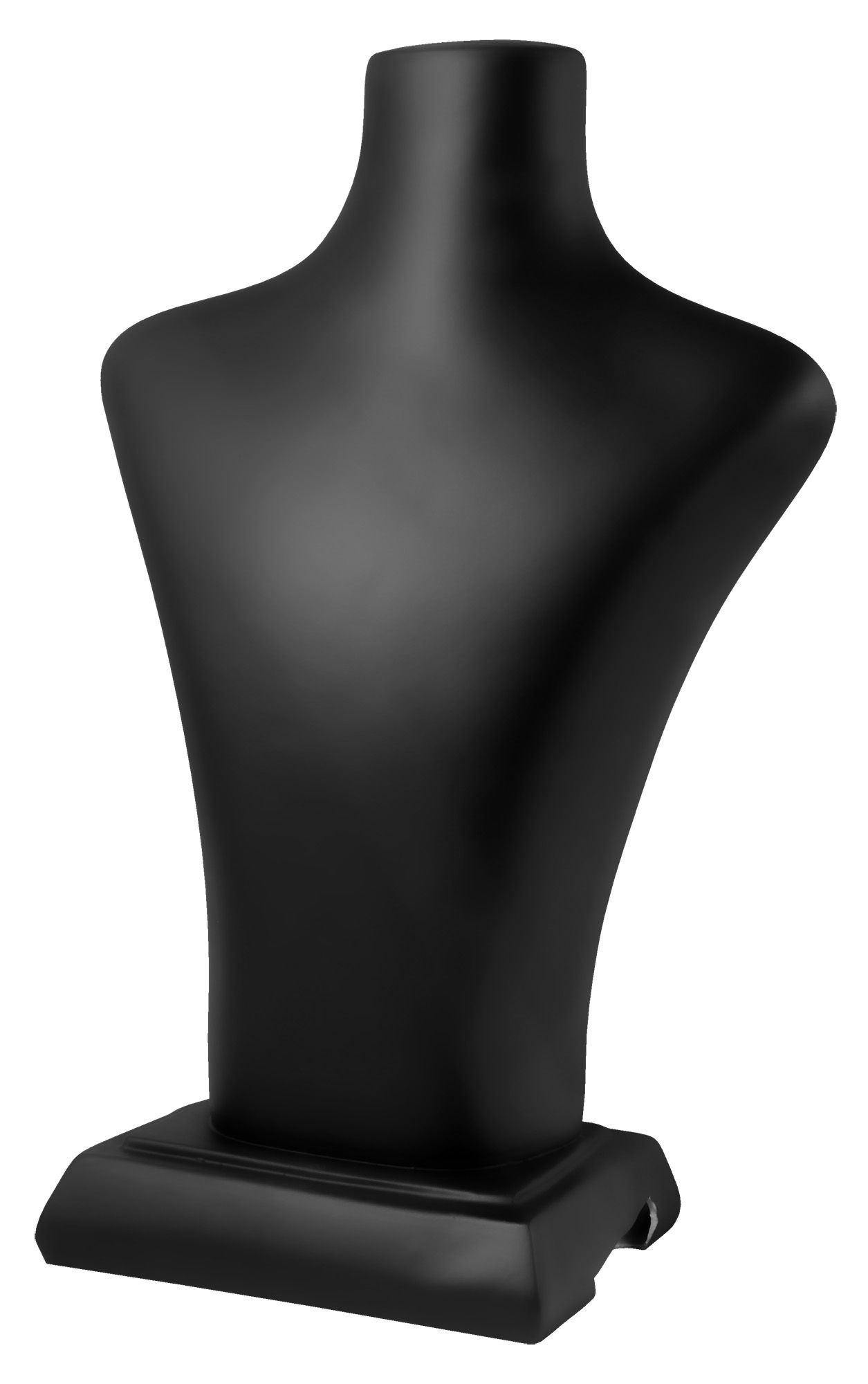 Die Büste aus Kunststoff ist eine schlichte Büste, die zur Präsentation von Ketten und Colliers geeignet ist. Die Schmuckstücke liegen im perfekten Winkel auf der Büste, sodass sie bestmöglich präsentiert werden können. Die Maße der Büste betragen 26,5 cm x 18 cm x 10 cm. Das Oberflächenfinish der Büste ist matt und schwarz. Sie ist eine einfache Möglichkeit Ketten und Colliers bestmöglich zu präsentieren.
